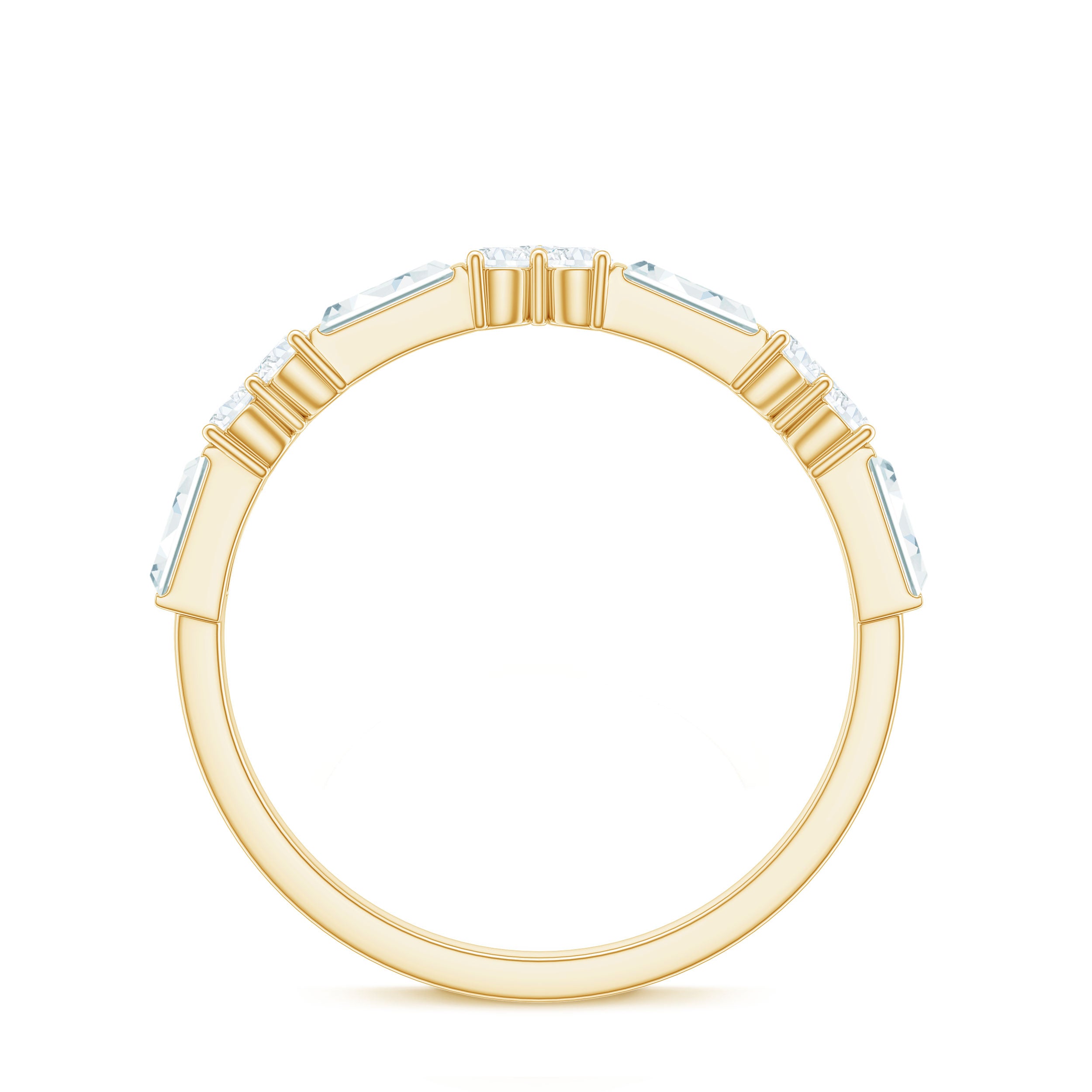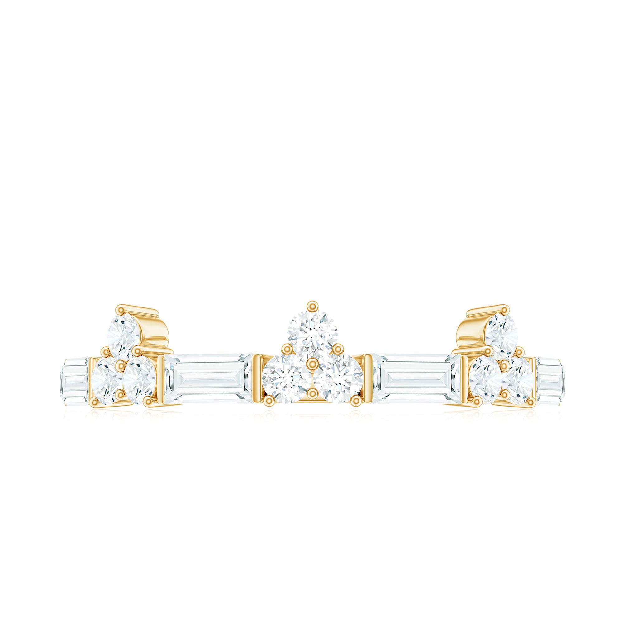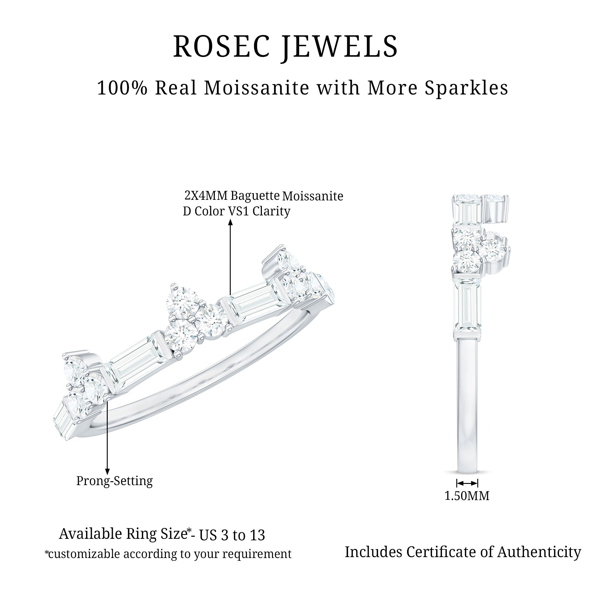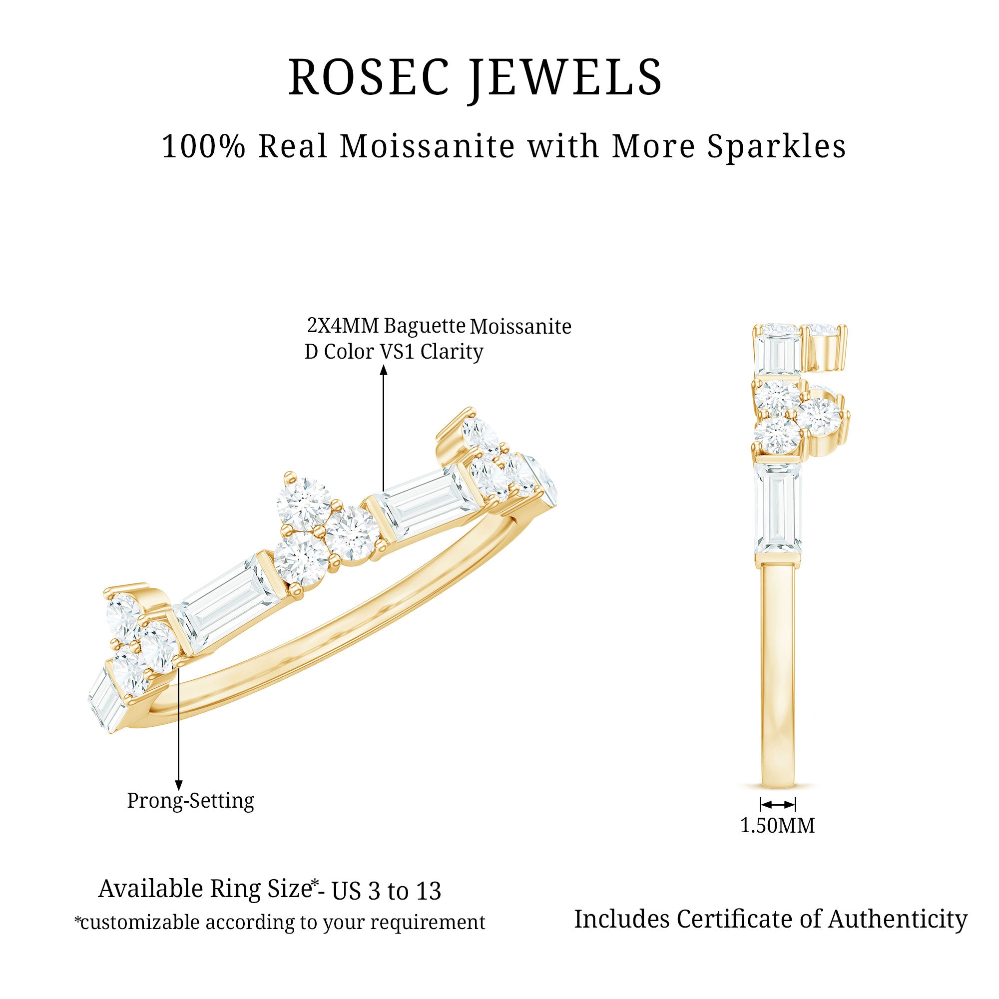 This Moissanite Eternity Ring really stands out, showcasing beauty and exuding elegance that carries a lot of significance along with its stunning look. It is an unbreakable promise of unity and always fashionable, featuring a Half Eternity design that is beautifully embellished with alternating Baguette and trios of Round brilliant cut Moissanite stones. This Minimalist Moissanite Ring perfectly combines modern and timeless styles. The breathtaking sparkle of D-VS1 Quality Moissanite is rich in symbolism, making it a meaningful gift for those memorable occasions. As a cherished reminder of your love, this Eternity Wedding Band showcases a dazzling line of moissanites that represent love shining brightly. Whether it is for a bride or your significant other, this Moissanite Stackable Ring is a present she will treasure for years to come. You can stack it with an engagement ring, a wedding band, or wear it alone for a sleek look, the choice is all yours. Plus, it is an excellent option for everyday wear, effortlessly blending with both classic and contemporary jewelry collections.