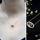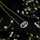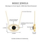 Protect your loved one with this elegant Evil Eye Necklace, thoughtfully crafted for both meaning and beauty. Designed in shimmering Yellow Gold Plated Silver, this Third Eye Necklace features a striking Round Shaped Real Black Diamond at its center set in secure bezel setting. This AAA quality Black Diamond radiates confidence and mystery, making it the perfect focal point of this powerful symbol. Surrounding the center stone are sparkling EF-VS quality Lab Grown White Diamonds, meticulously arranged to form the classic evil eye shape. These brilliant diamonds add a luminous contrast, creating an eye-catching sparkle with every turn. Together, the black and white diamonds form a symbolic design believed to ward off negativity and bring good fortune to the wearer. The Black and White Diamond Necklace is suspended from a delicate yet durable chain that rests comfortably along the neckline, making it ideal for everyday wear or layering with other pieces. Whether you wear it for spiritual protection, personal meaning, or simply for its modern and chic appeal, this Black Diamond Evil Eye Necklace is a piece you will always feel connected to.