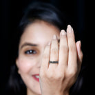 This Amazing Eternity Ring features Round Shape Black Onyx in the Prong Setting placing an curved surface of the ring. This band ring features an array of 3 rows of Real Black Onyx which gives an intense yet classy look. This Black Eternity Wedding Ring will make the occasion special with the adorable shine of AAA Quality Black Onyx - perfect present for the December-born ladies. This Three Row Eternity Ring beholds the vintage inspiration which makes it perfect for the grand celebration of love. Grab the Black Gemstone Ring to make her feel special, it will be delivered to you in premium-quality packaging with a certificate of gemstone authentication.