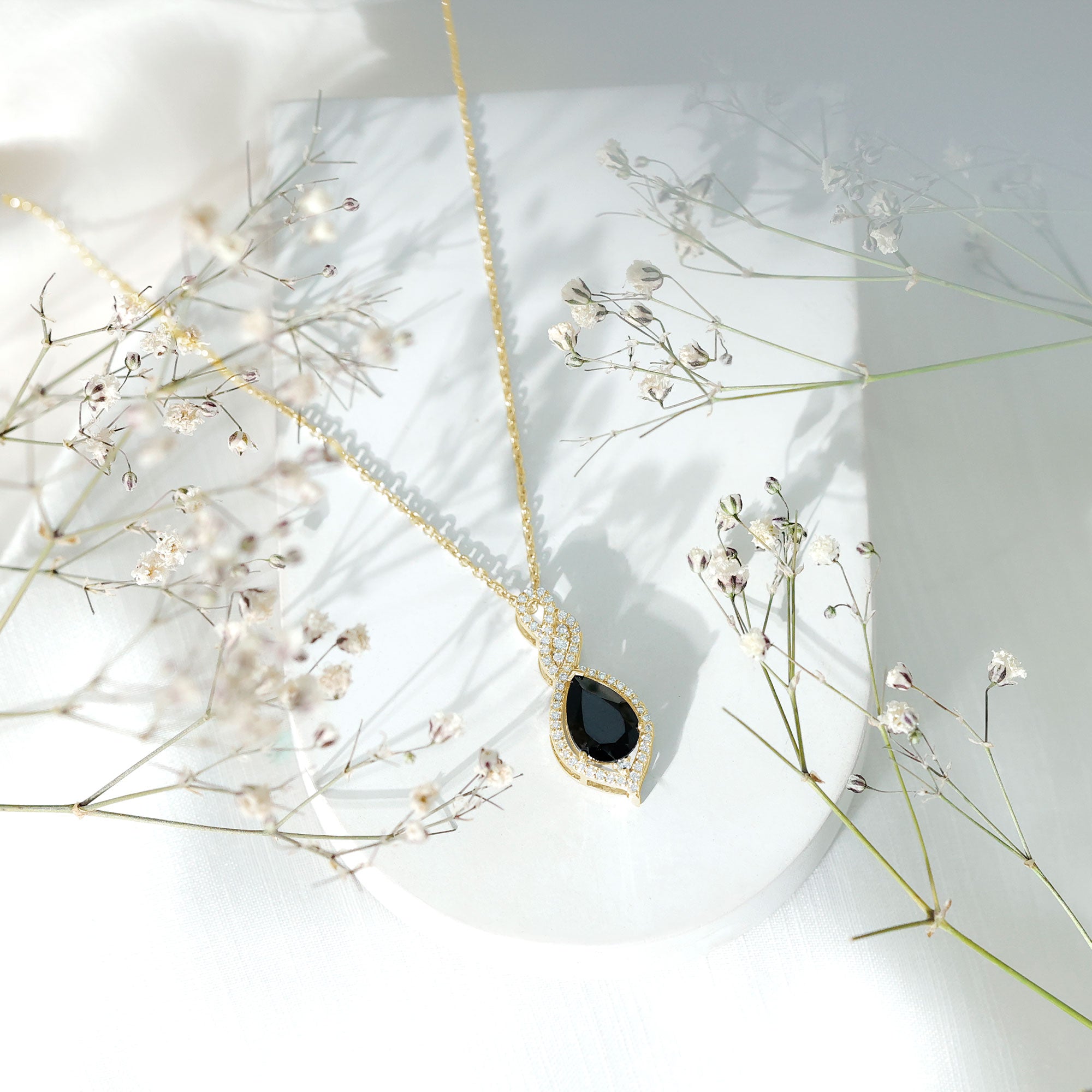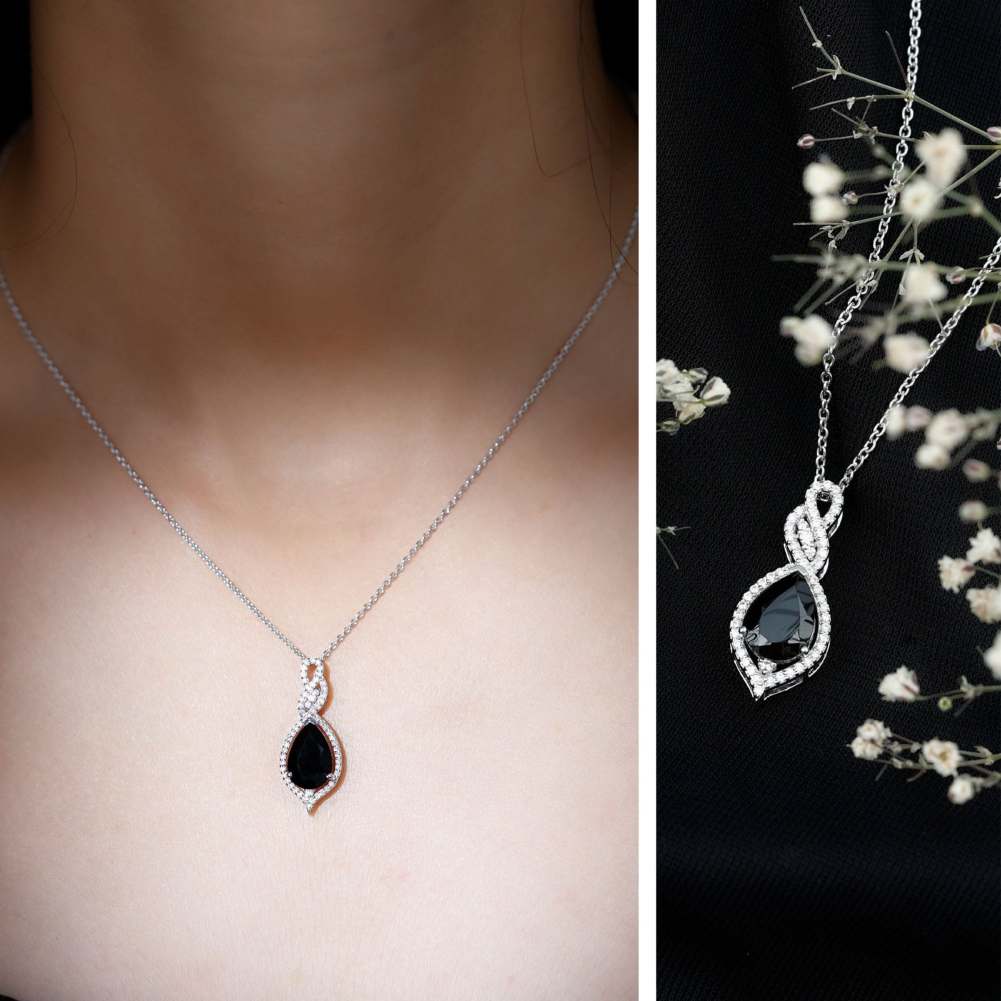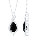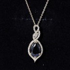 Embrace your bold avatar with this Black Spinel Pendant. It features a 7X10 MM Pear Shape Black Spinel placed securely in Prong Setting decorated with petite moissanite which gives it an alluring effect. The center stone is embraced with a stone-studded infinity pattern. This pendant exudes a classic shine of AAA quality Black Spinel making it the perfect dazzler for your occasion. The Teardrop Necklace has an intense allure that perfectly complements the formal look. This Cocktail Pendant will be delivered to you in a premium quality box for storage.