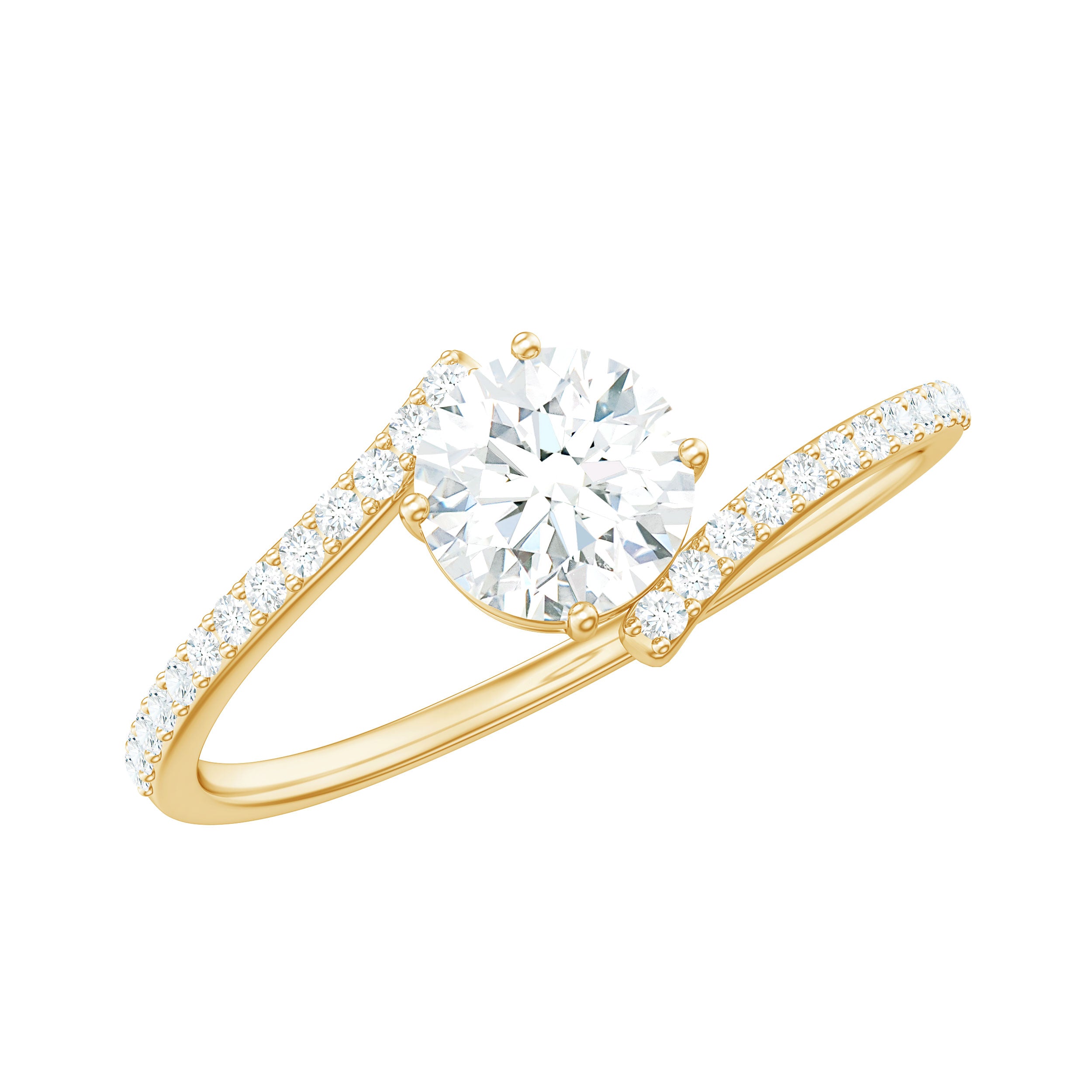 Certified Brilliant Cut Moissanite Solitaire Promise Ring with Bypass Shank