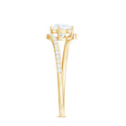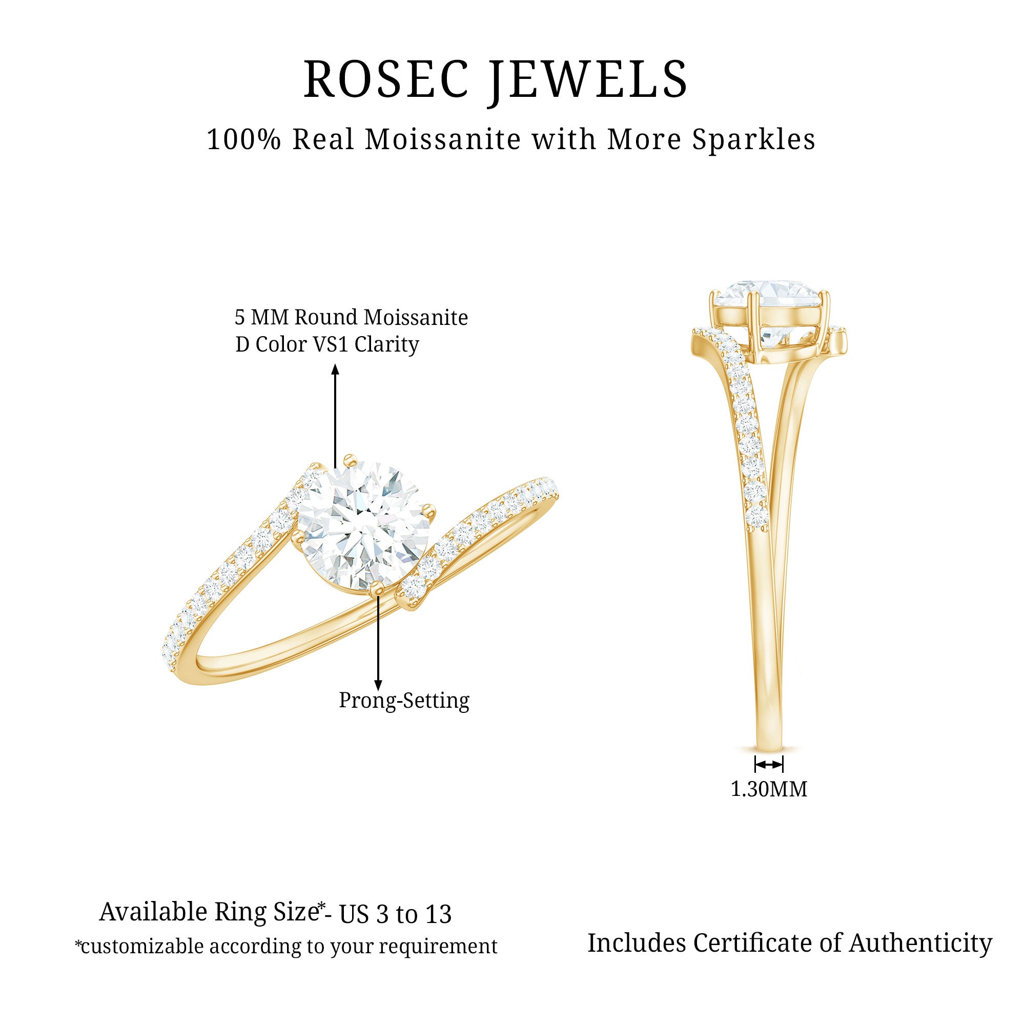 The Bypass Solitaire Ring is a stunning and distinctive piece of jewelry that is guaranteed to attract attention. This Moissanite Promise Ring features a 5 mm round shape Moissanite positioned at the center in a tilted style in secured prong setting, complemented by petite round-shaped moissanites adorning the shank. The radiant petite moissanite along the bands contribute an additional sparkle to this exquisite piece, while the bypass shank wraps around your finger as if it embraces you, resulting in an unforgettable appearance. Whether you aim to enhance your look with a touch of elegance or seek a statement piece that will leave a lasting impression, the Round Promise Ring is an ideal selection. A graceful twist of love embodied in this Moissanite Proposal Ring signifies timeless commitment. This D color VS1 clarity Moissanite Ring serves as a perfect emblem of lasting promises and refined beginnings, making it suitable for engagements, anniversaries, or personal celebrations.