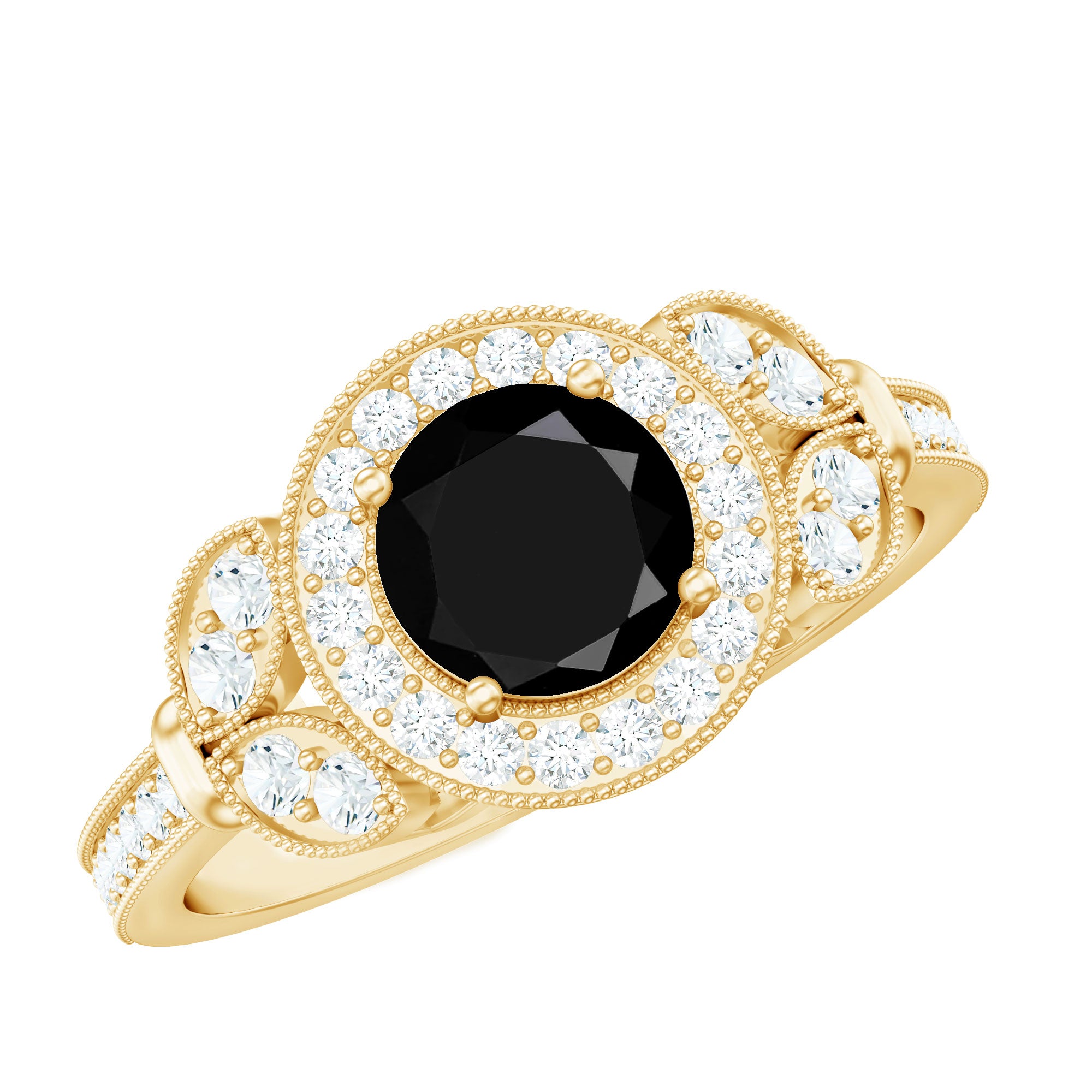 Give a flair of charm to your look with this Vintage Ring crafted in Solid Gold with Beaded Details. This Gold Vintage Ring is adorned with Round Shape Lab Created Black Diamond with Diamond Accent to make for a magnificent choice for special occasions.