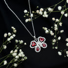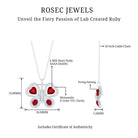 Adorn yourself with the stunning beauty of our Butterfly Pendant Necklace. This exquisite piece features oval and heart shaped Created Ruby stones set on the wings of a butterfly, with round Moissanite halo surrounding each ruby and enhancing its sparkle. This Ruby and Moissanite Necklace is a perfect addition to your everyday jewelry collection and makes for a memorable Valentines Day gift. The intricate butterfly design symbolizes transformation, beauty, and freedom, making it not just a necklace but a meaningful accessory. The combination of vibrant AAAA quality lab made rubies and sparkling D-VS1 quality moissanites adds a luxurious touch, while the delicate chain allows the Nature Inspired Pendant to sit elegantly around the neckline. This Ruby Butterfly Necklace pairs effortlessly with casual wear or more formal attire, making it versatile for any occasion. It comes beautifully packaged in a jewelry box and includes a certificate of authenticity to ensure its quality and value.