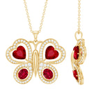 Certified Created Ruby Butterfly Pendant Necklace with Moissanite