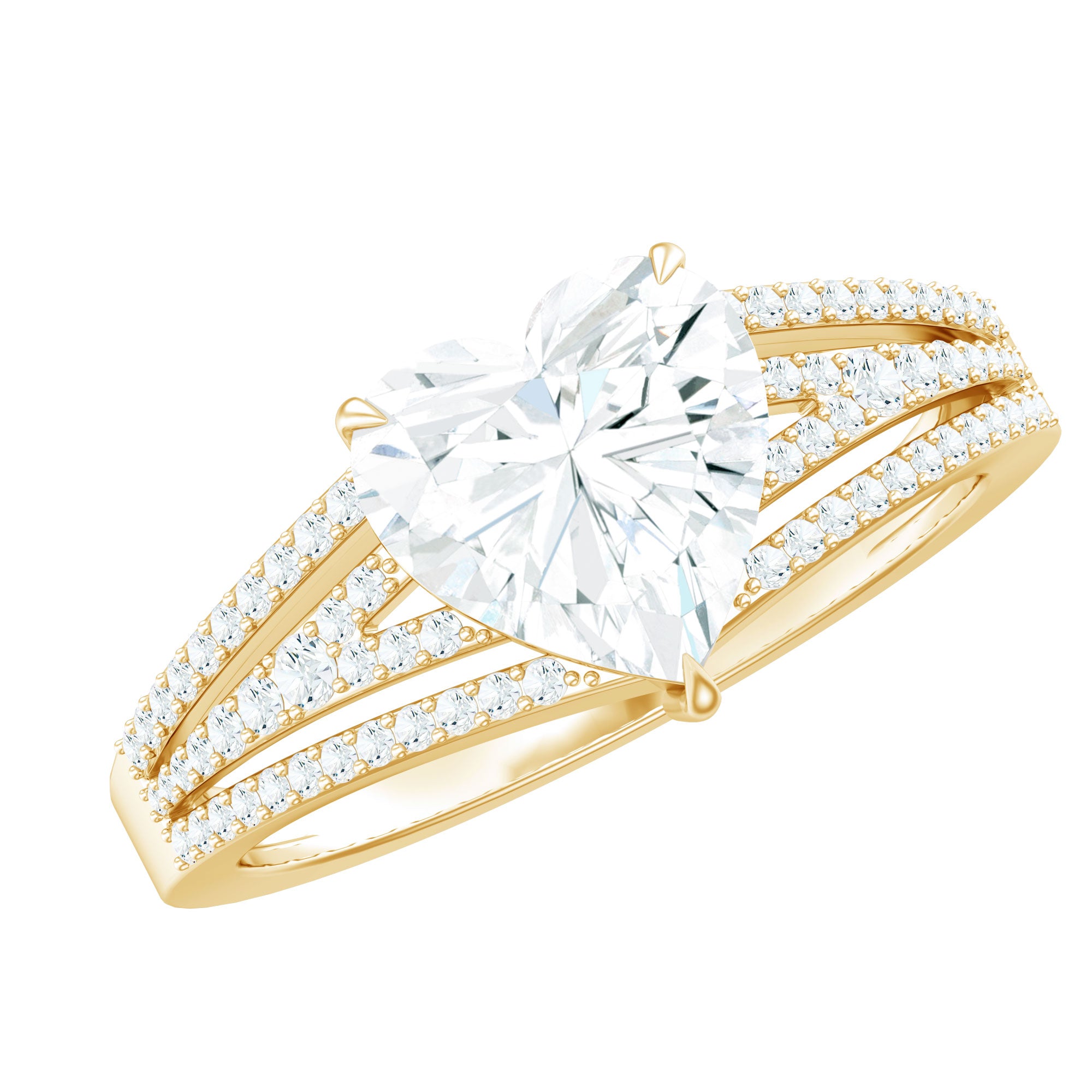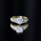 This Heart Engagement Ring will mesmerize everyone when you will walk around the town as it is adorned with sparkling Heart Shape Cubic Zirconia and Round Shape Cubic Zirconia studded on the split shank. This Cubic Zirconia Ring is fashioned in Solid Metal and will enhance your style and fill your day with compliments. The Zircon Ring makes a precious gift for your partner, something she would never like to keep away from herself.