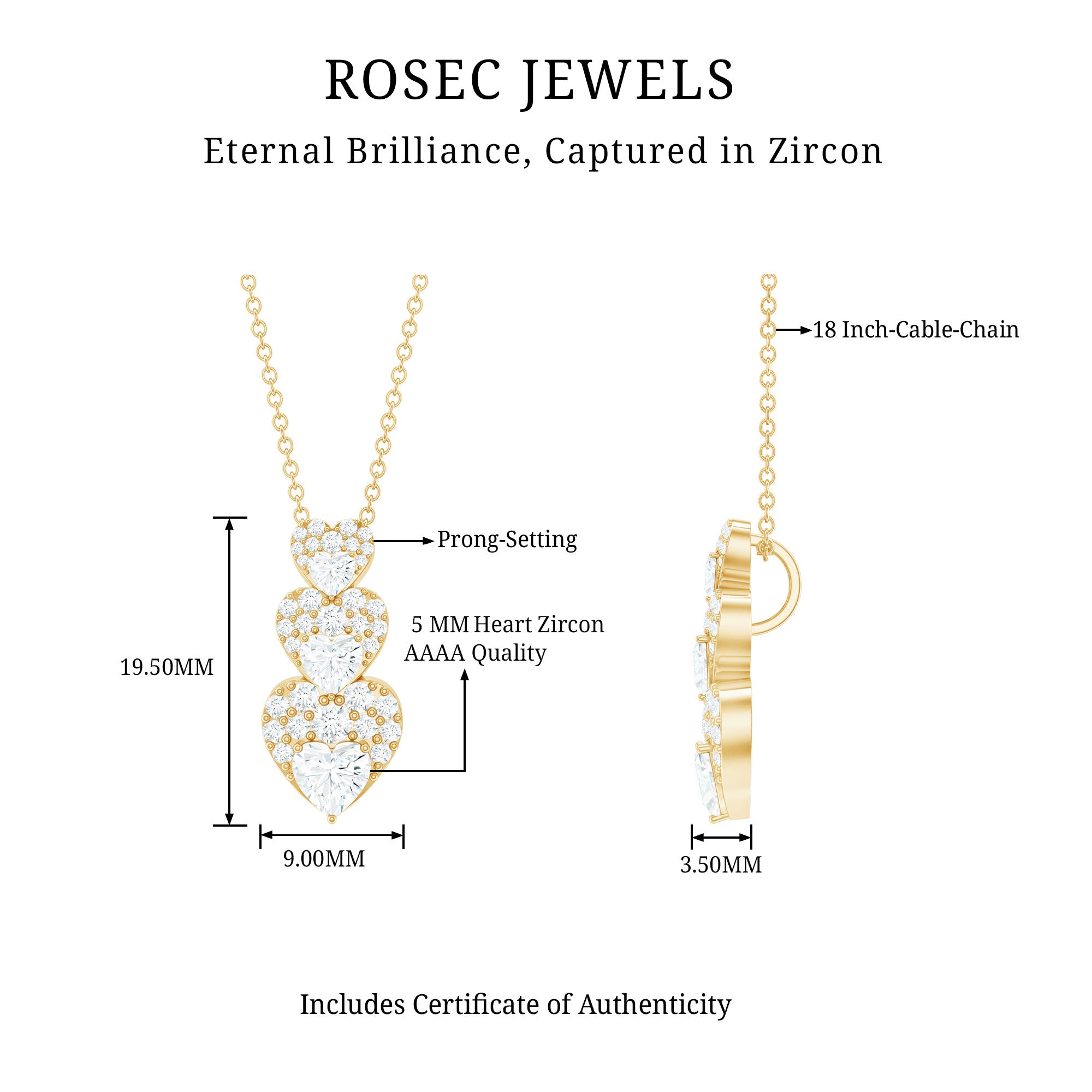 Our classic Heart Pendant Necklace will give perfect finishing touch to your dream bridal look. This elegant Dangle Necklace features three stacked heart motifs adorned with heart and round shape AAAA quality cubic zirconia. The hidden bail ensures a seamless and elegant look, allowing the Zirconia Pendant to dangle beautifully and move with every step. The timeless design and superior craftsmanship make this Bridal Pendant an excellent choice for any woman who loves classic and sophisticated jewelry. It also makes a perfect gift for a loved one or a special occasion.