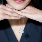 Rooted in symbolism and elegance, this Tree of Life Necklace is a breathtaking piece that beautifully blends timeless design with meaningful craftsmanship. Handcrafted in 14k white gold plated silver, the Nature Inspired Pendant is an intricate piece of jewelry that symbolizes growth, strength, connection, and new beginnings. It features a finely detailed tree silhouette, where each branch curves gracefully outward to form a filigree detailing and is studded with simulated diamonds in pave setting. The Tree Necklace hangs from a sturdy cable chain, sits comfortably around your neck, and fastens securely with a classic lobster clasp. Its simple design makes it perfect for layering with another necklace or wearing on its own as a statement piece. This Simulated Diamond Pendant Necklace comes in a beautiful jewelry pouch, making it a thoughtful gift for birthdays, anniversaries, or any special moment. Whether you are celebrating a new beginning, honoring your journey, or gifting someone special, this Silver Diamond Necklace is a powerful symbol of strength, hope, and everlasting beauty.