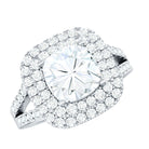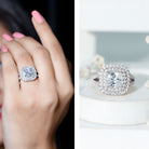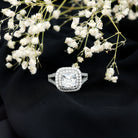 Certified Cushion Cut Moissanite Double Halo Engagement Ring