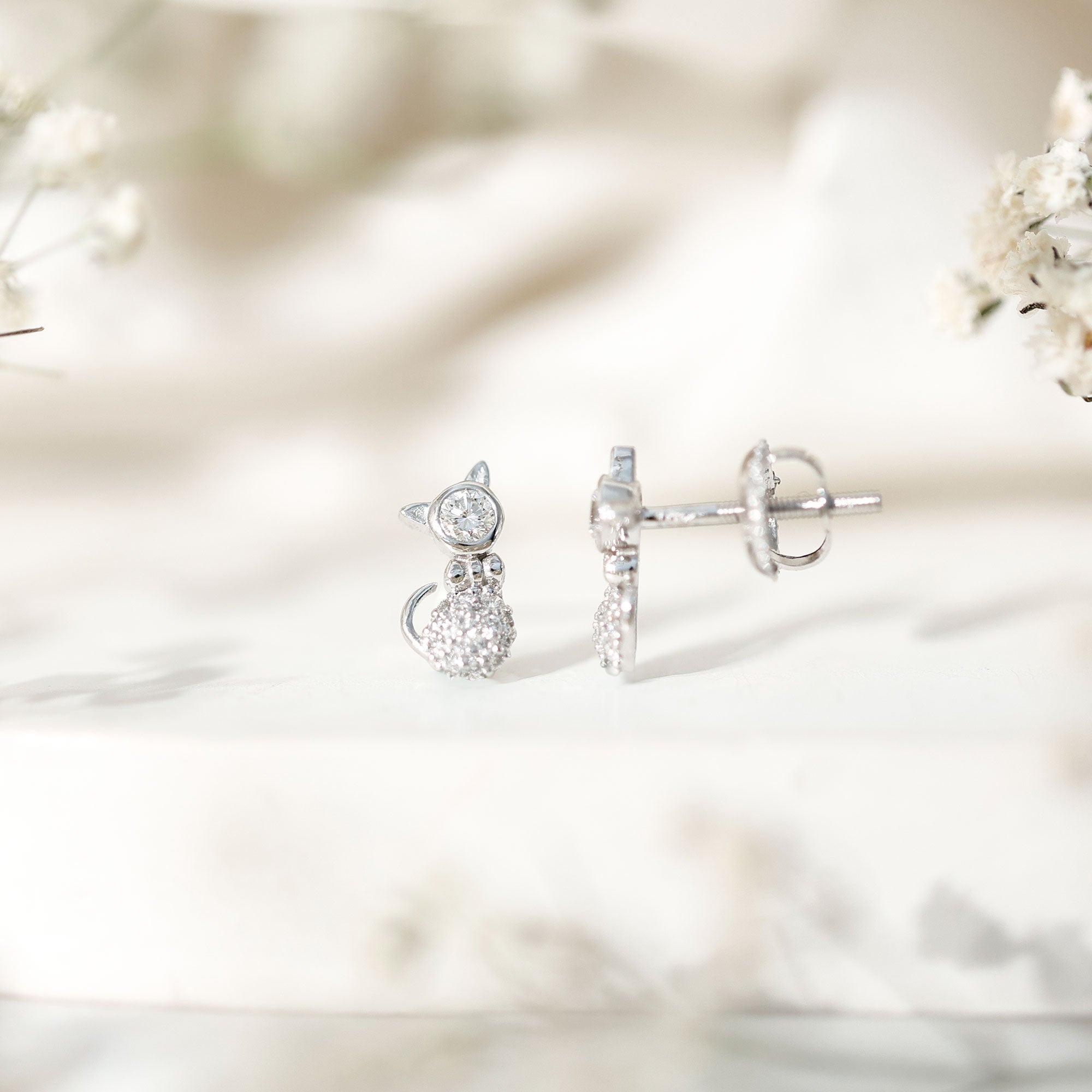 Certified Diamond Cat Kitty Earrings