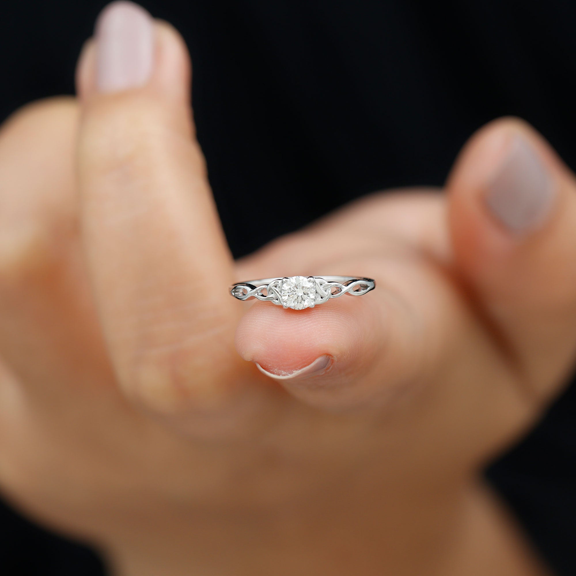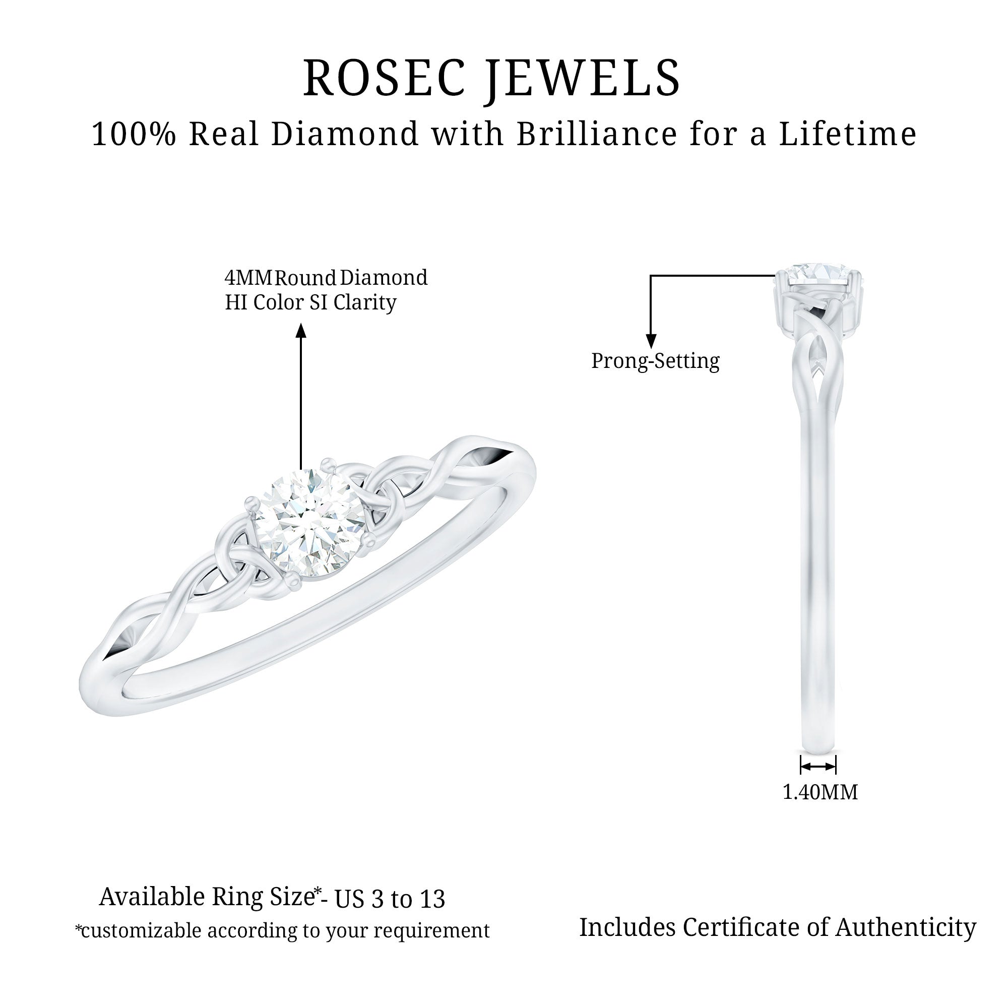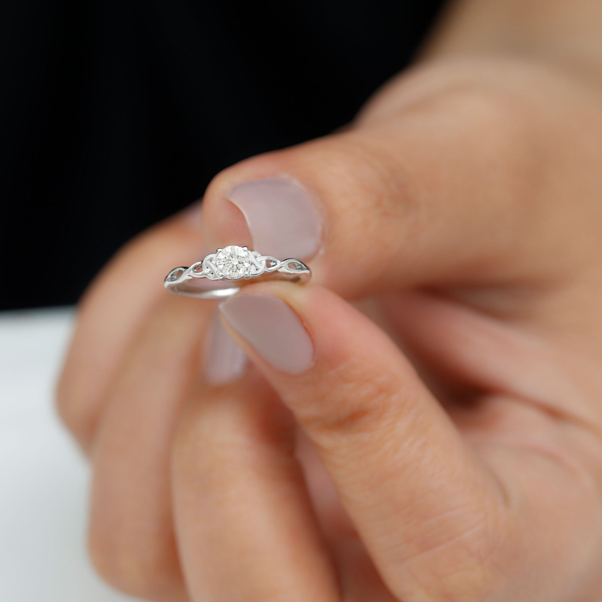 If you are looking for a Promise Ring for Her to give on Valentines Day, you have hit the jackpot! Rosec Jewels offers this stunning Solitaire Promise Ring, crafted with a natural diamond. We created this Minimalist Ring featuring a 4 MM Round Cut Diamond, set in Prong Setting on a Celtic Shank. This Diamond Promise Ring, embellished with a trinity knot, symbolizes your commitment in the most sparkling way. Plus, if you both love minimalistic yet timeless designs, you can also use this Love Knot Ring on your wedding day. It comes in a high-quality jewelry box, ensuring safe delivery and creating unforgettable moments when you pop the question. This Celtic Knot Ring not only dazzles with its brilliance but also embodies a meaningful style that merges classic elegance with modern sophistication. It perfectly balances timeless beauty and contemporary flair, making this Round Diamond Ring for Women a beautiful homage to modern romance. Its unique charm makes it ideal for any occasion, whether its an Engagement, Valentines, or Anniversary.
