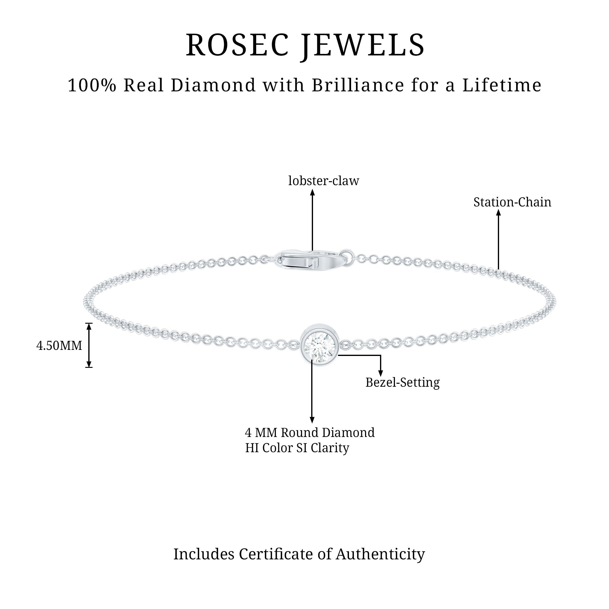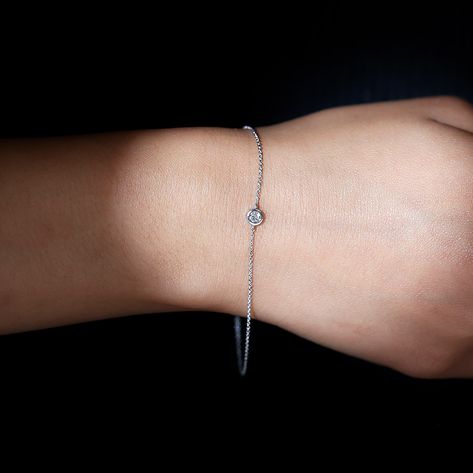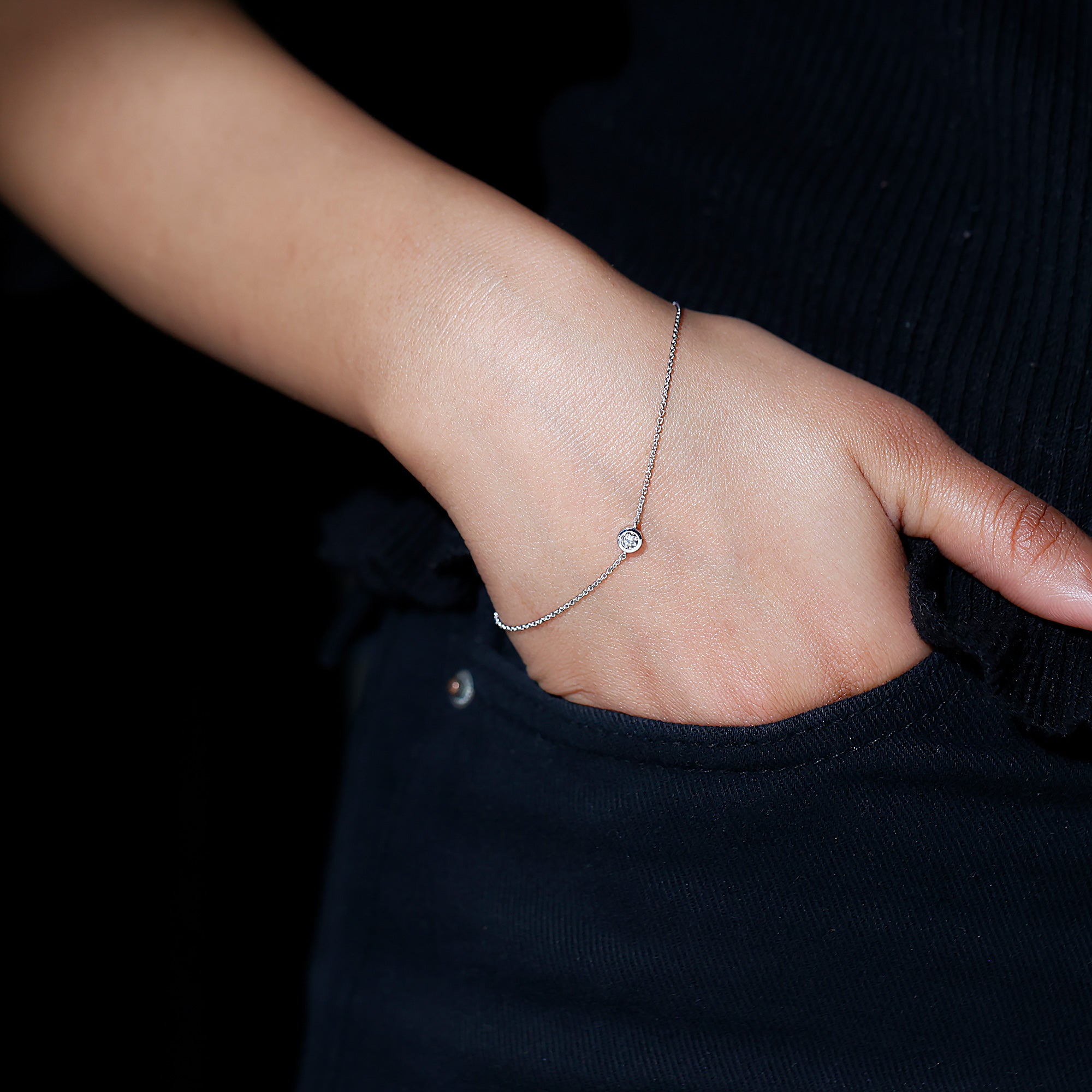 Simple and sophisticated in its style, this Diamond Chain Bracelet has a sleek and modern design that enhances its brilliance. Having a contemporary look, this Solitaire Bracelet is adorned with Round Shape Diamond in Bezel Setting. This appealing Bezel Set Diamond Bracelet is a classic choice that would always be in trend. Combining style and individual preference, this Dainty Diamond Bracelet creates a dazzling effect. As a timeless classic with modern sophistication, it experiences the ultimate wrist bling. Having endless sparkle, it also lets you welcome as a new addition to your jewelry collection. Their timeless and understated elegance is designed to last, with the modern appeal drawing in and bouncing light in every direction. The modern elegance of the Real Diamond Bracelet is a modern and timeless appeal, making it suitable for various occasions. Embrace the allure of this classic design, and let it adorn your wrist with sophistication and grace.