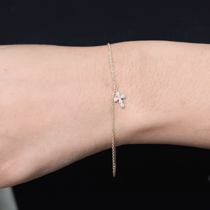 Embrace the timeless symbol of faith, spirituality, and devotion with this exquisite Diamond Cross Bracelet, which is inspired by the sacred cross. With its unique design and meticulous attention to detail, this Bracelet offers luxury and elegance. Exuding sophistication and grace, this Cross Bracelet is adorned with a Round brilliant cut Diamond on the cross. Its design is crafted to honor the significance of the religious symbol and serve as a beautiful reminder of ones beliefs and values. This spiritual accessory has a perfect Cross charm on the Chain Bracelet that blends tradition with modernity. As a timeless piece of jewelry, it is a minimalist accessory that represents themes and religion and is perfect for any special event. Its minimalist design highlights a striking cross charm which resonates with refined elegance. Whether worn solo for a subtle statement or layered with other pieces for a bolder look, this Cross Charm Bracelet is classic simplicity through every moment, reminding you of the spiritual significance it embodies.