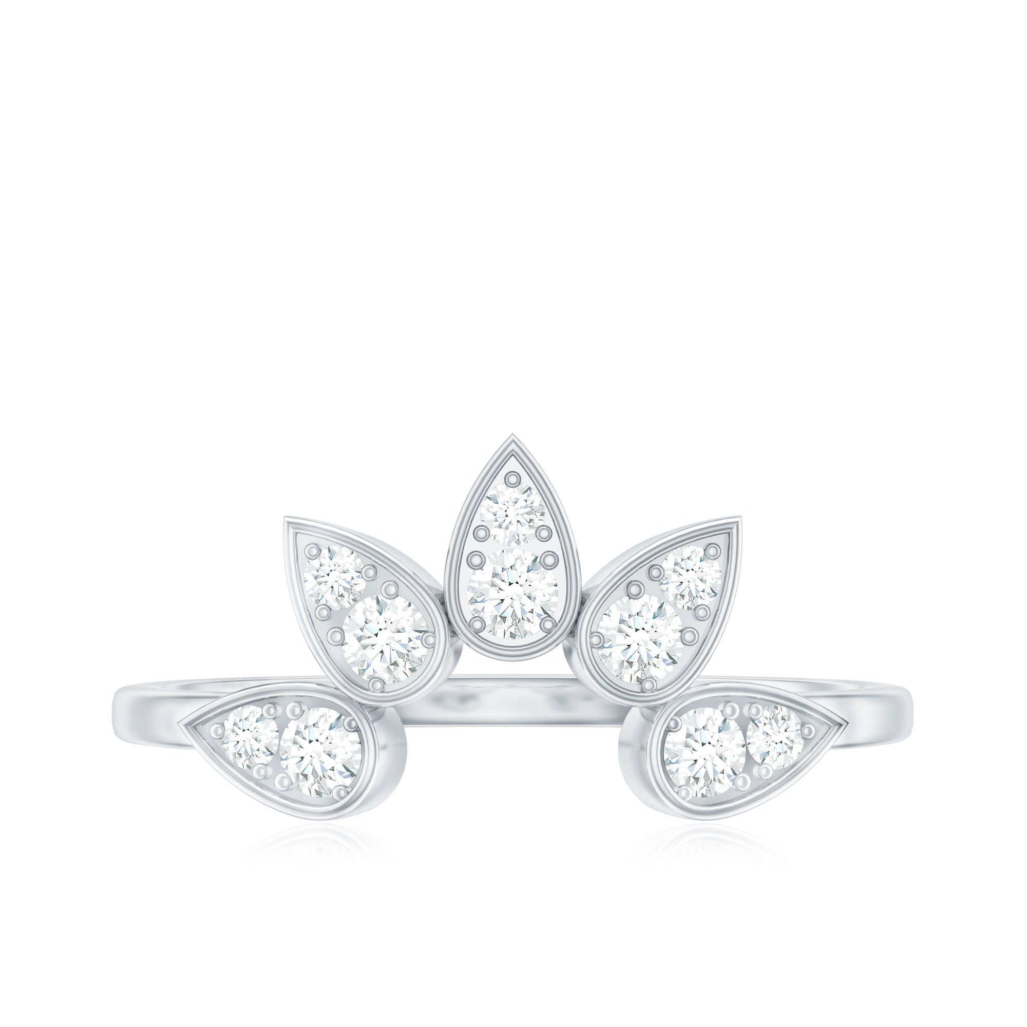 The stunning and eye-catching Diamond Ring Enhancer is the ideal accessory to enhance your engagement ring. This classic Ring Guard showcases beautifully crafted pear shaped motifs, adorned with sparkling Brilliant Round Diamonds set in prong setting, which make the Wedding Band shine brightly. This exquisite piece will complement any ring and suit any occasion. The band is elegantly curved in a crown style, making it a perfect choice for women who want to add extra sparkle or a fresh touch to their engagement ring. Whether worn alone as a striking statement or stacked with another ring, this Diamond Stackable Ring embodies love, elegance, and brilliance. This Real Diamond Ring Guard comes with a certificate of authenticity and is presented in a signature jewelry box, ensuring your ring stays safe when not in use. With customization options available, you can transform this Stacking Band Ring into something truly one-of-a-kind.