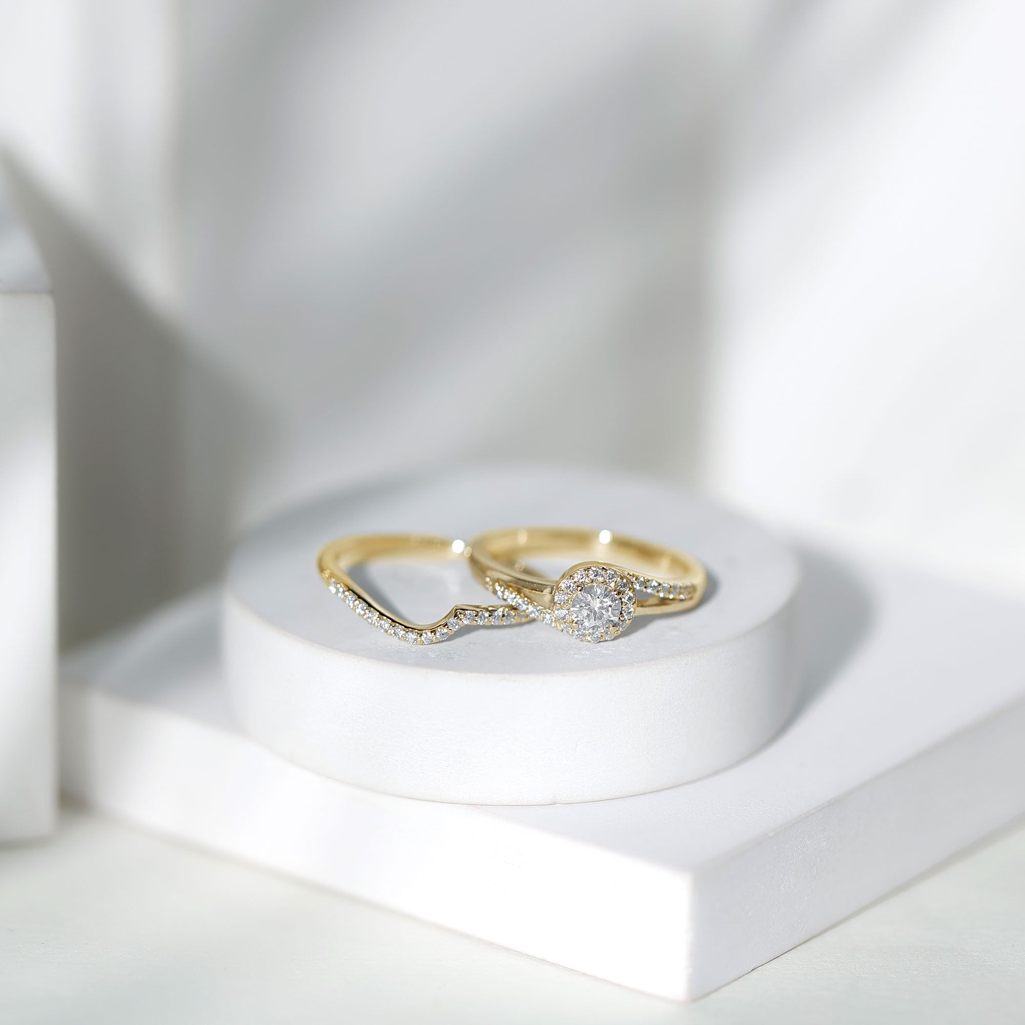 A bridal set is designed to fit together seamlessly, ensuring consistent style and alignment without needing to match separate pieces later.
