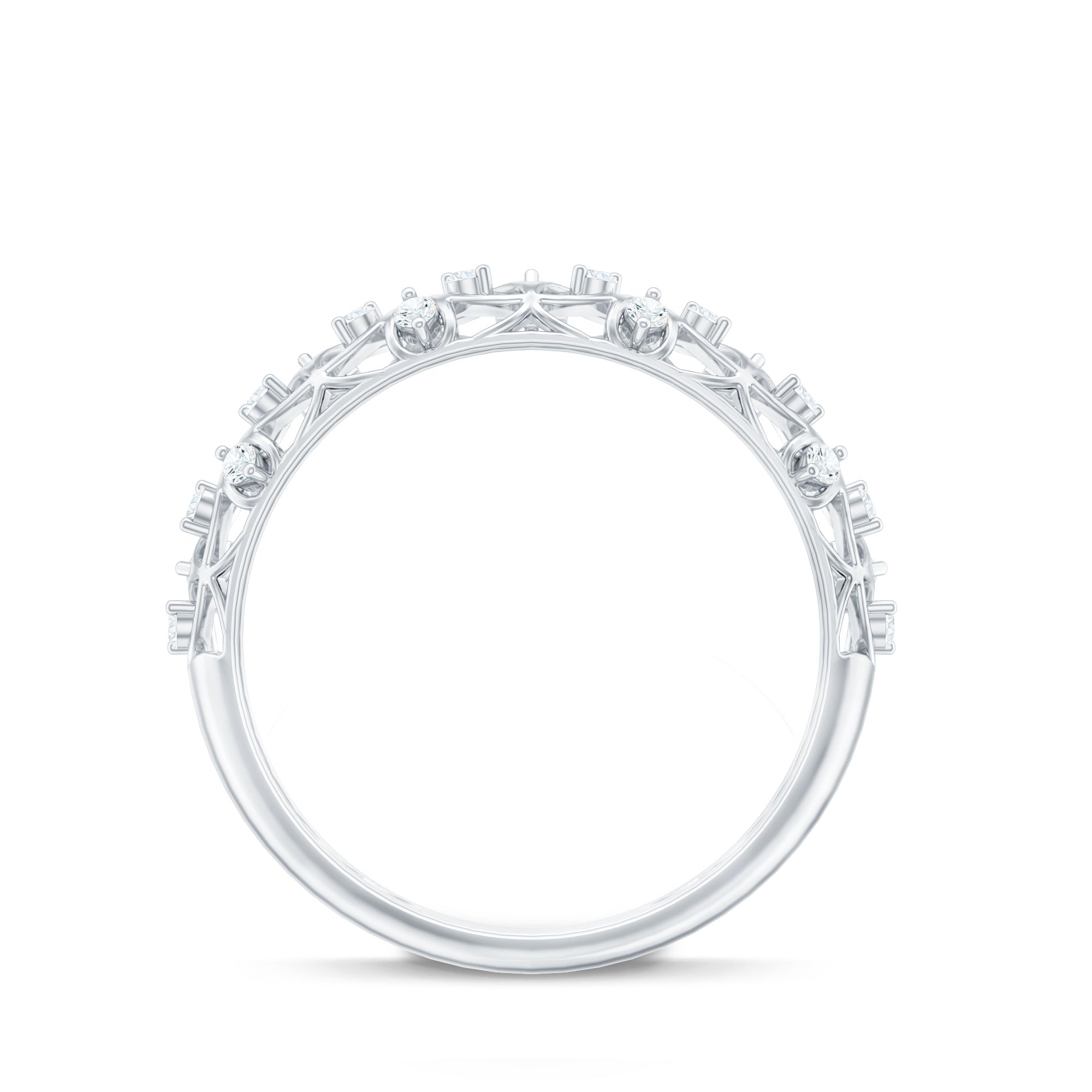 Indulge in the timeless beauty with this exquisitely crafted Diamond Wedding Ring, which is designed with precision and care. The Round Diamond scattered on the Filigree Band is securely placed in Prong setting. This Filigree Diamond Ring is the perfect present for your special one, along with the intricate leaf designs in the Art Deco style, giving it a unique and desired look. This stunning Half Eternity Band adds sparkle and radiance to it, reflecting shine from HI-SI Quality Diamonds, making it perfect for a special moment. Remaining forever in style, this Filigree Wedding Band has styled engraved patterns that add elegant textures while maintaining a stately aesthetic. The stunning details have sparkle and the charming vintage touch. Its classic design is an excellent choice for an enduring wedding band, being connected with a romantic design and an incredible shimmer, all the way creating a breathtaking, gorgeous piece of jewelry. Also, a perfect reflection of everlasting love, making this Filigree Diamond Ring perfect for the one close to your heart.