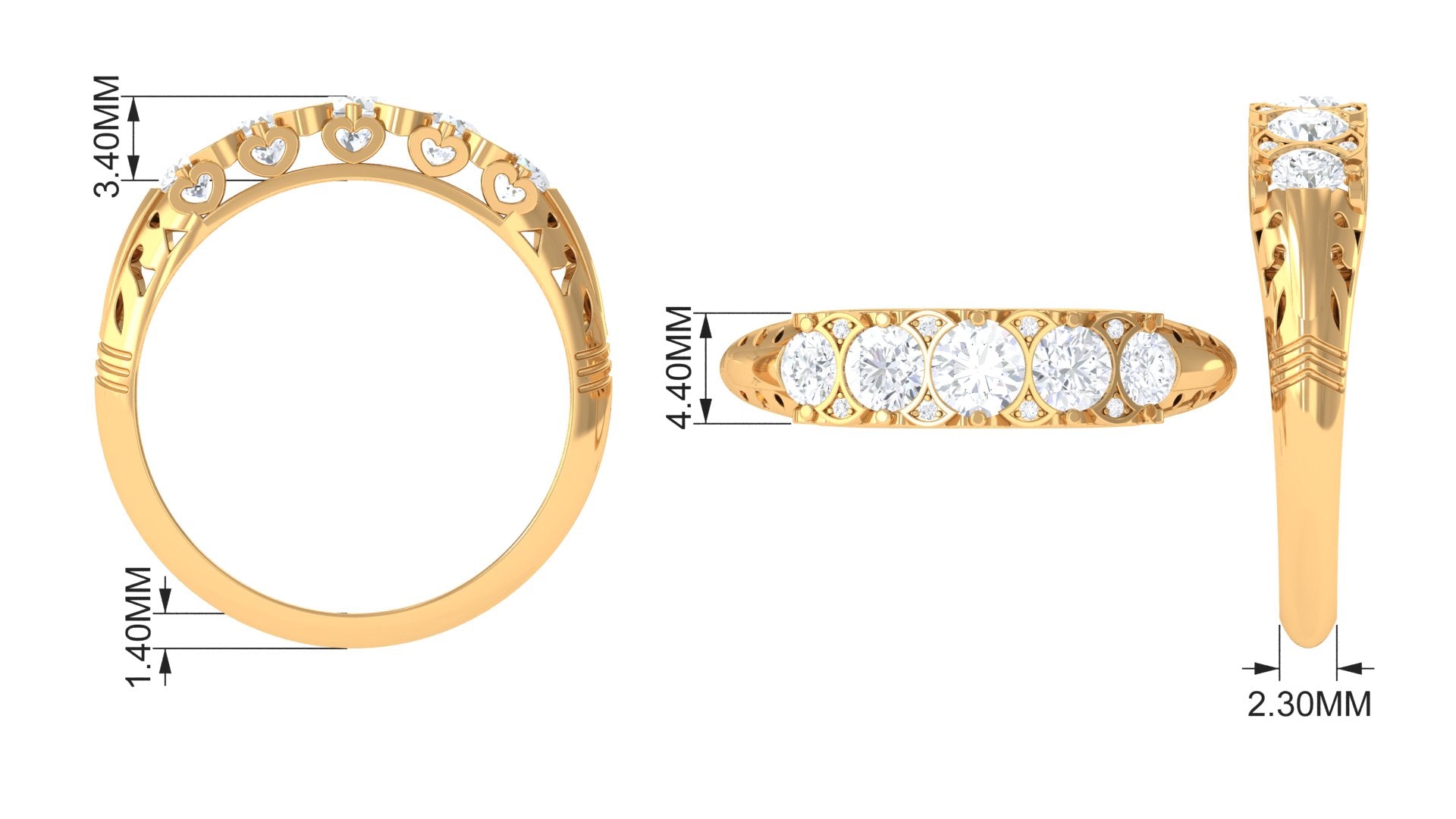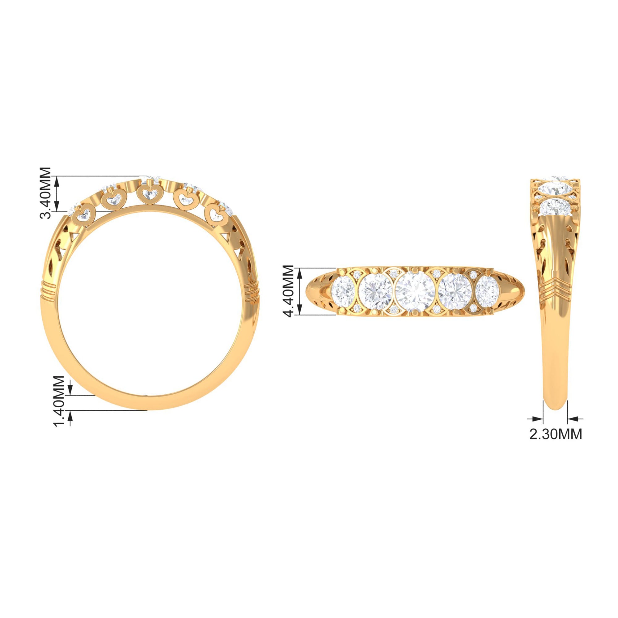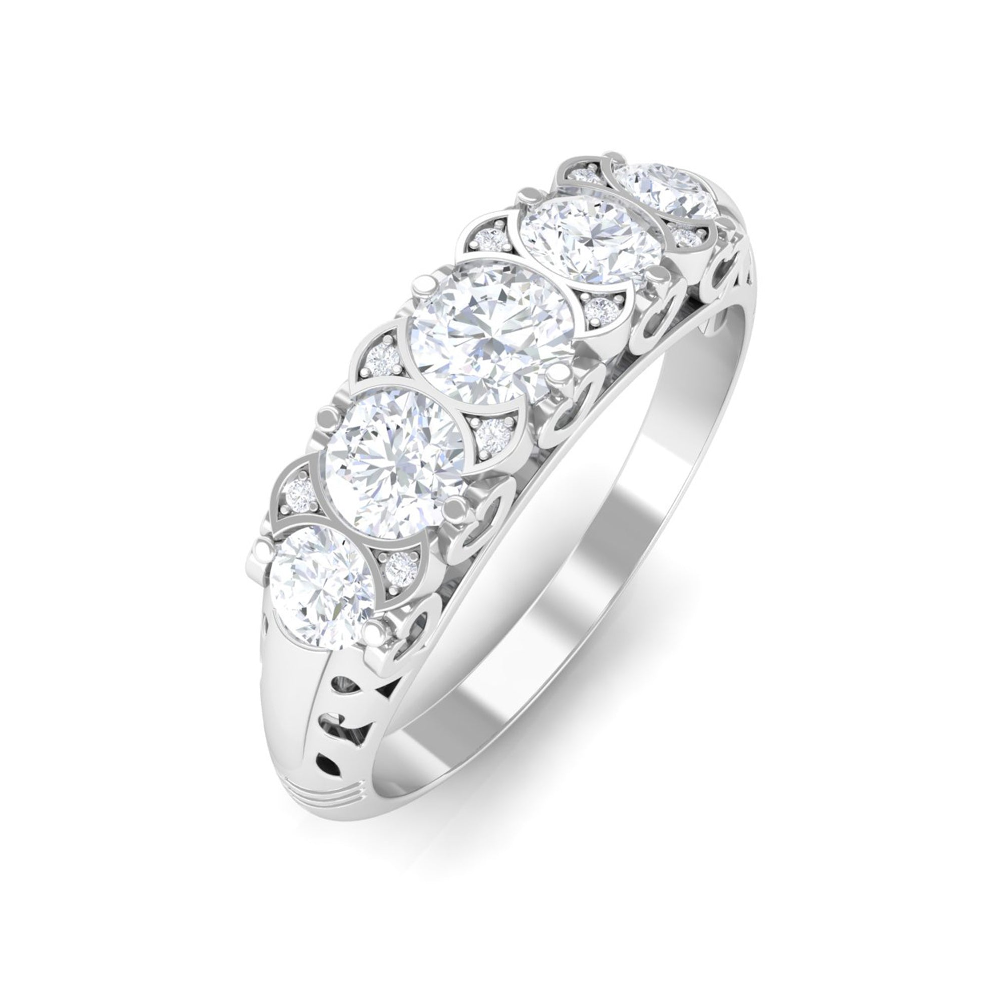 Celebrate your love with this dazzling certified Diamond Five Stone Anniversary Ring. The ring features a 4 MM round Diamond center stone along with small sparkling Diamonds, encased in a row. The five sparkling Diamonds represent the five years of love and happiness you have shared together. This ring is the perfect way to show your spouse how much you care.