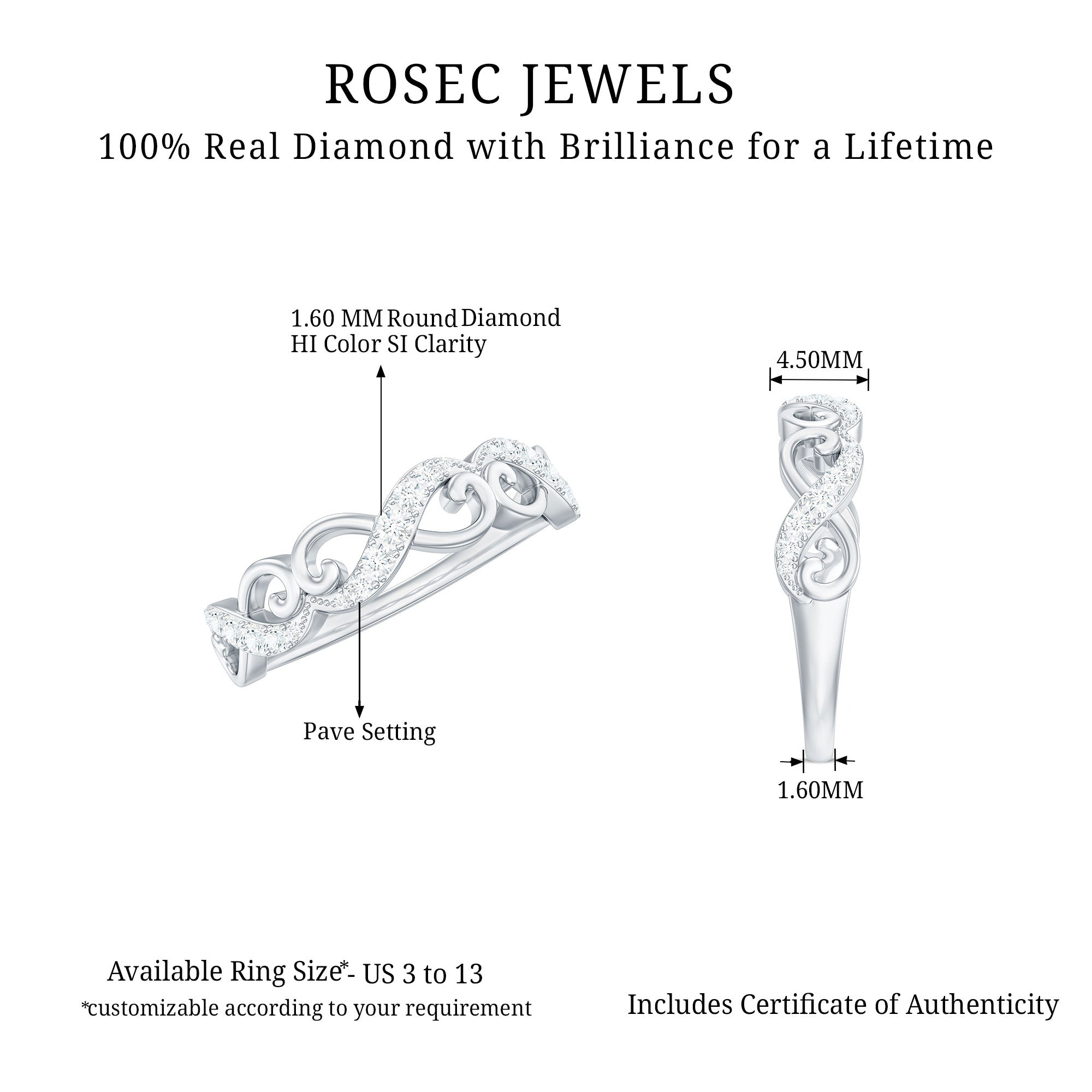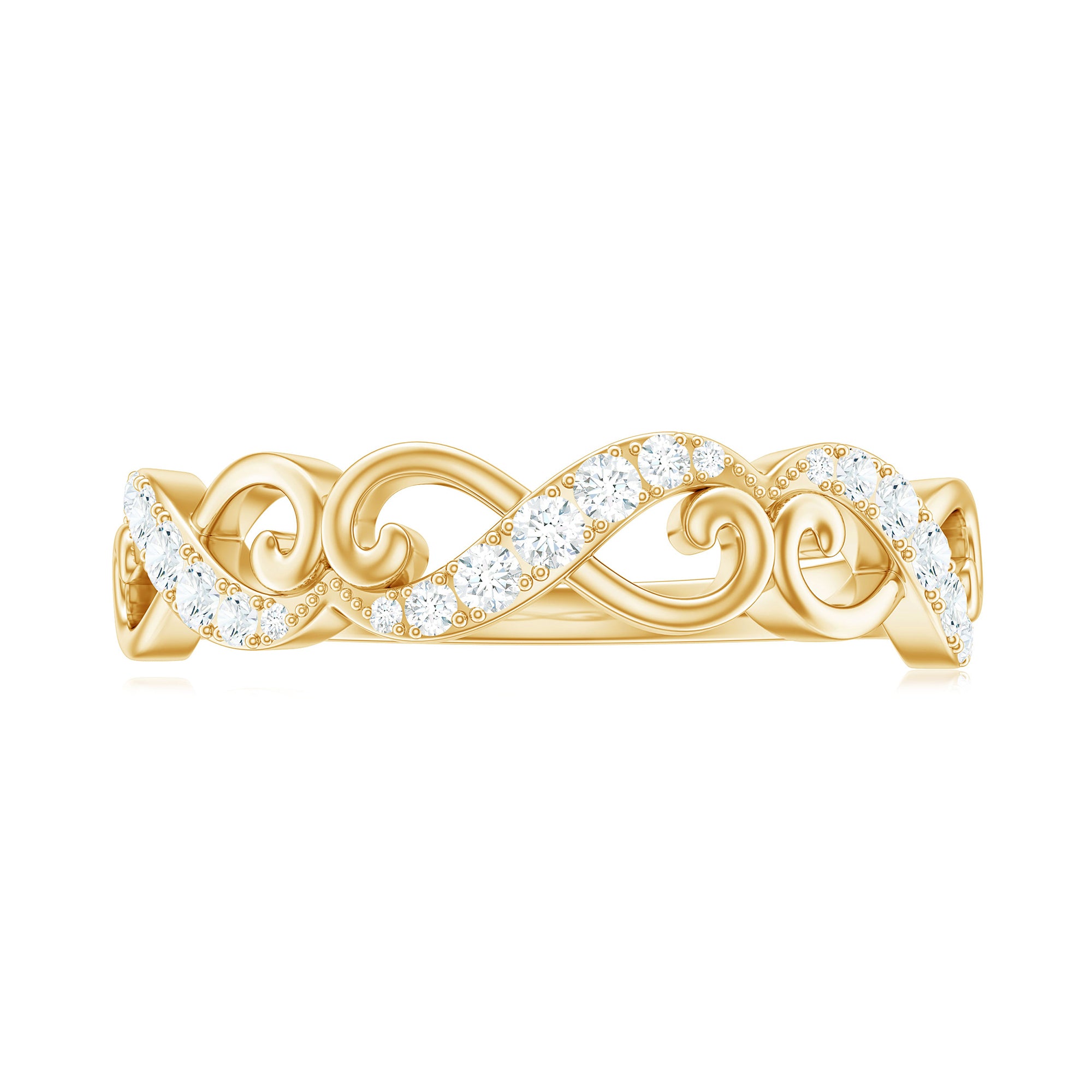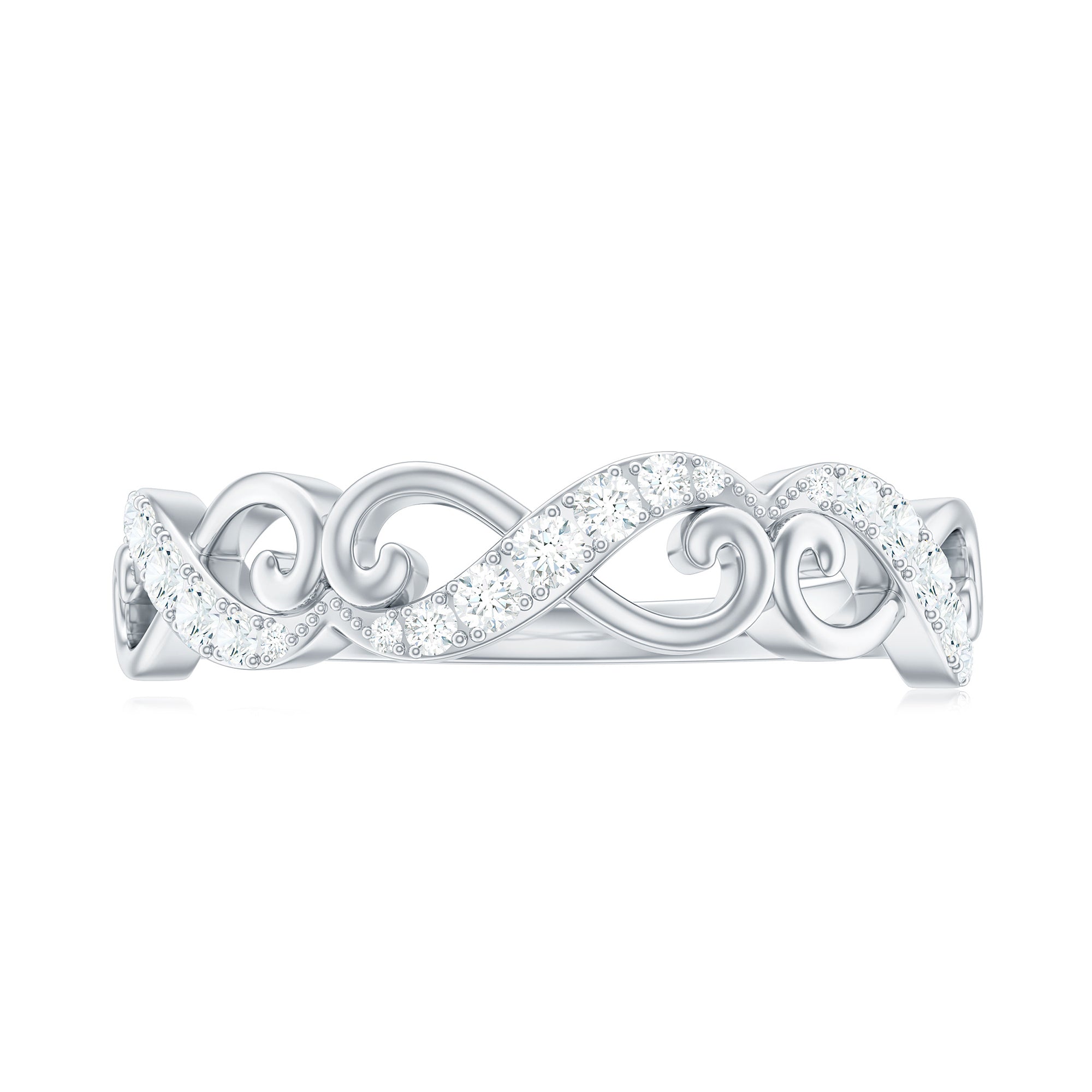 The vows and commitment are made to be beautiful with this Diamond Infinity Ring. Its sleek design and Diamond studded on Infinity pattern of this Half Eternity Ring is an exquisite band that would make a perfect one for a wedding. Sparkling with every moment, the infinity motif represents a never-ending bond, making it the perfect choice for expressing your promises and devotion. Create a harmonious blend of modern glamour and classic charm, with this Infinity Wedding Ring is great to mark a significant event and also an unwavering devotion. This Classy Infinity Sign Ring produces the fire and sparkle, boasting a similar aesthetic. Expressing undying love, it tends to be a symbol of never-ending love and affection. The beautiful combination of the Diamond Infinity Band symbolizes on and on forever. Incorporating the infinity sign has unique twists that expand halfway down the band. The appealing look of the Diamond Eternity Ring adds a touch of style and symbolism to your ring stack. It fits perfectly with your lifestyle and will withstand daily wear.
