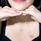 As proof of your everlasting love, this Diamond Necklace shimmers with meaning. This pretty Infinity Heart Necklace is a lovely way to show her how much you treasure her. Attached to a chain, this Necklace is adorned with a heart that is interwoven in the middle to form an infinity symbol, which is then decorated with Round brilliant cut Diamond. As a symbol of endless, enduring love, memories, and devotion, this Necklace shows that it only beats for you. This Infinity Knot Necklace showcases that love is forever with the unbreakable bond. Its endless loop is the timeless nature of true love, which is elegant and stylish. The beautiful entwines of Heart and Infinity is a wearable symbol of eternity and connection. It is also a unique blend of sophistication and sentimentality. Its minimal yet intricate design ensures that its craftsmanship is versatile and timeless. Standing in the test of time, this Infinity Symbol Necklace steals the spotlight as time transcends. AlSo, it is a cherished emotional artifact.