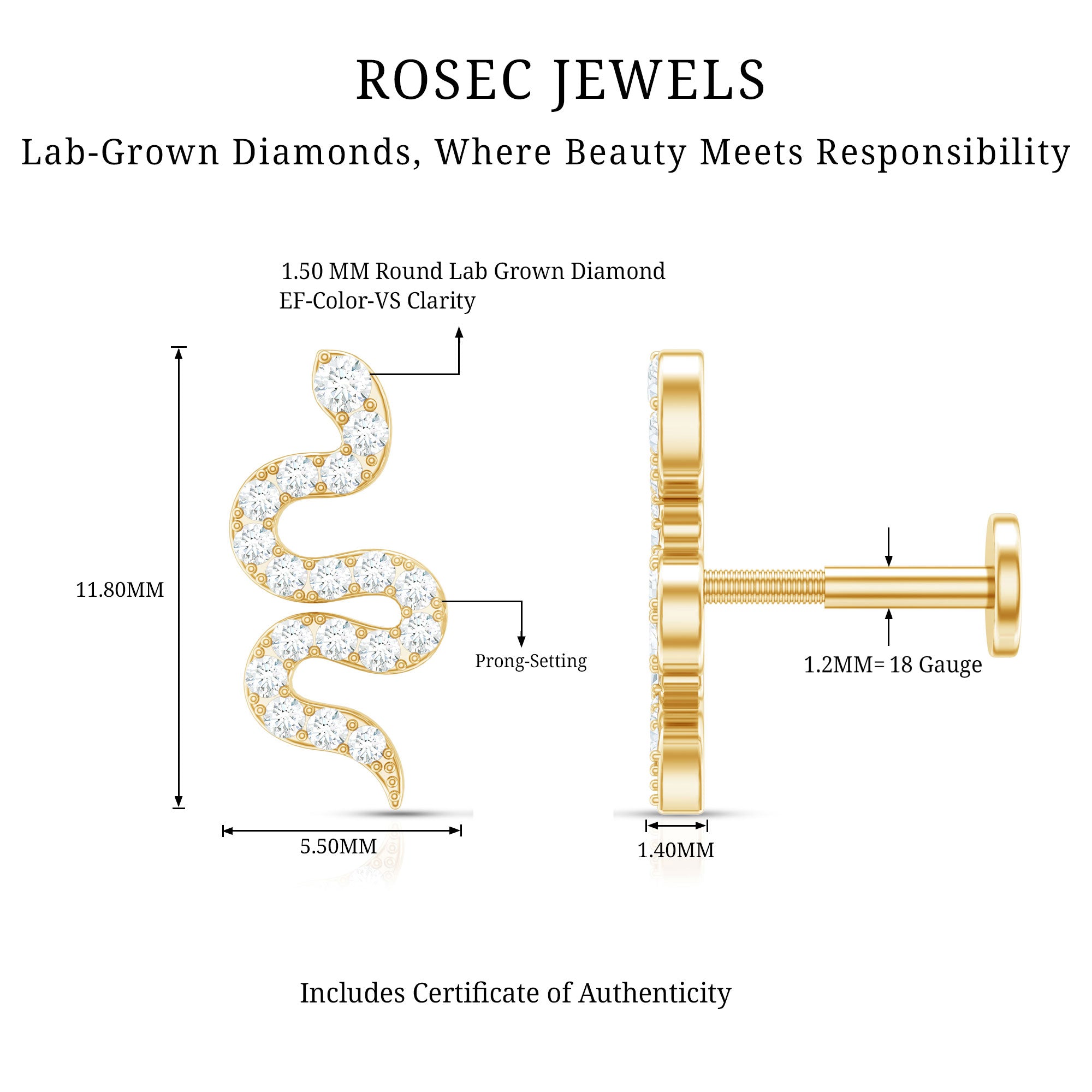 - Crafted with precision, this stunning piercing earring features captivating certified Diamonds studded on a snake motif in prong setting.