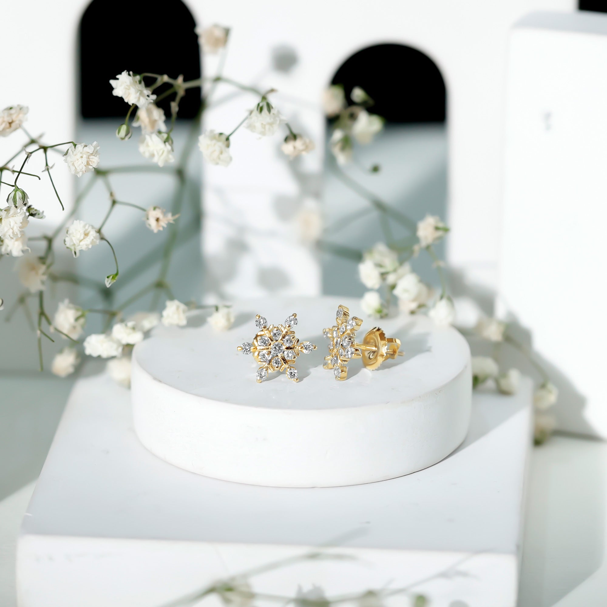 These Snowflake Stud Earrings are a beautiful representation of the unique artistry of winter. With a shimmering Diamond at the center and adorning the snowflake, they are a captivating addition to the jewelry collection. These Christmas Snowflake Earrings capture the individuality and serene beauty of snow, making them a perfect accessory for the winter season. They truly embody the ethereal beauty of a snowfall, with each flake being a unique masterpiece. Just like the natural wonder of each snowflake gracing a winters sky, these Diamond Snowflake Earrings reflect the tranquil and joyful essence of a sunlit snowy day. They offer a tangible connection to cherished winter memories and the serene beauty of natures artistry. The sleek and modern appearance with a modern twist to the classic snowflake design has beauty, which is associated with snowflake-themed jewelry that can be perfectly paired with any outfit. Symbolism of winter magic and uniqueness, these Diamond Stud Earrings have a timeless design, balancing a transient delicacy with eternal sparkle and captivating those fortunate enough to behold them.