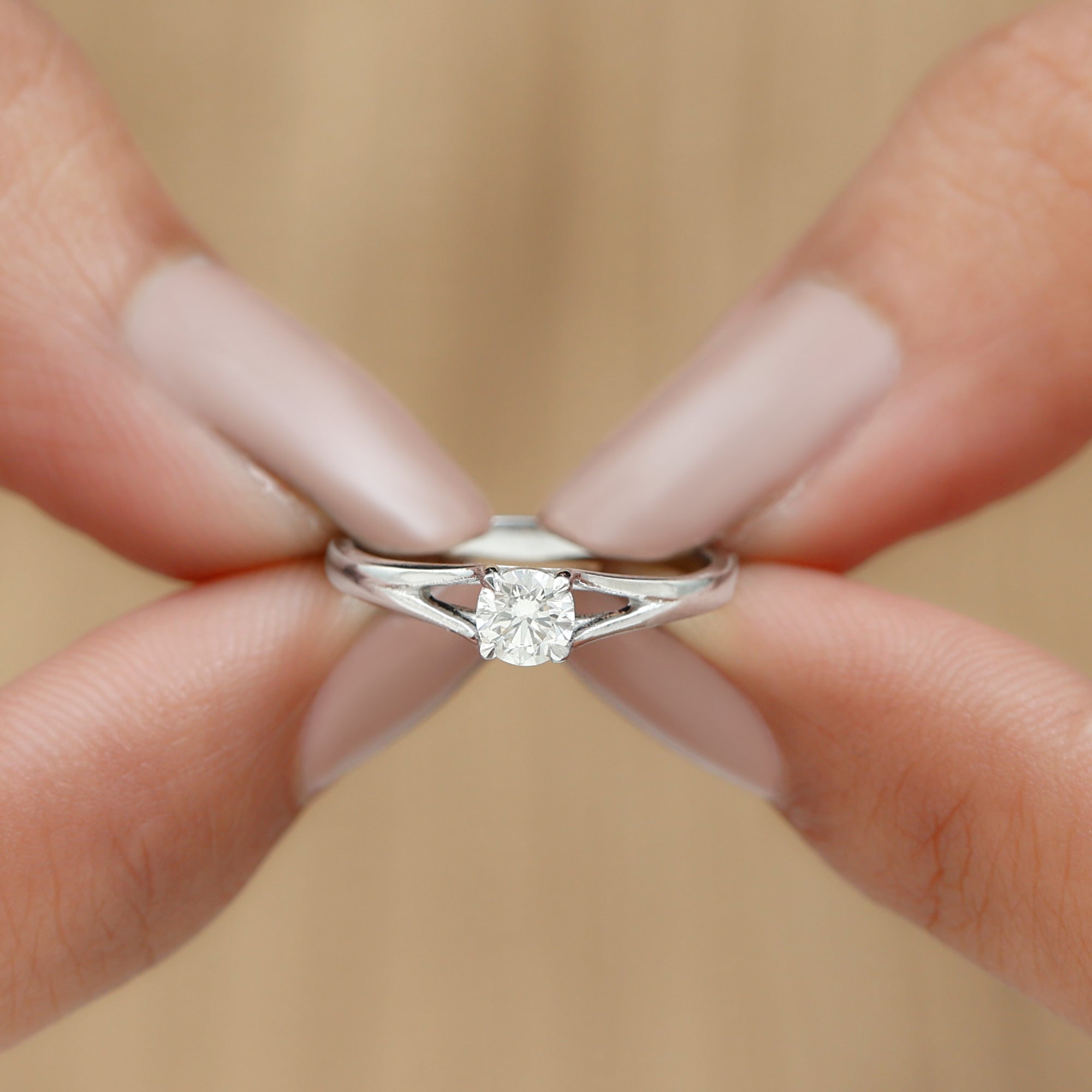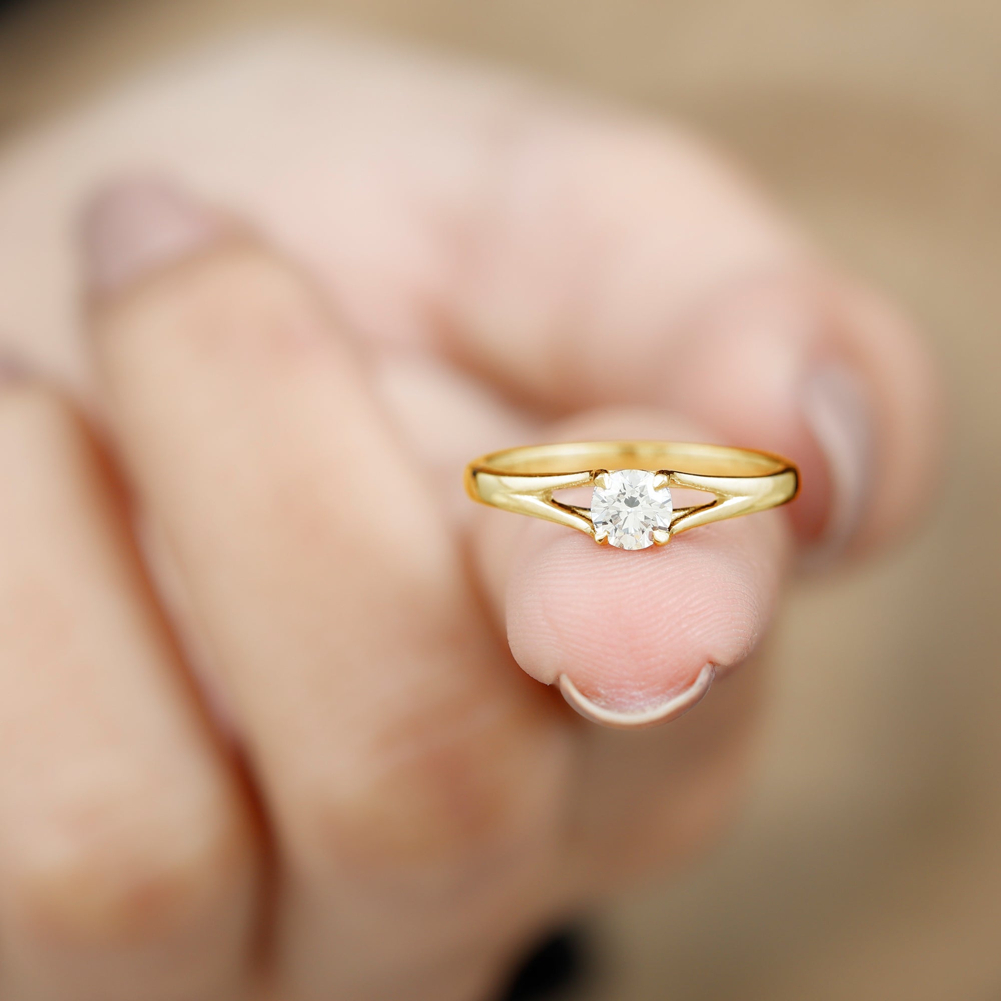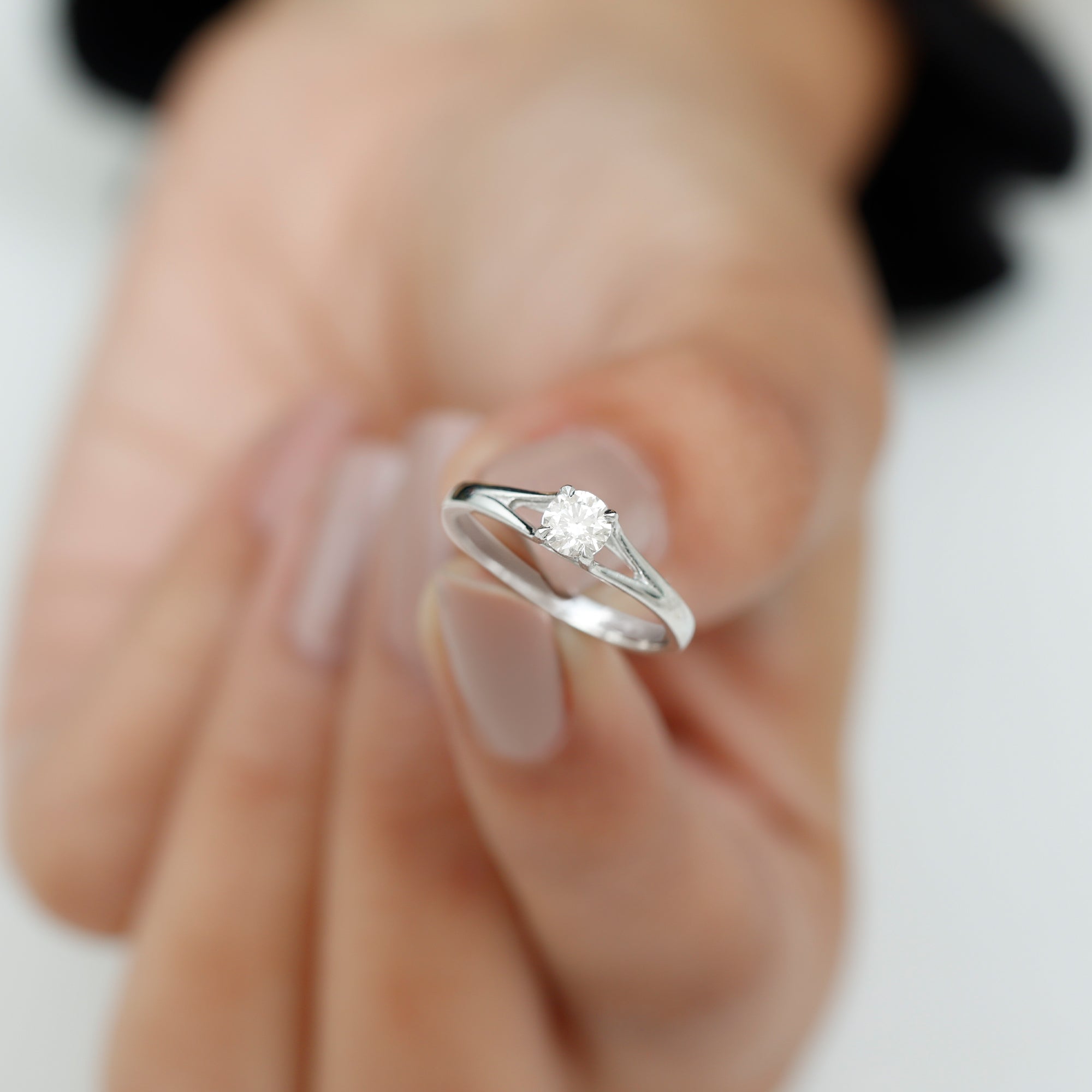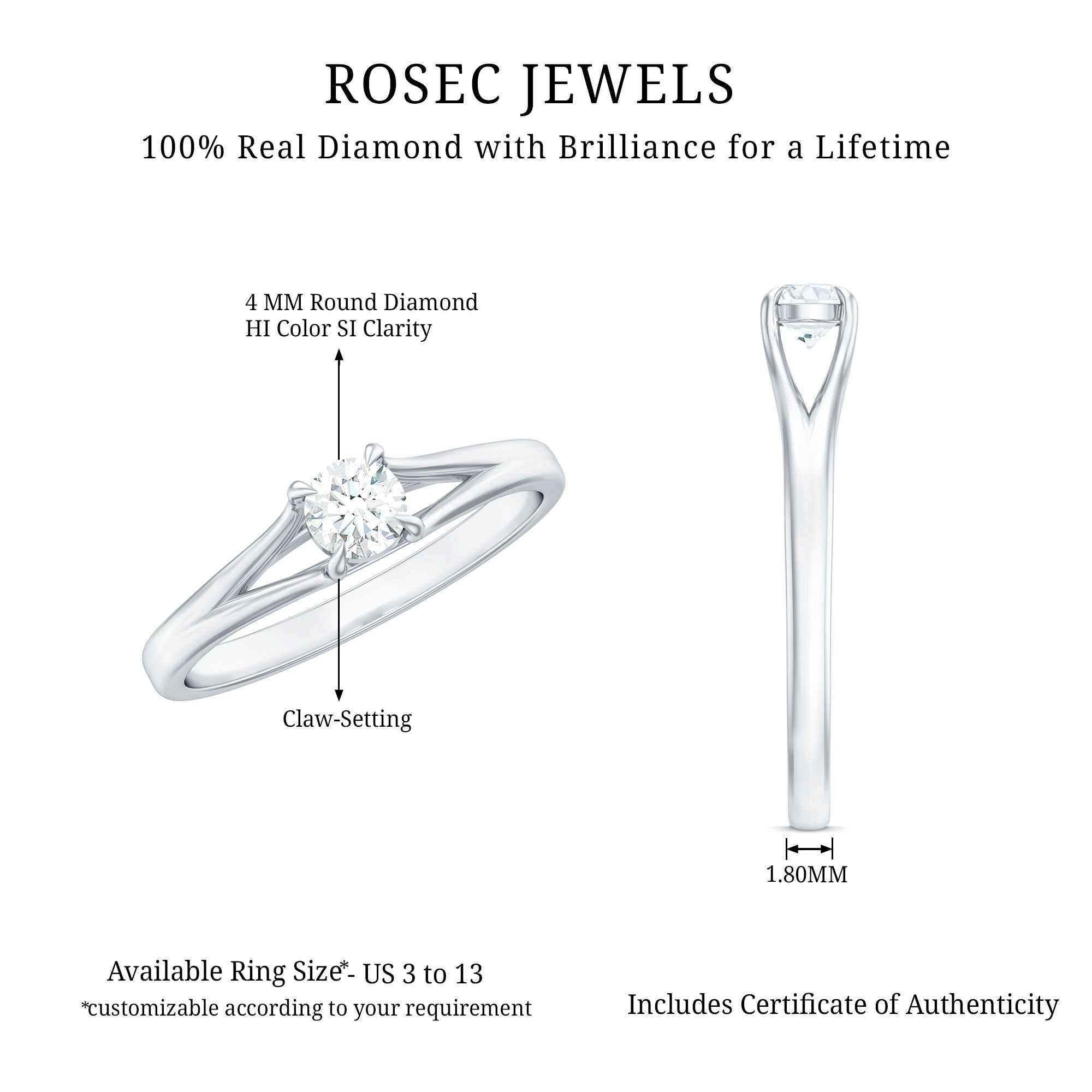 Seal your love with this chic and timeless Solitaire Diamond Ring, which perfectly represents an unbreakable connection and deep commitment. This Real Diamond Ring is a romantic way to express your promise, whether it is for a special occasion or just to show your feelings. It features a 4 MM Round Shaped Diamond set in Prong Setting as a Solitaire with a Split Shank. With its versatile design, this Diamond Promise Ring for Her boasts a minimalist look, making it an ideal commitment ring, birthday gift, anniversary present, or everyday jewelry piece. Every time she glances at the ring, it will remind her of your love and add a fairytale touch to your relationship. This Minimalist Ring is a lovely option to reinforce the vows of your partnership. The HI Color SI Clarity Natural Diamond embodies elegance and meaning, crafted to represent everlasting love. Since a diamond is the birthstone for April, this Split Shank Ring is a thoughtful gift for anyone born in that month or for those who appreciate a touch of elegance. It comes beautifully packaged, ready to be gifted as soon as it arrives, making it a fantastic choice for any celebration.