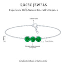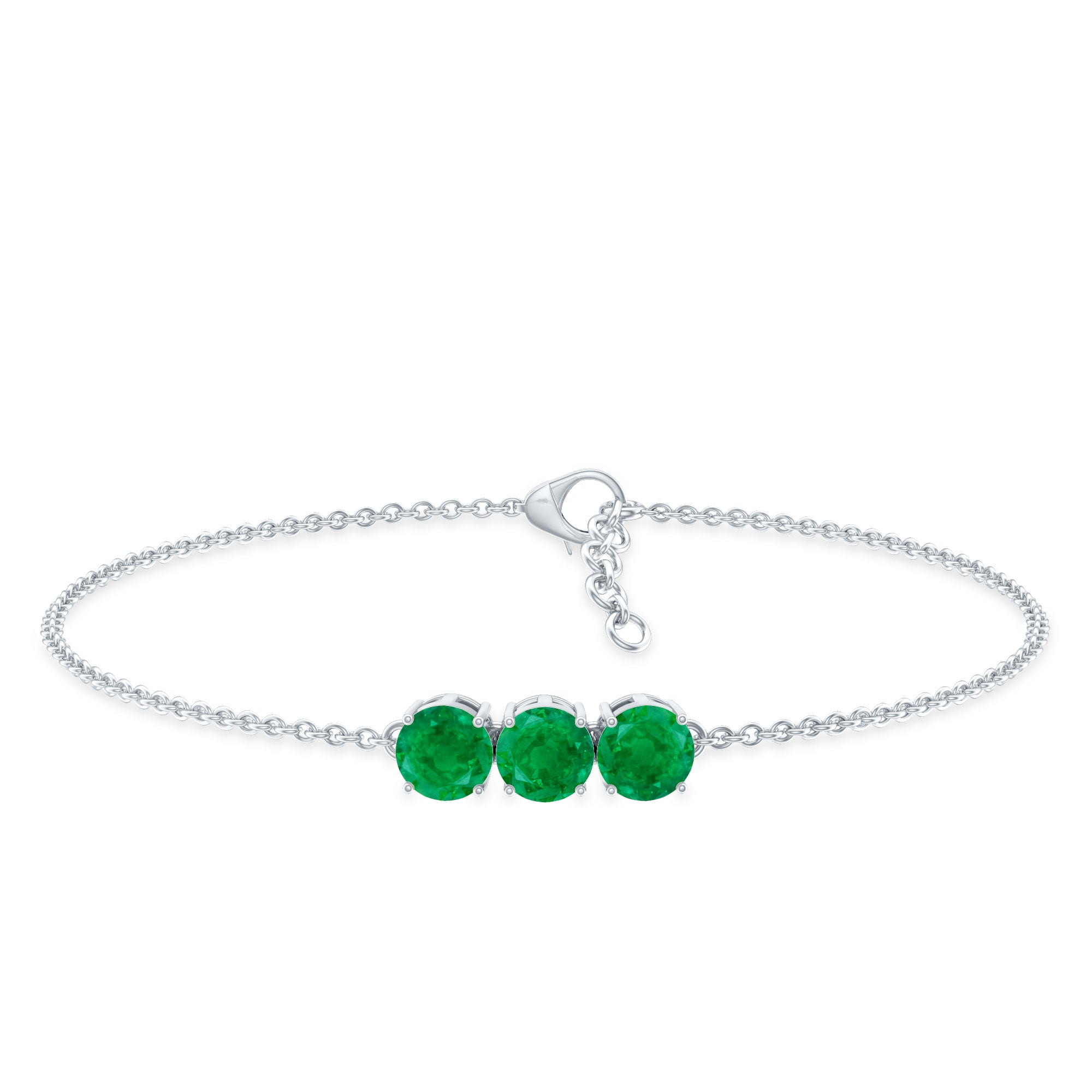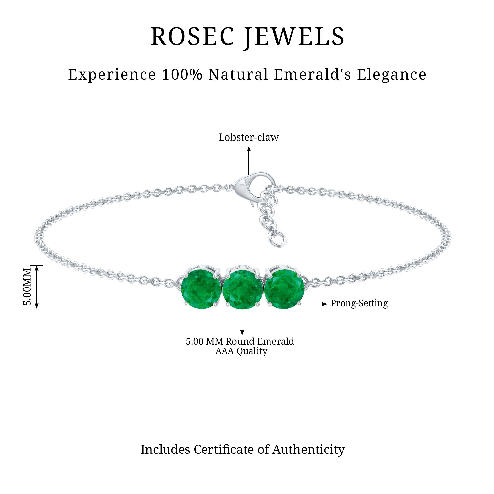 This Three Stone Bracelet is a captivating symbol of the past, present, and future, featuring 5mm Round shape Emerald, set in a link chain that enhances the bracelet beauty. Experience timeless elegance with this exquisite Past Present Future Bracelet, carefully crafted and selected for its remarkable brilliance and clarity. It is a perfect option for a proposal, engagement, or anniversary gift for your loved one, presented in a ready-to-gift jewelry box along with a certificate. Wear it alone for a chic or minimalist look, or pair it with other bracelet for a stylish, layered appearance. The Emerald Bracelet is sure to elevate your style with every wear, allowing you to discover the perfect combination of sparkle, elegance, and versatility. This bracelet showcases AAA Quality Emeralds, offering unmatched brilliance and clarity for a classic, luxurious accessory.