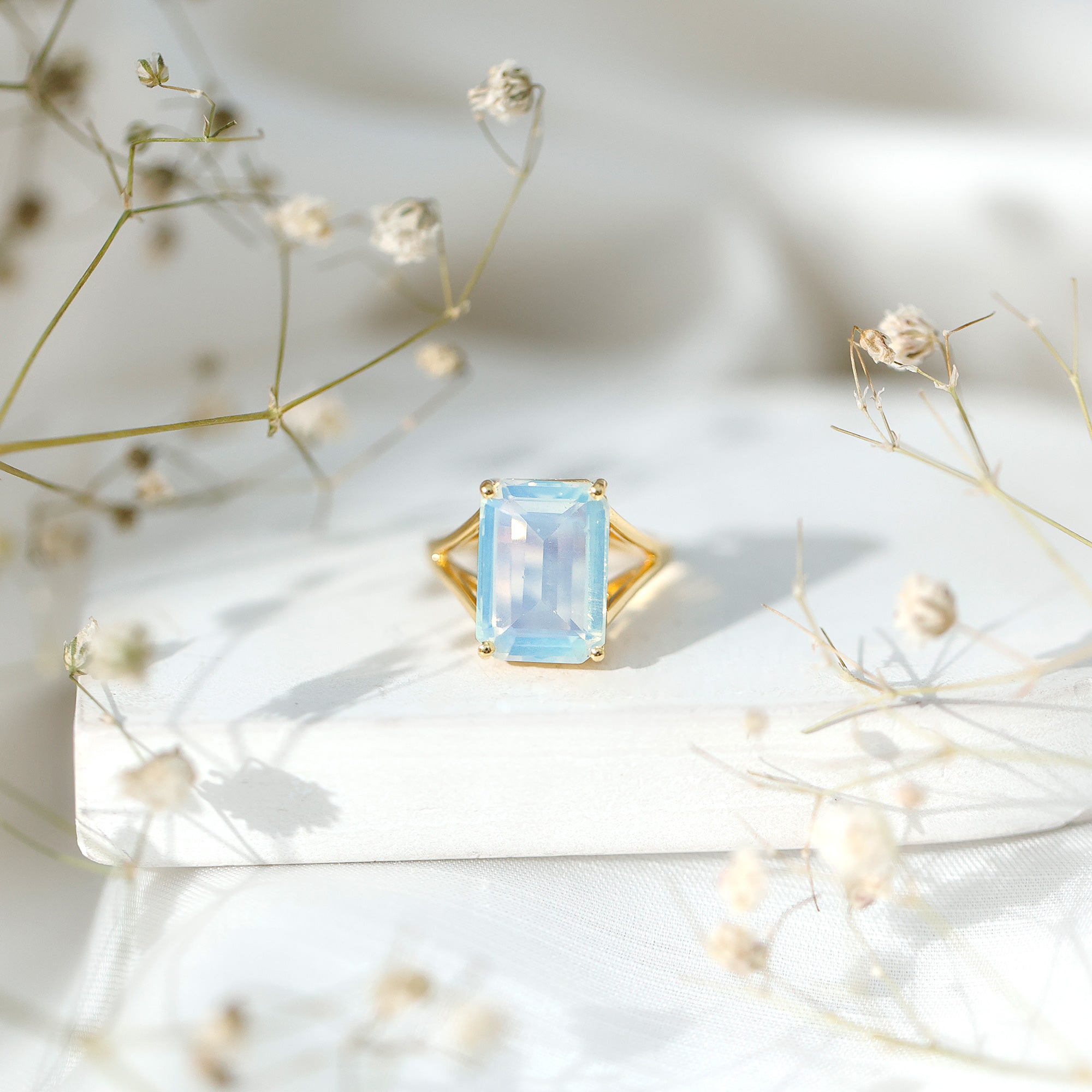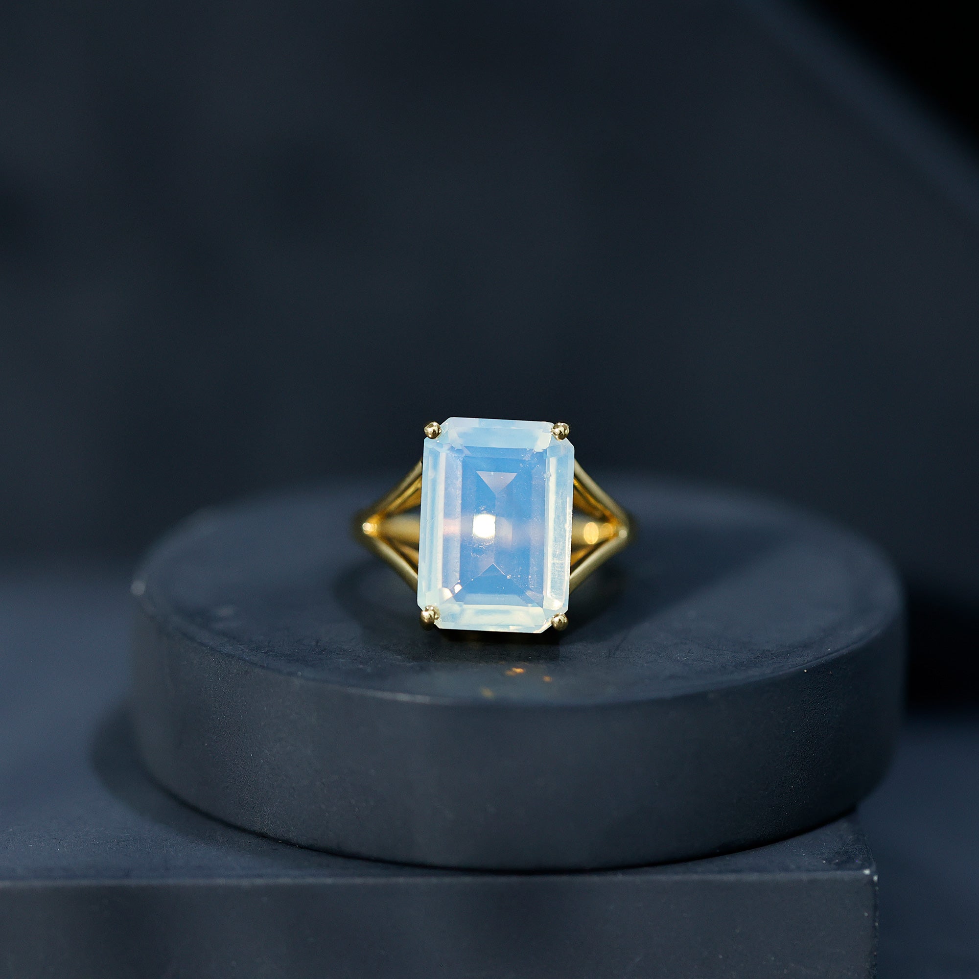 Upgrade your look with this stunning Ethiopian Opal Engagement Ring, crafted to make a striking and memorable impression. This beautiful piece showcases a gorgeous 10X14 MM Emerald Cut Opal, expertly set in secure basket setting with a split shank that amplifies its brilliance and shine. Made for those who appreciate eye-catching jewelry, this Statement Ring is ideal not only for engagements but also for cocktail parties, festive nights, or any special event where you want your style to shine. The Lab Created Ethiopian Opal featured in this Solitaire Engagement Ring is of AAAA Quality, guaranteeing exceptional sparkle and color, giving you a flawless glow similar to a natural stone. Our Cocktail Ring comes in various metal types and colors, allowing you to create a truly customized piece. It is also available in multiple ring sizes to ensure a perfect fit for every hand. Celebrate your lifes most significant moments with a piece of fine jewelry that showcases your unique personality. This Colored Engagement Ring is a fantastic choice that combines luxury, elegance, and modern ethics into one breathtaking design.