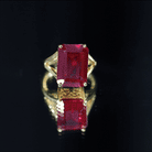 Certified Emerald Cut Lab Grown Ruby Engagement Ring with Split Shank