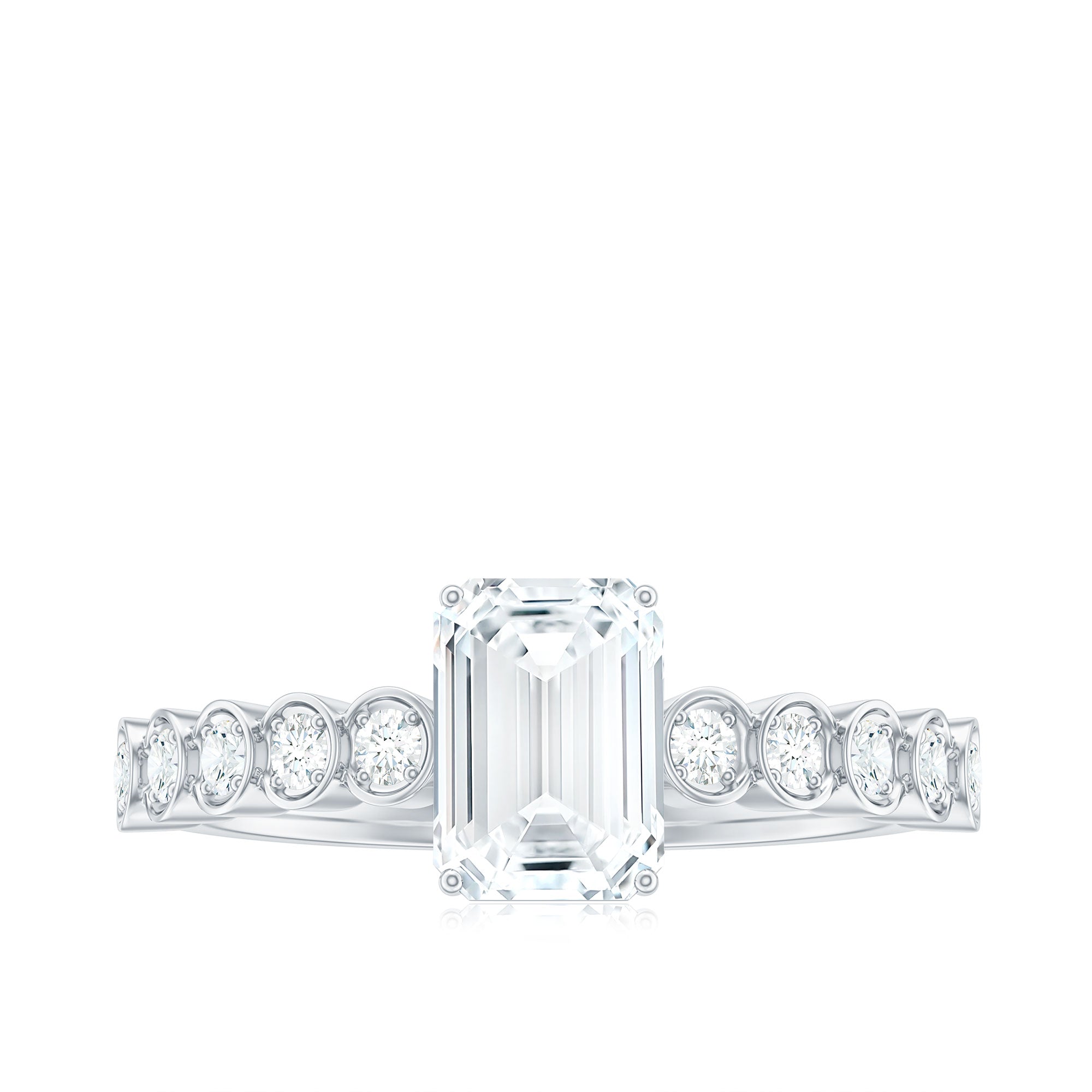 Certified Emerald Cut Moissanite Solitaire Engagement Ring with Side Stones