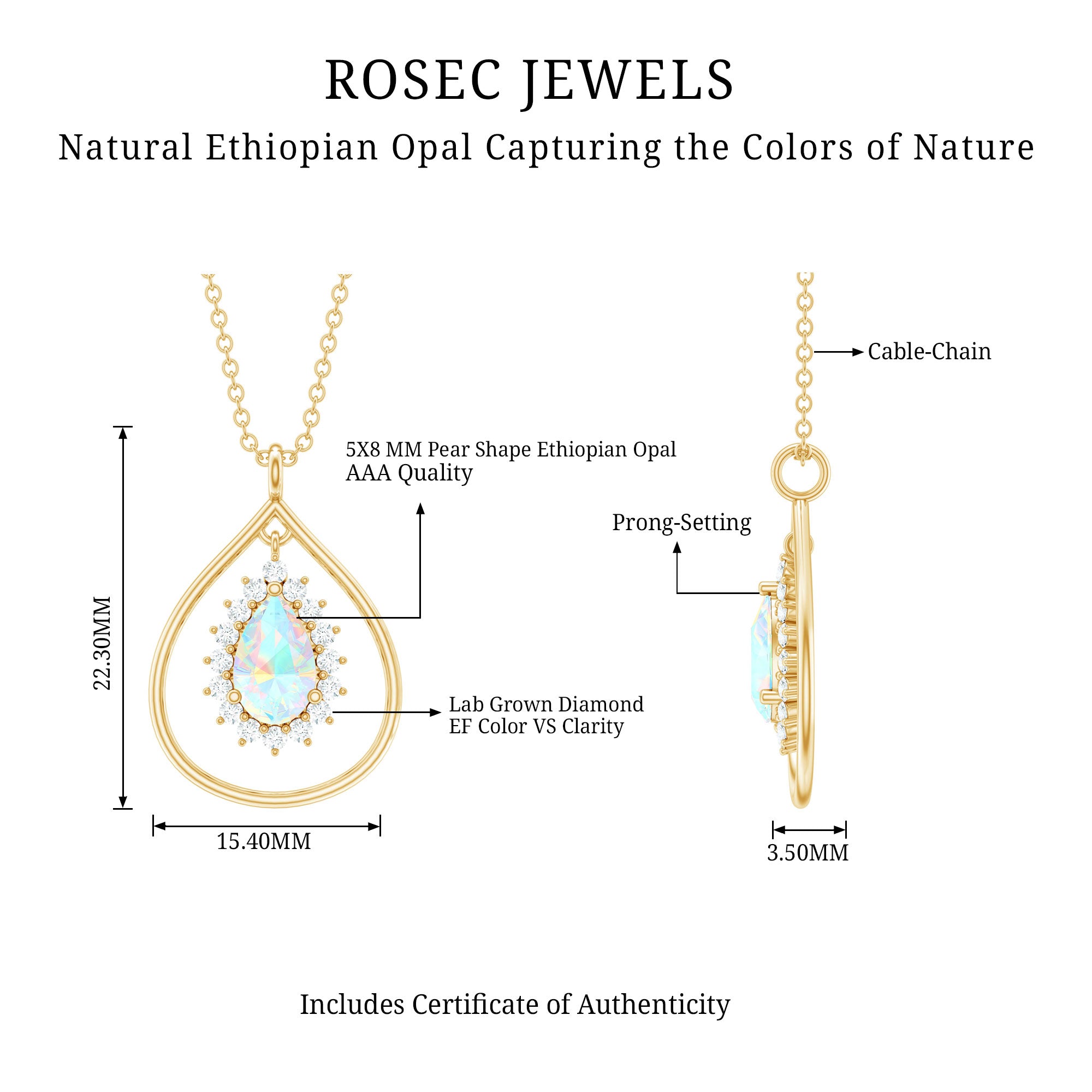 Certified Ethiopian Opal and Diamond Teardrop Pendant Necklace