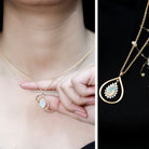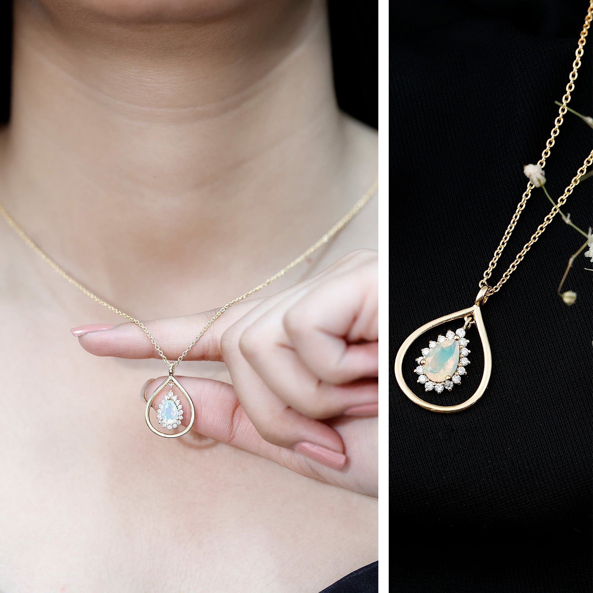 Soft, elegant, and full of meaning, this Ethiopian Opal Necklace is a piece that speaks straight to the heart. Handcrafted in 14k yellow gold plated silver, it features a stunning 5X8 MM pear-shaped Ethiopian Opal, known for its magical play of colors that shift beautifully with every movement. Set in safe prong setting, the opal is surrounded by a halo of sparkling round lab grown diamonds. Together, they sit within an open teardrop frame that hangs gracefully from a matching cable chain. The shape is elegant and timeless, giving the whole Teardrop Necklace a delicate, graceful look that is easy to wear every day or dress up for special moments. This Opal and Diamond Necklace is a beautiful way to celebrate anyone born in October, since Ethiopian Opal is the October birthstone. It makes a thoughtful birthday gift or a meaningful surprise for someone who loves jewelry with personality and charm. With its dreamy glow and subtle sparkle, it is perfect for marking personal milestones or simply bringing a little beauty into someone’s day. Whether you are buying it for yourself or gifting it to someone you love, this October Birthstone Necklace is the kind of piece that always feels special. It tells a story, holds emotions, and adds a soft, elegant touch to any outfit, making it a favorite jewelry piece.
