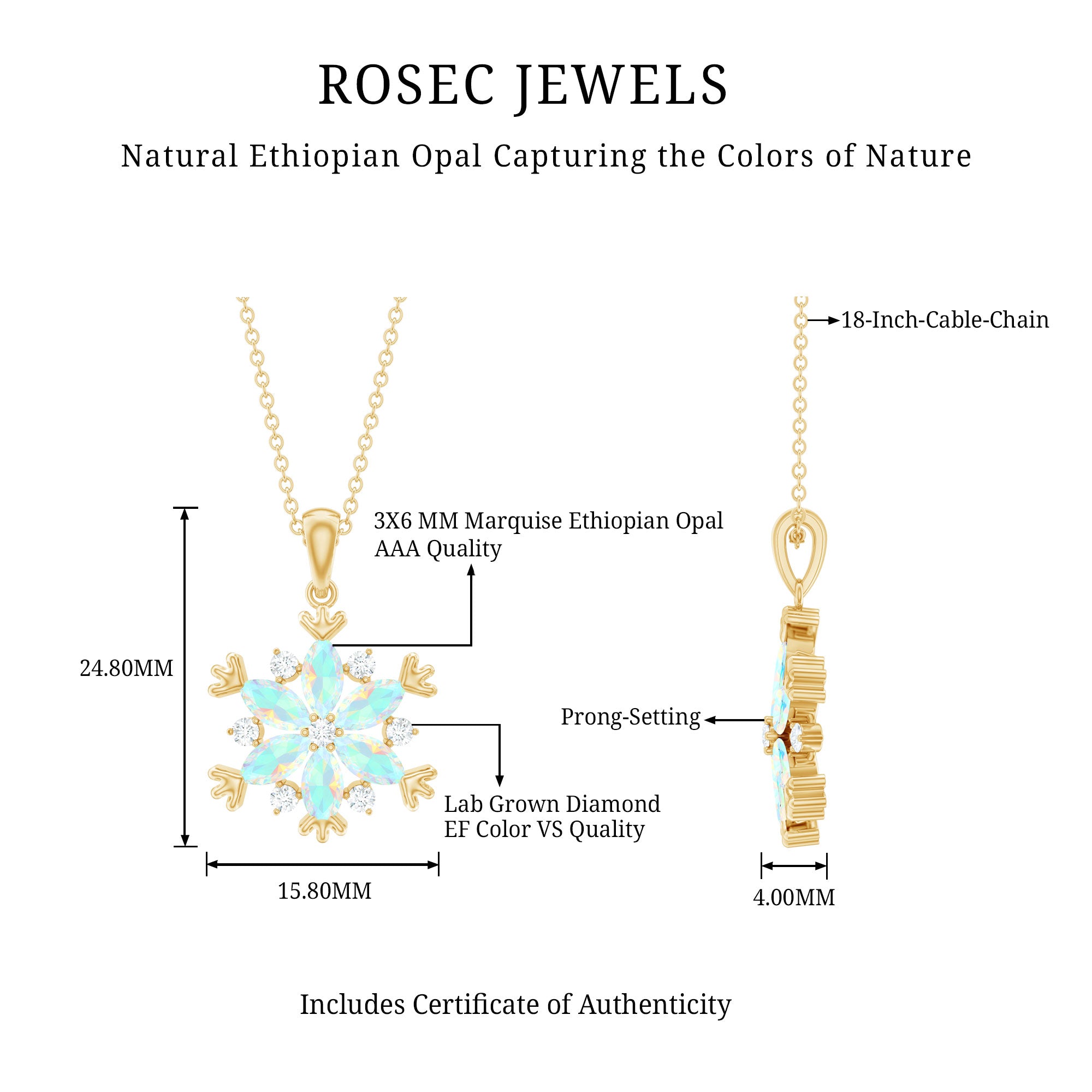 Certified Ethiopian Opal Diamond Snowflake Necklace for Christmas