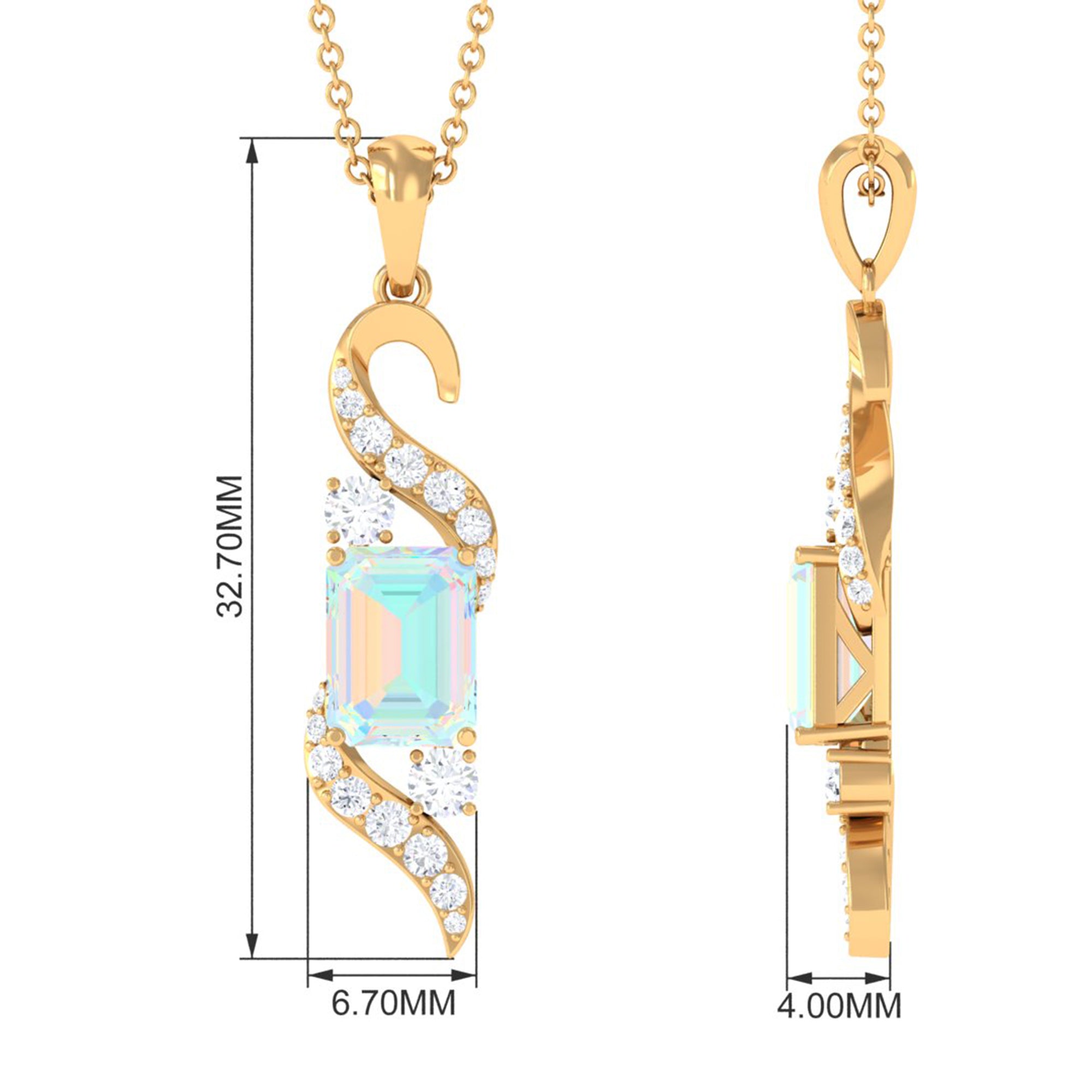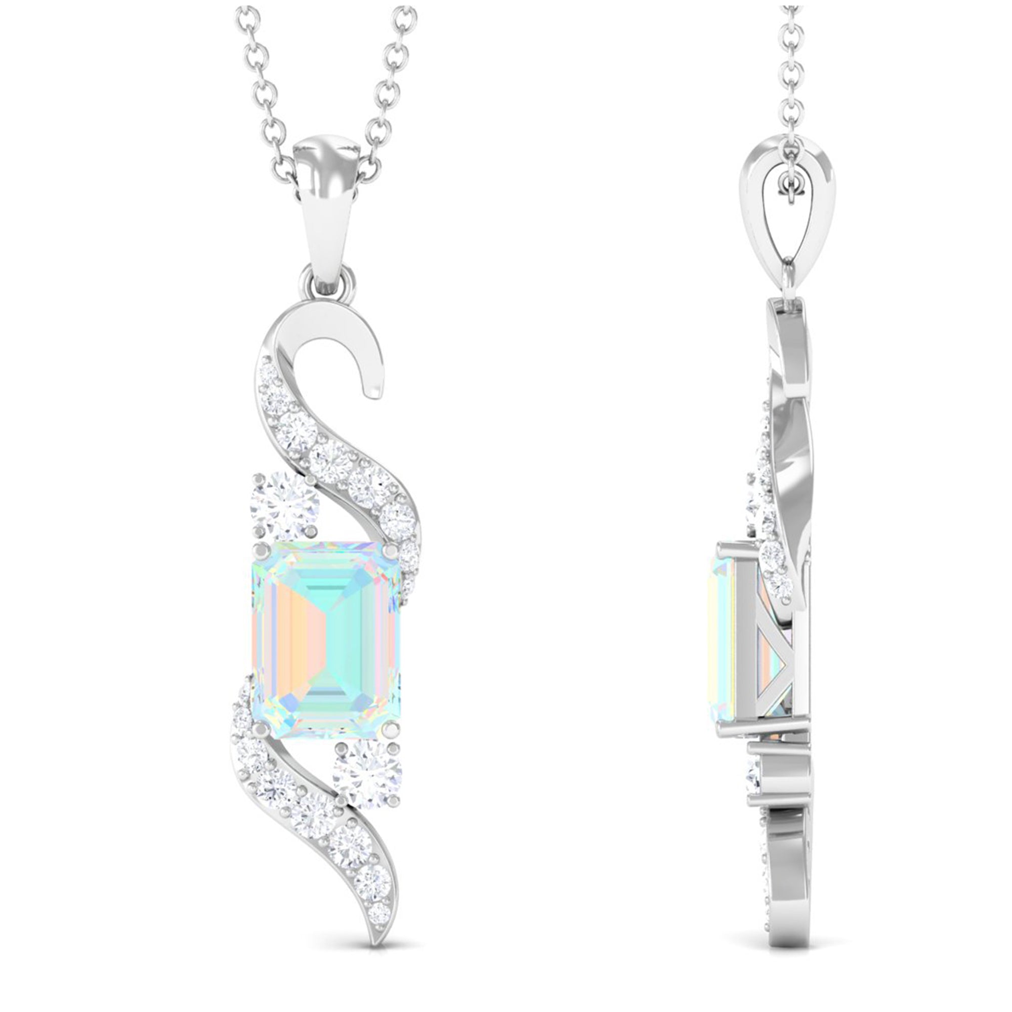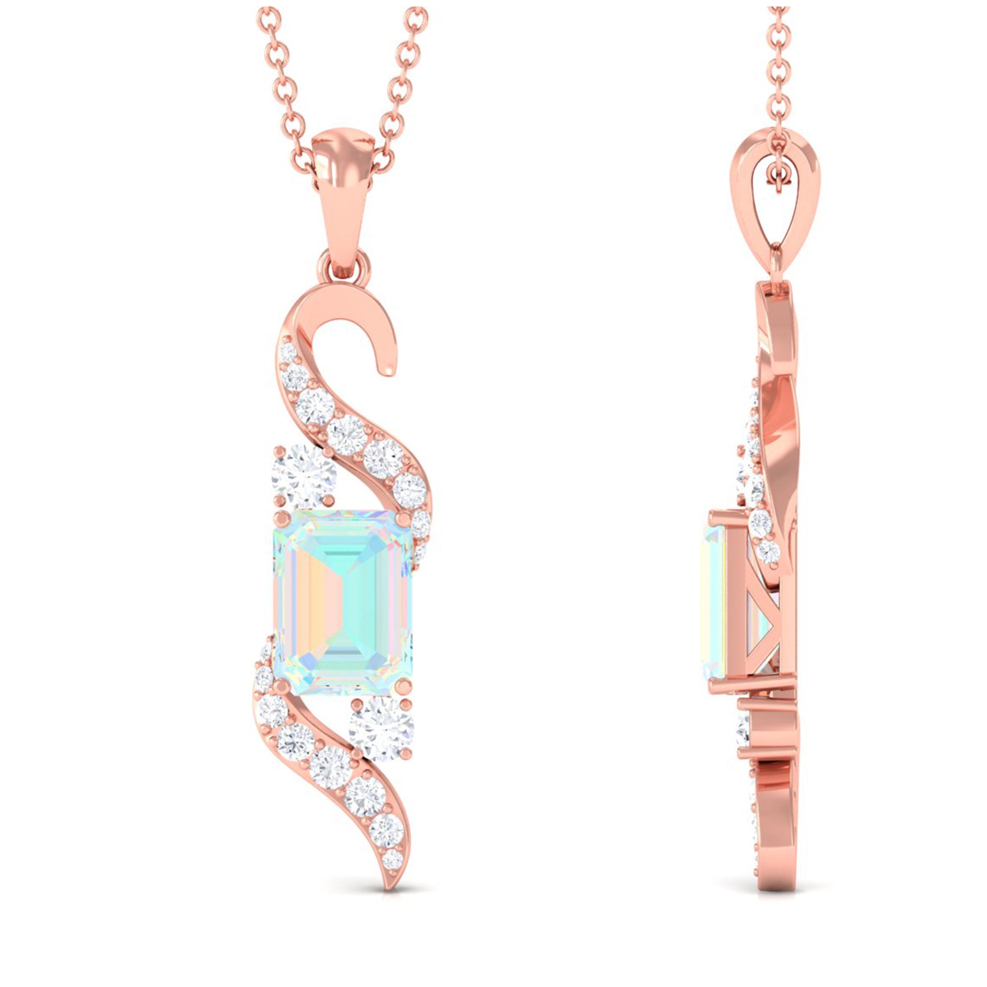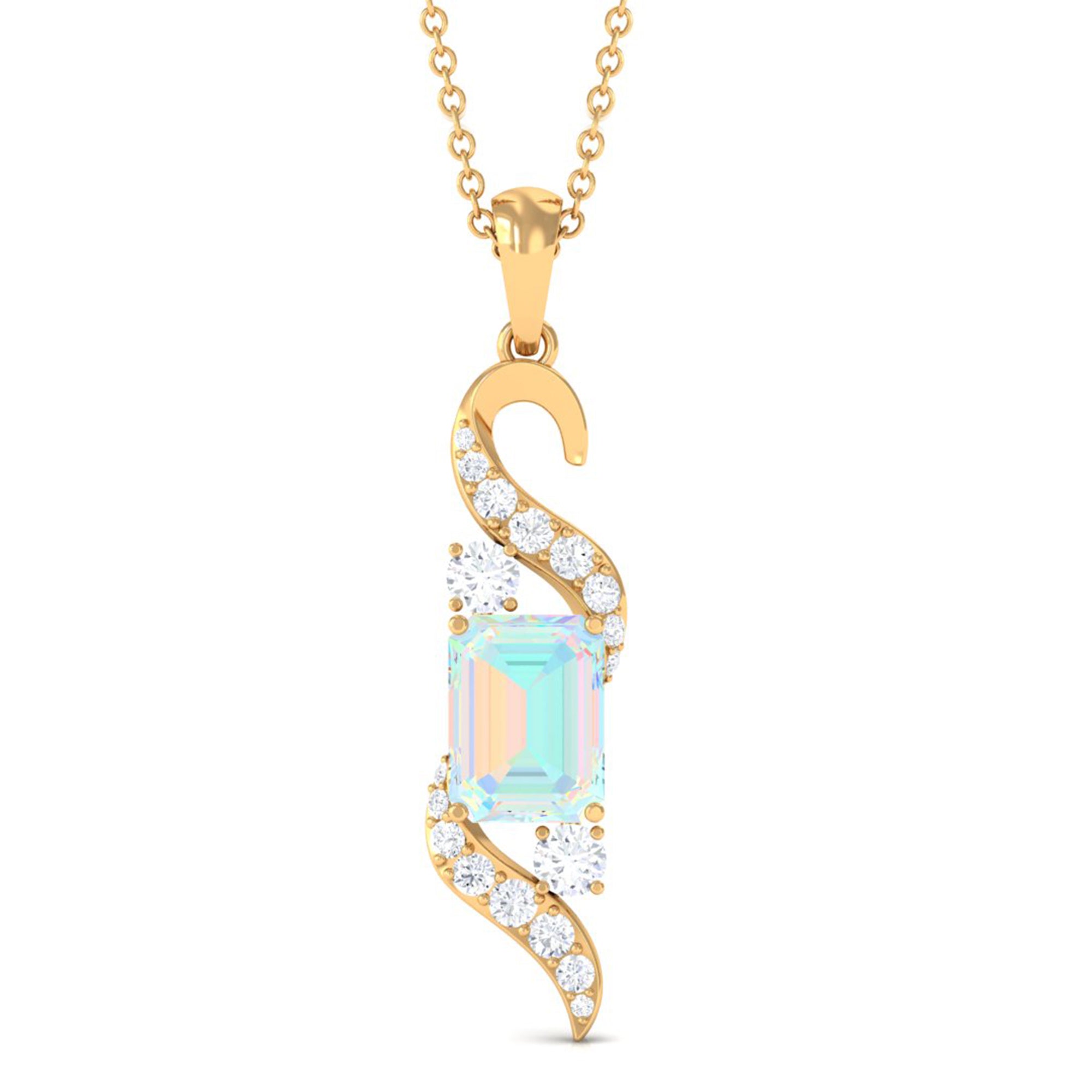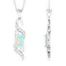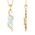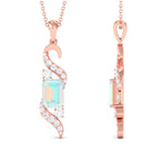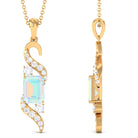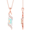 Adorn your neckline with this amazing and elegant Ethiopian Opal Pendant. The beautiful Emerald Cut Ethiopian Opal in Prong Setting with Diamond studded gives this Pendant a new definition to your style. Wear this beautiful Opal Necklace while dressed up or down, and it also makes a beautiful present for October born individuals.