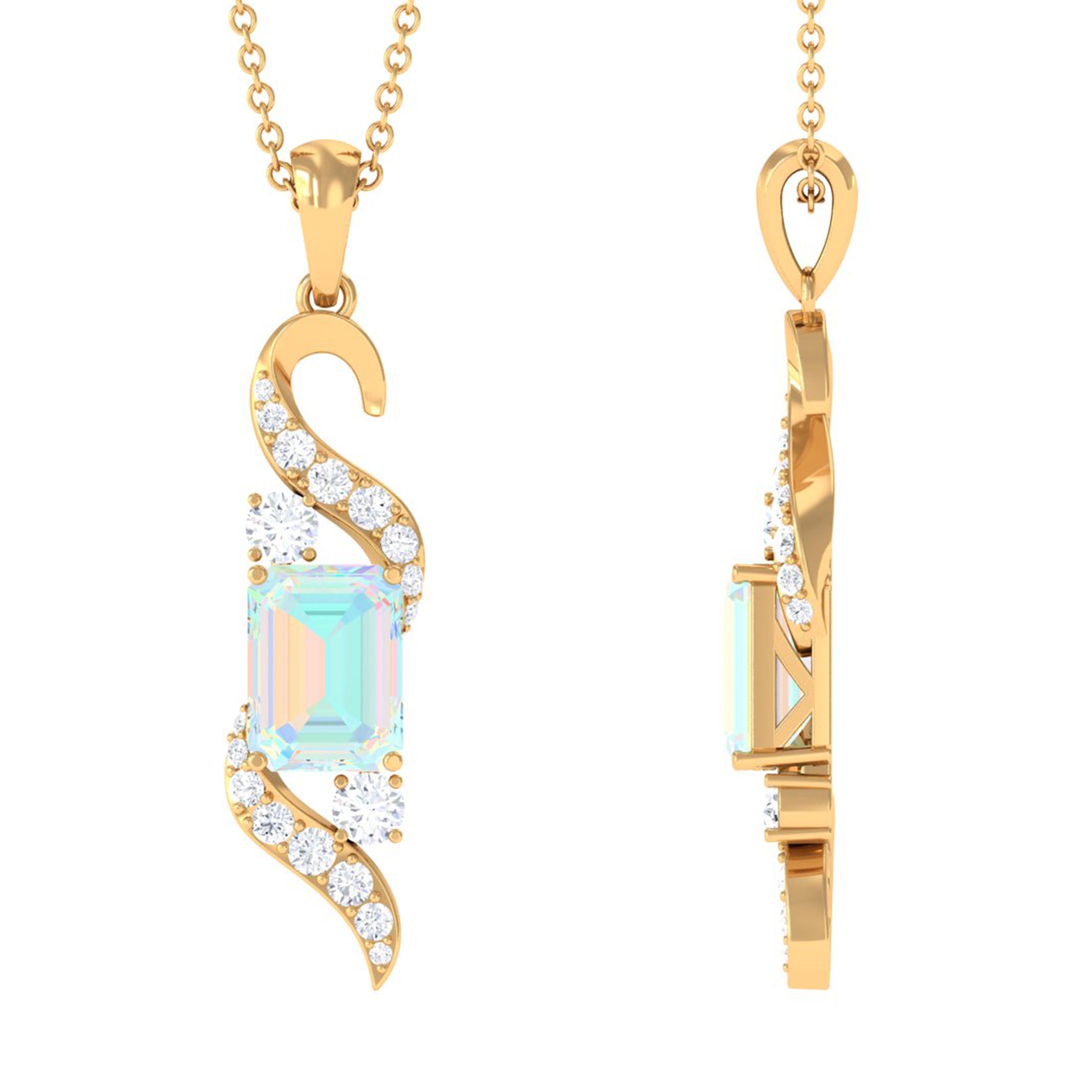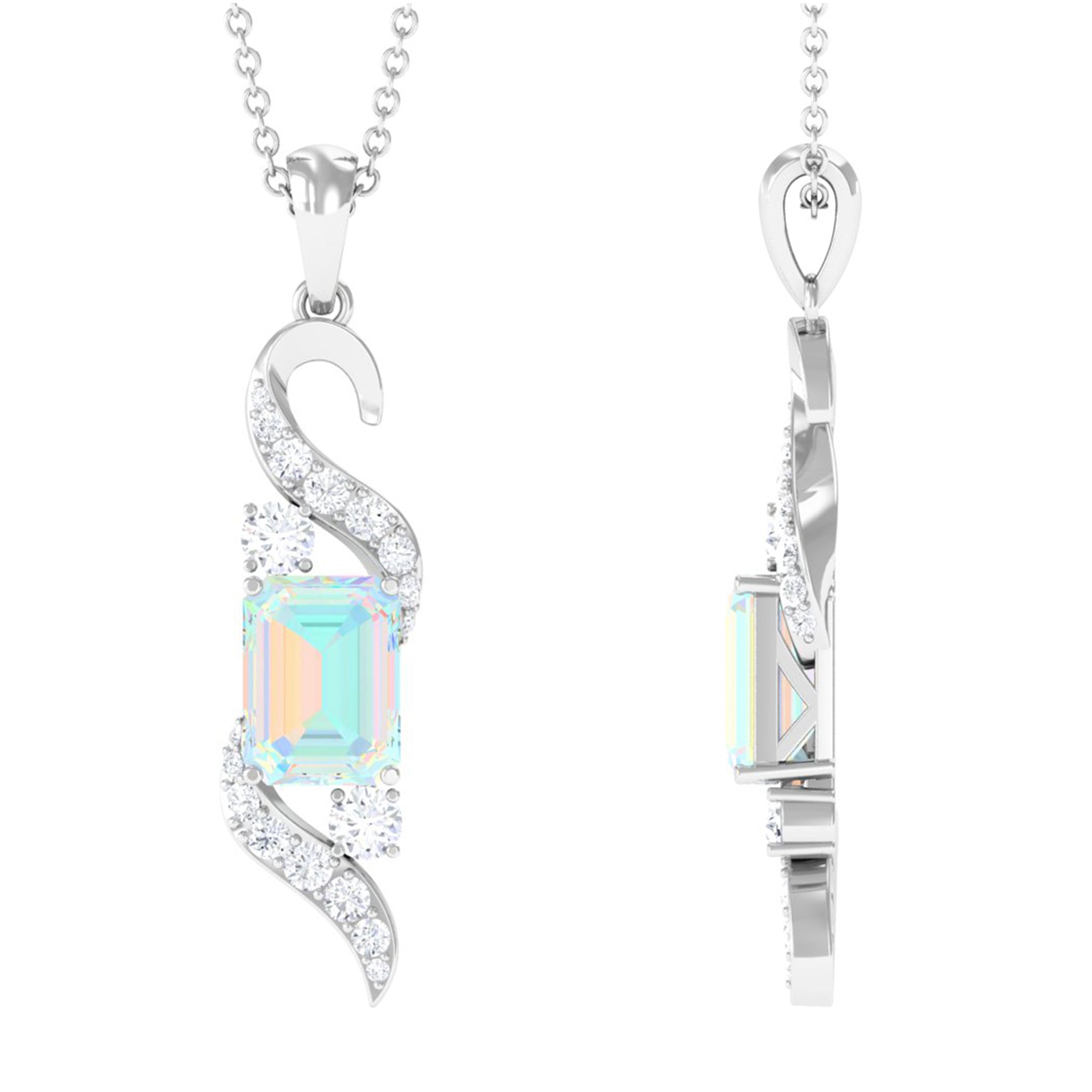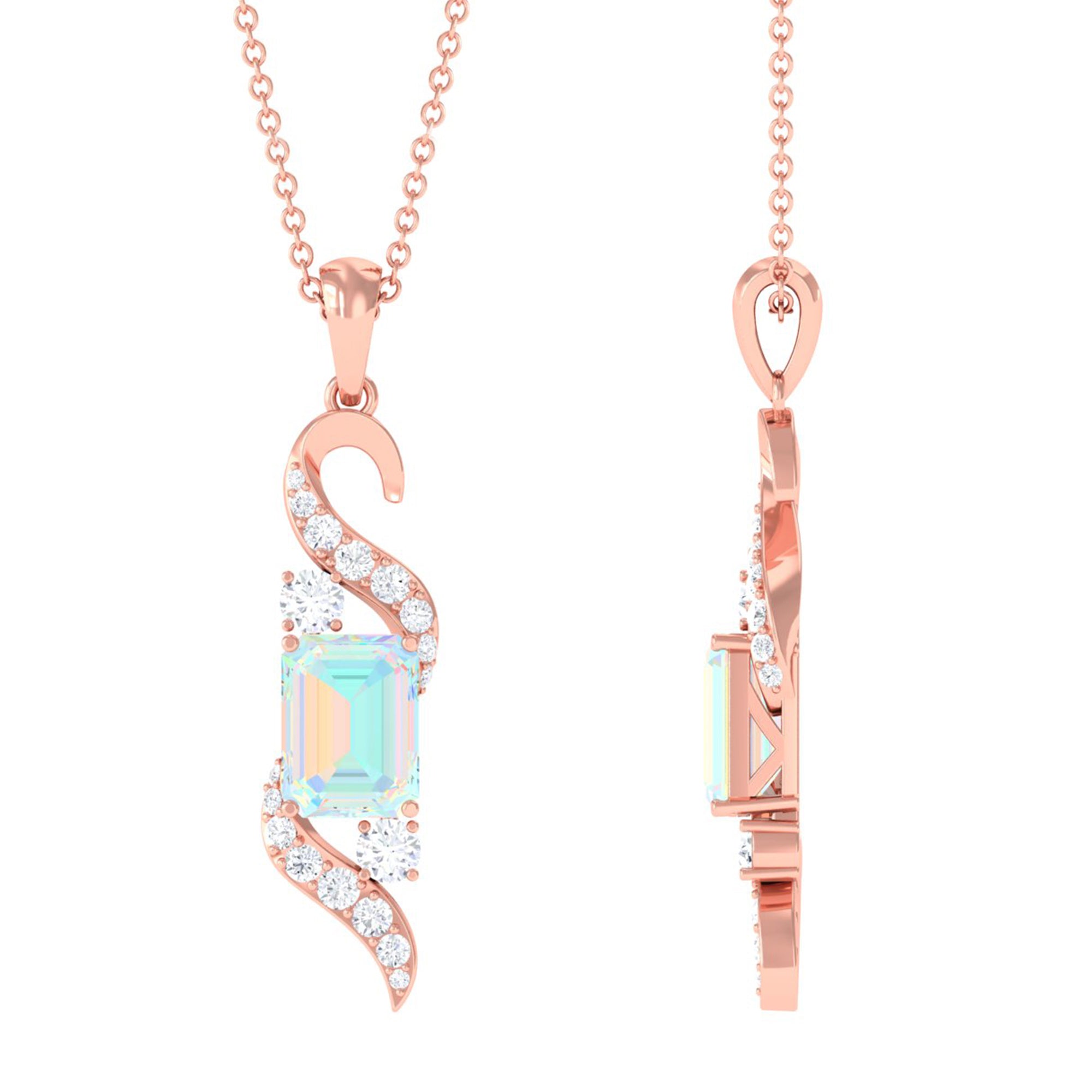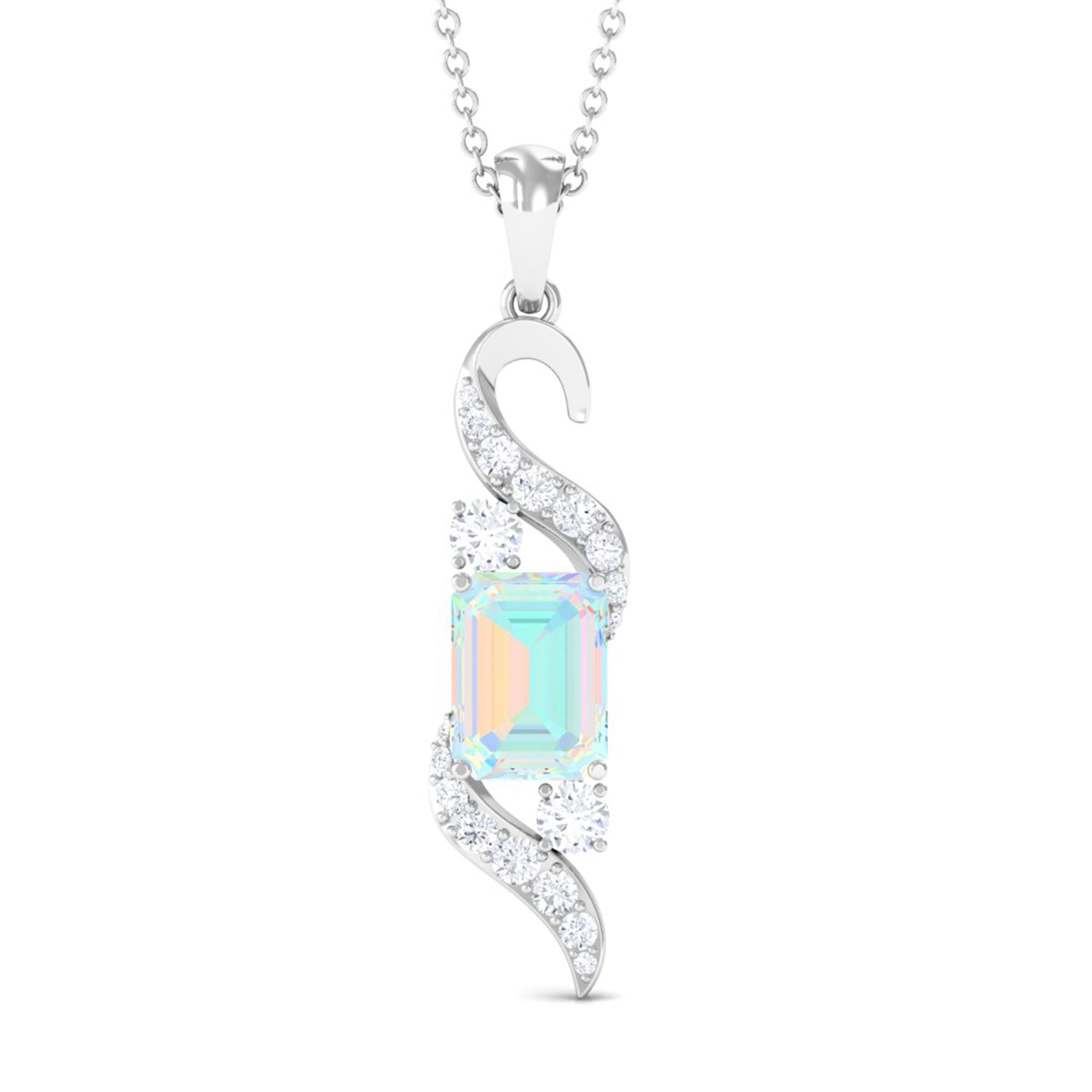 Adorn your neckline with this amazing and elegant Ethiopian Opal Pendant. The beautiful Emerald Cut Ethiopian Opal in Prong Setting with Diamond studded gives this Pendant a new definition to your style. Wear this beautiful Opal Necklace while dressed up or down, and it also makes a beautiful present for October born individuals.
