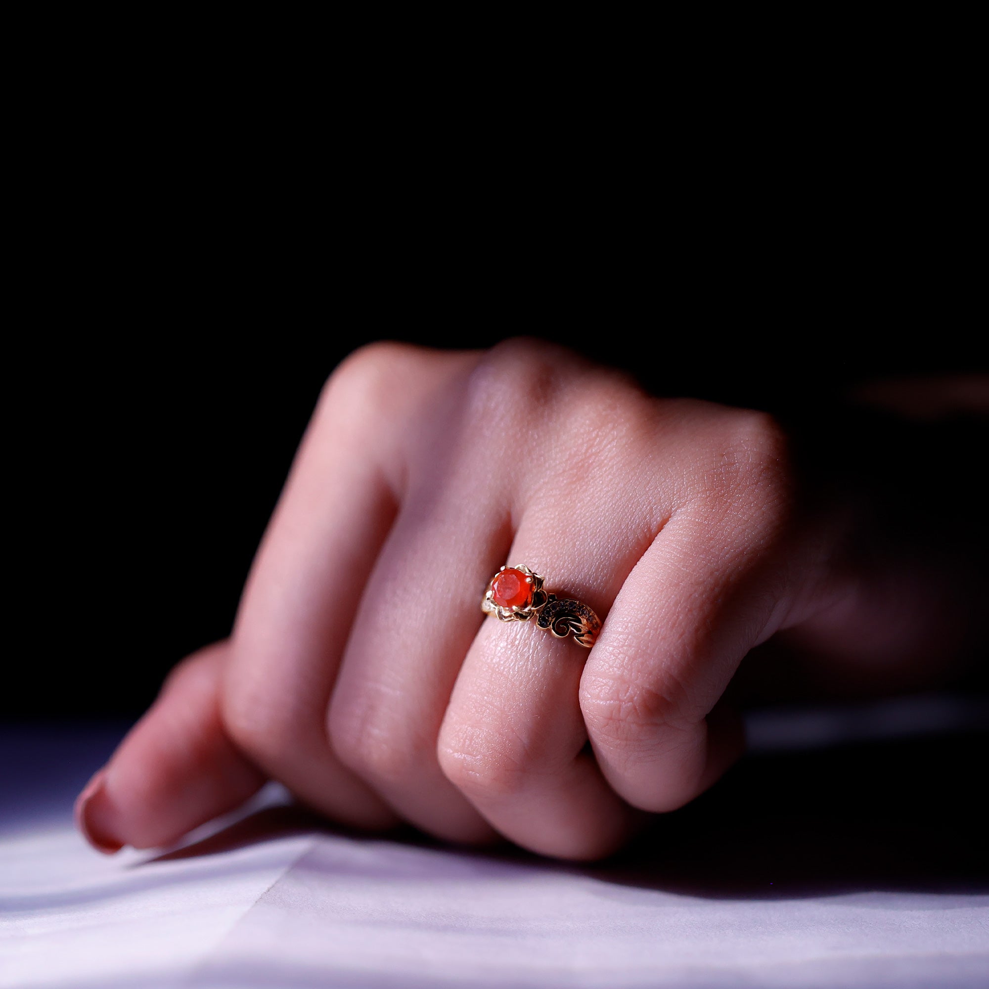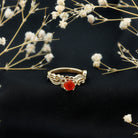 As delicate as a petal and as meaningful as a promise, this Fire Opal Engagement Ring brings the beauty of nature into a moment she will never forget. Curated from yellow gold plated silver, this Floral Engagement Ring is centered with a glowing 4 MM round cut Fire Opal, set delicately in prongs. Nestled within a sculpted rose flower motif, the opal radiates a vibrant orange hue that shifts beautifully with every flicker of light. Along the band, leafy detailing brings the design to life, set with EF color VS clarity lab grown diamonds that add a soft sparkle. These subtle diamond accents balance the fire of the center stone, grounding the boldness with grace. Perfect for someone drawn to natural beauty, meaningful symbolism, and romantic designs, this Fire Opal and Diamond Engagement Ring offers something truly different. The rose, a classic emblem of love, paired with the energetic fire opal, creates a piece that speaks to adventurous hearts and deep emotional connections. A beautiful blend of nature inspiration and elegant craftsmanship, this Rose Flower Ring does not follow trends, it tells a story, blooming with every glance.