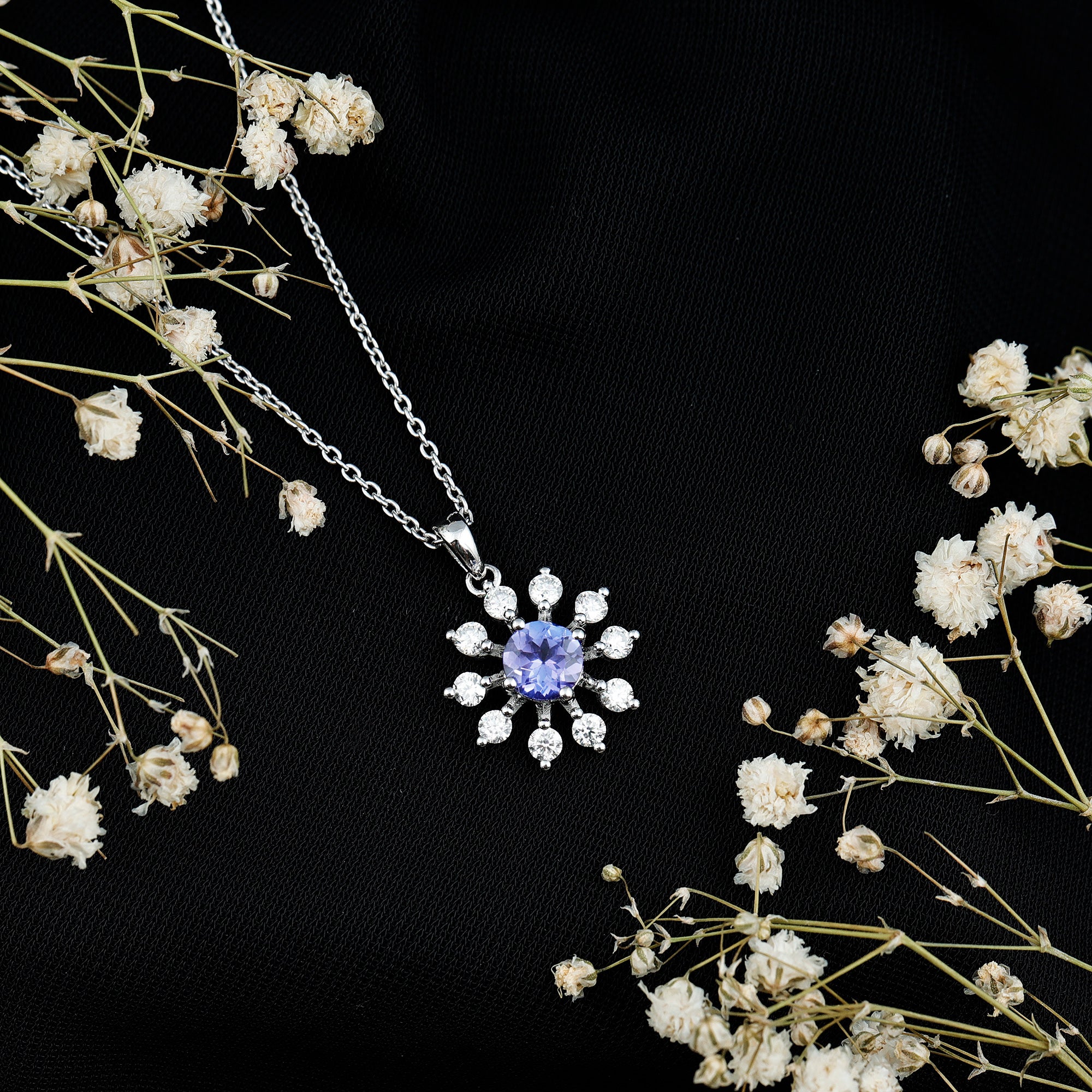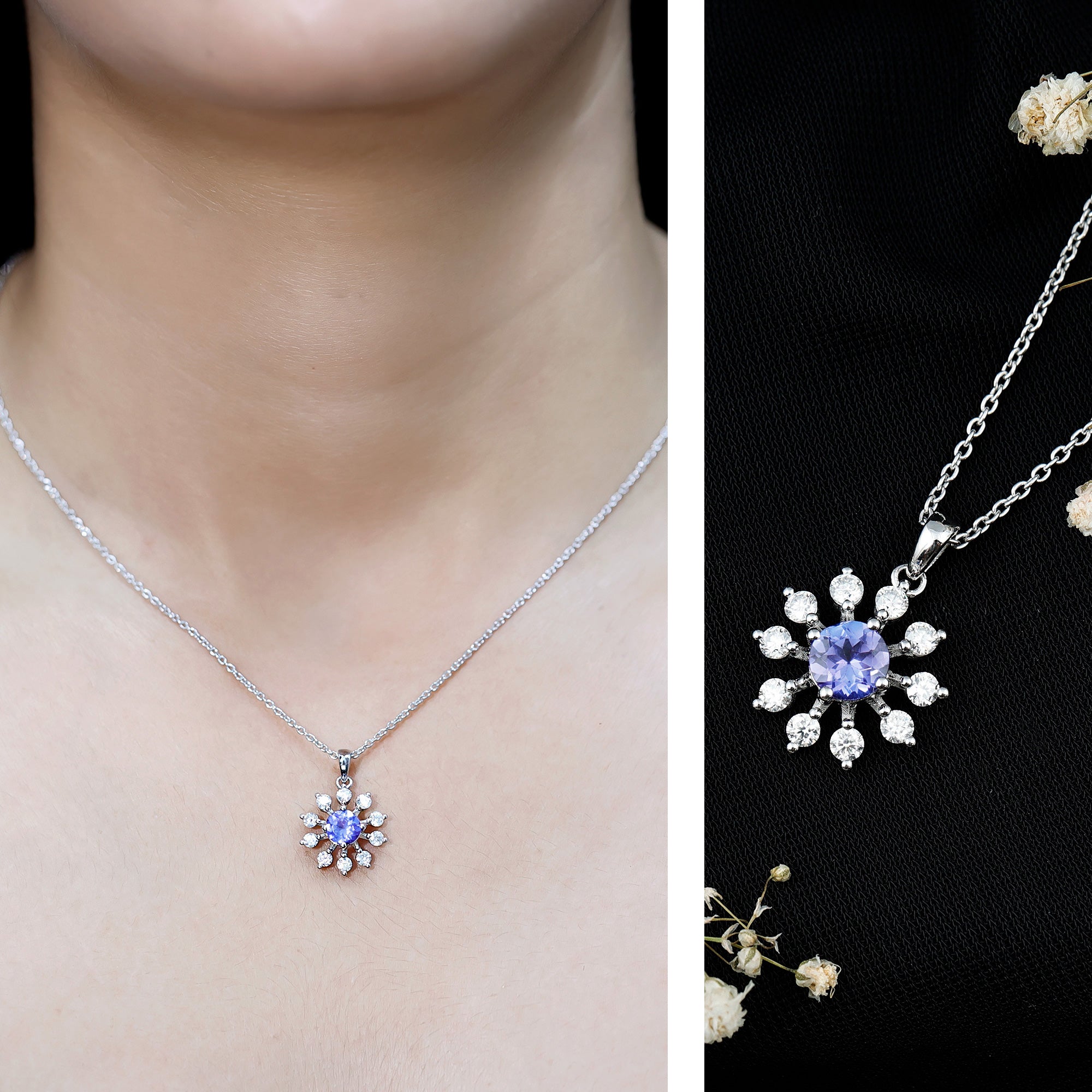 Certified Genuine Tanzanite Snowflake Necklace with Silver Chain