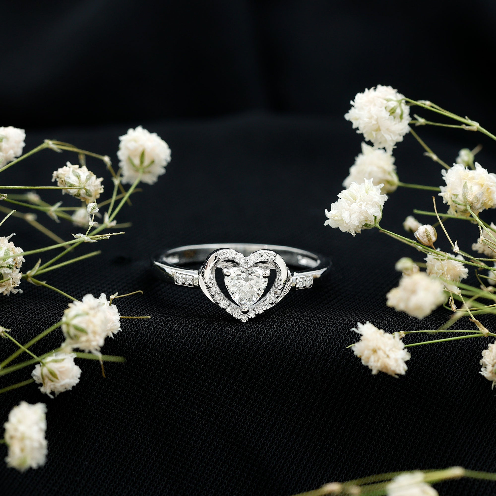 Get ready to say YES to forever with this Heart Engagement Ring, it is ready to seal the deal in the most stunning way possible. This Proposal Ring is a stunning symbol of everlasting love, embellished with a 5 MM heart shape diamond (lab grown) in the center set in prong setting and sparkles with unmatched brilliance. The diamond halo is surrounding the center stone, making it look bigger. The band is further enhanced with dainty stones, adding an extra layer of shimmer. This Diamond Ring for Women comes with a certificate of authenticity and a signature jewelry box so, you can store your ring safely when not in use. With customization options available, you can make this Diamond Heart Ring truly one-of-a-kind.