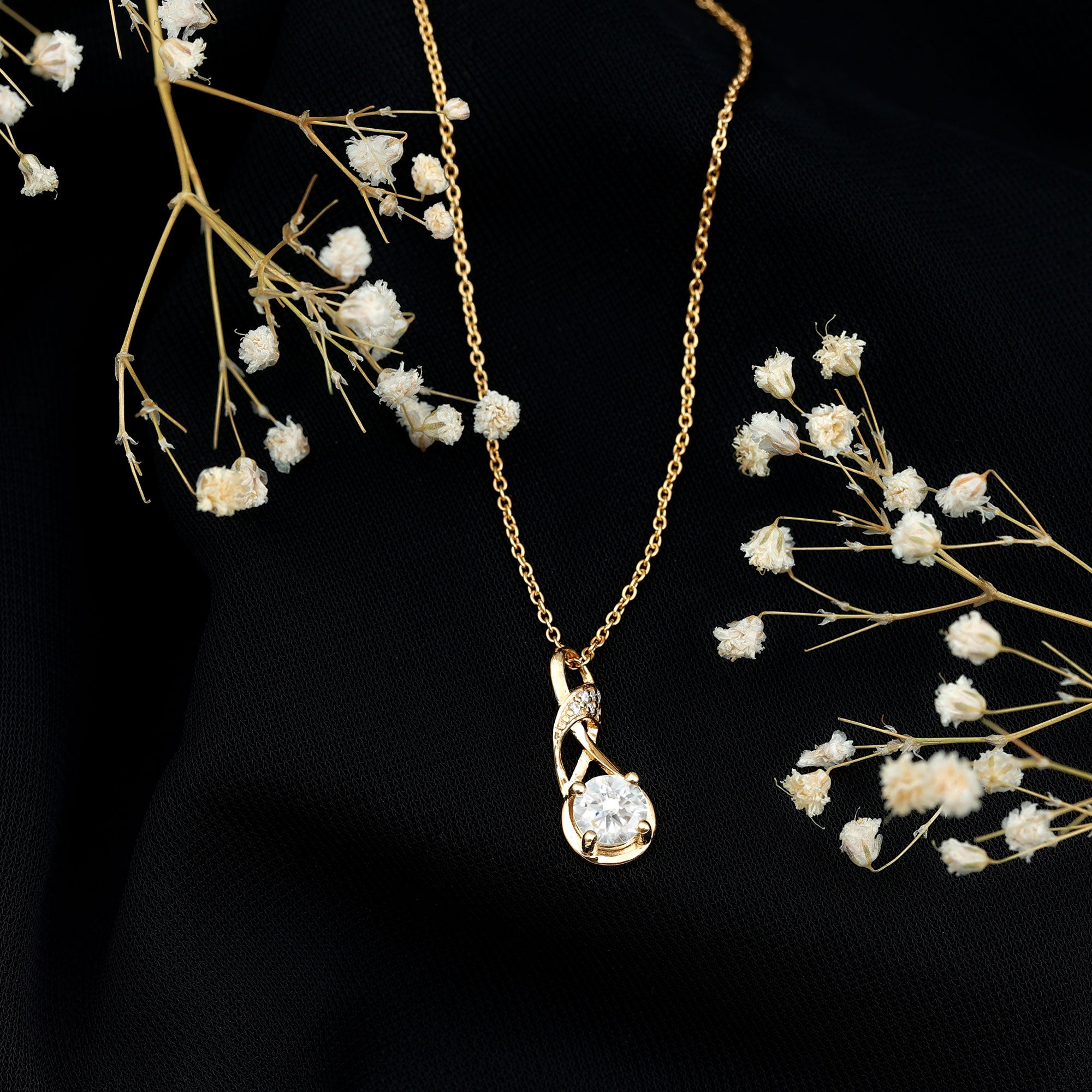 Make yourself the talk of the town with this Diamond Infinity Necklace. Handcrafted with care, this Simple Pendant features a sleek, vertical infinity sign, skillfully designed with high-Quality metal. A 6 MM round cut diamond (lab grown) is set in prong setting at the bottom of the Infinity Sign Necklace with a unique curved pattern decorated with smaller gemstones. Our Diamond Pendant Necklace is a symbol of forever love, perfect for gifting on special occasions such as Valentines Day, Anniversaries, Birthdays, New Year, Christmas, and many more.