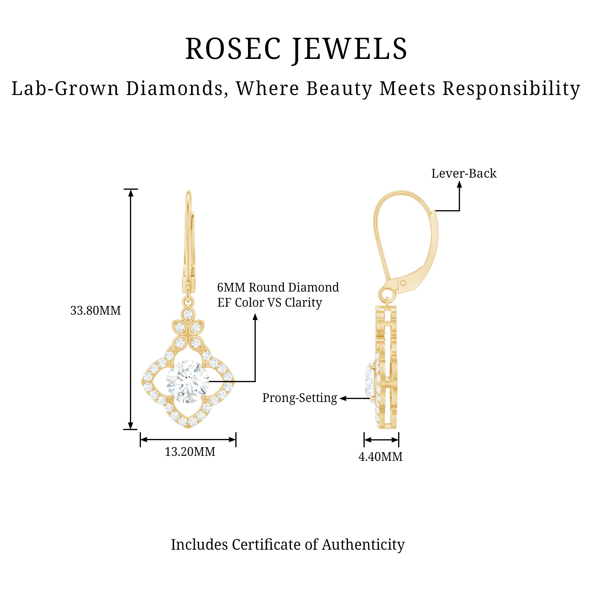 Certified Lab 6MM Round Diamond Flower Drop Earrings