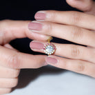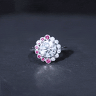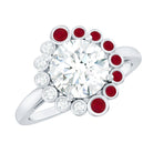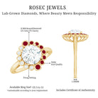 Rubies are red, diamonds are bright, and this Statement Engagement Ring is the perfect way to make her heart take flight. We designed this 2 CT Diamond Engagement Ring for the woman who loves to stand out. Featuring a dazzling 8 MM round cut diamond (EF-VS quality) in the center in prong setting. Surrounding the focal stone is a unique halo with half side red rubies and the other half adorned with diamonds, all the stones are set in bezel setting. If she loves unique designs, bold colors, and unmatched sparkle, this Diamond Ring with Ruby is the perfect choice. Also, the diamonds in this Halo Ring are lab made, providing you the same brilliance, clarity, and quality as mined ones, but at a more pocket-friendly pricing.