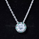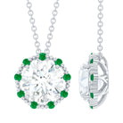 Certified Lab 8 MM Round Diamond Halo Necklace With Emerald