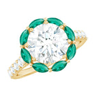 Why settle for an ordinary Halo Diamond Ring when you can have this masterpiece, full of contrast and modern charm - at its center sits a 9 MM round shaped EF-VS quality diamond (lab grown) held in secure 8-prong setting. Highlighting the center stone is a classic halo, curated with marquise shaped lab made emerald stones and diamond encrusted band, creating a contrast that is sure to catch everyones eye. What makes this Diamond Cocktail Ring unique is its versatility - whether you are looking for an Engagement Ring that stands out, a Proposal Ring to pop the question in style, or just a present for your lady love to celebrate your milestones, this piece is the perfect choice. Also, a diamond is an April birthstone, symbolizing everlasting love, strength, and wealth, making this Round Engagement Ring a meaningful and thoughtful accessory in your jewelry collection.