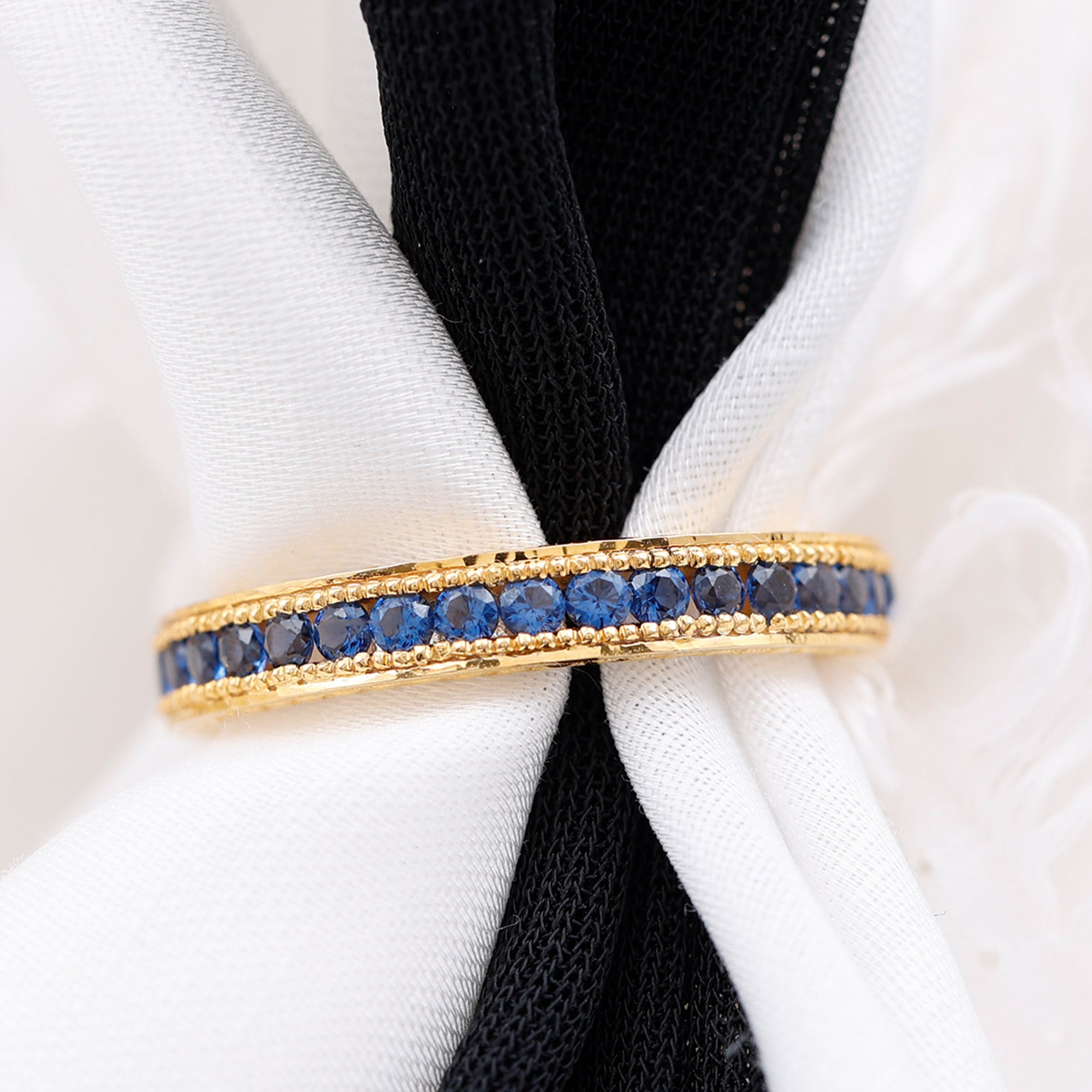 Certified Lab Created Blue Sapphire Full Eternity Ring in Channel Setting