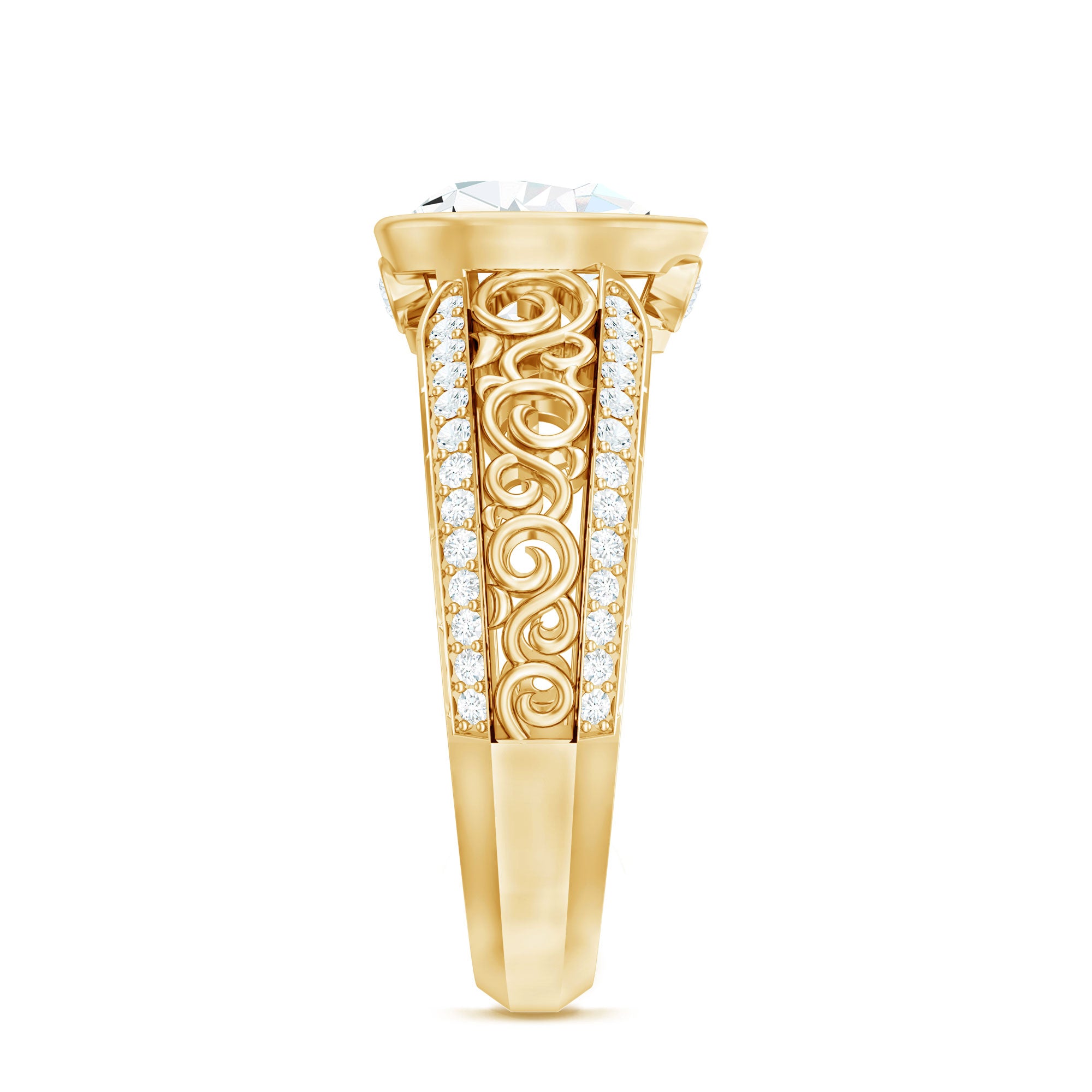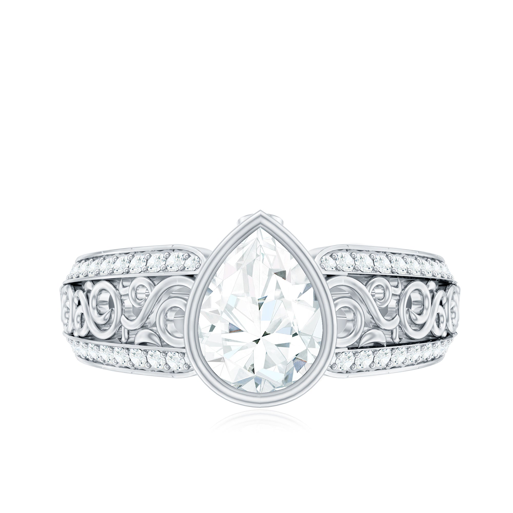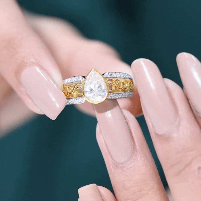 Express the beauty with the intricate features of this breathtaking Lab Grown Diamond Engagement Ring, a timeless representation of your love. Radiating brilliant light, this Solitaire Engagement Ring showcases a 6X8 MM Pear Shape Lab Created Diamond, securely held in Bezel Setting. The distinctive filigree design on the band, adorned with delicate round cut stones, merges classic and romantic elements in this vintage-inspired piece. This Art Deco Engagement Ring sparkles from every angle, making it easy to fall in love with its exquisitely detailed band. As a classic choice, this Lab Created Diamond Teardrop Ring is ideal for any occasion, whether it is an Anniversary, Wedding, Engagement, Valentine's Day, Birthday, New Year, Christmas, Graduation, or Thanksgiving. Our skilled artisans have meticulously crafted this Pear Shaped Engagement Ring using EF-VS Quality Lab Diamonds, ensuring you wear nothing but exceptional quality.