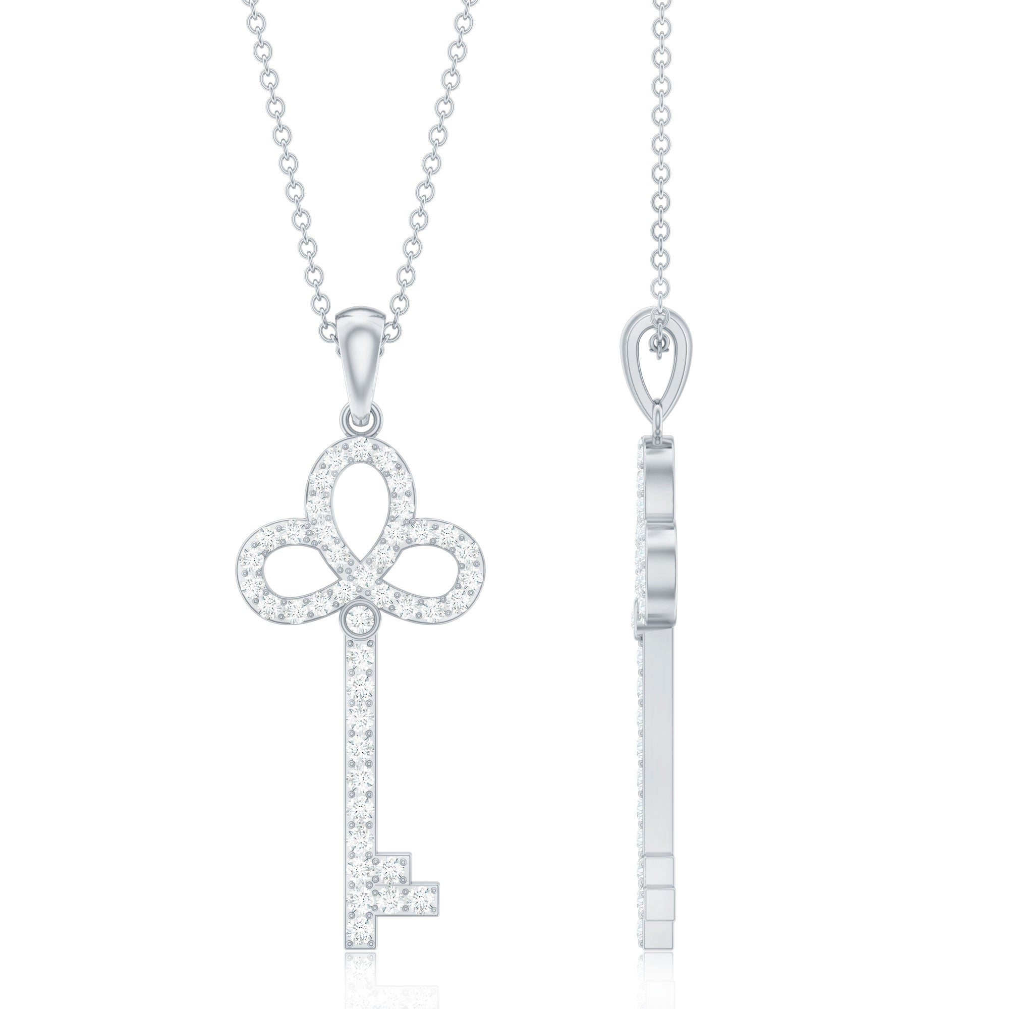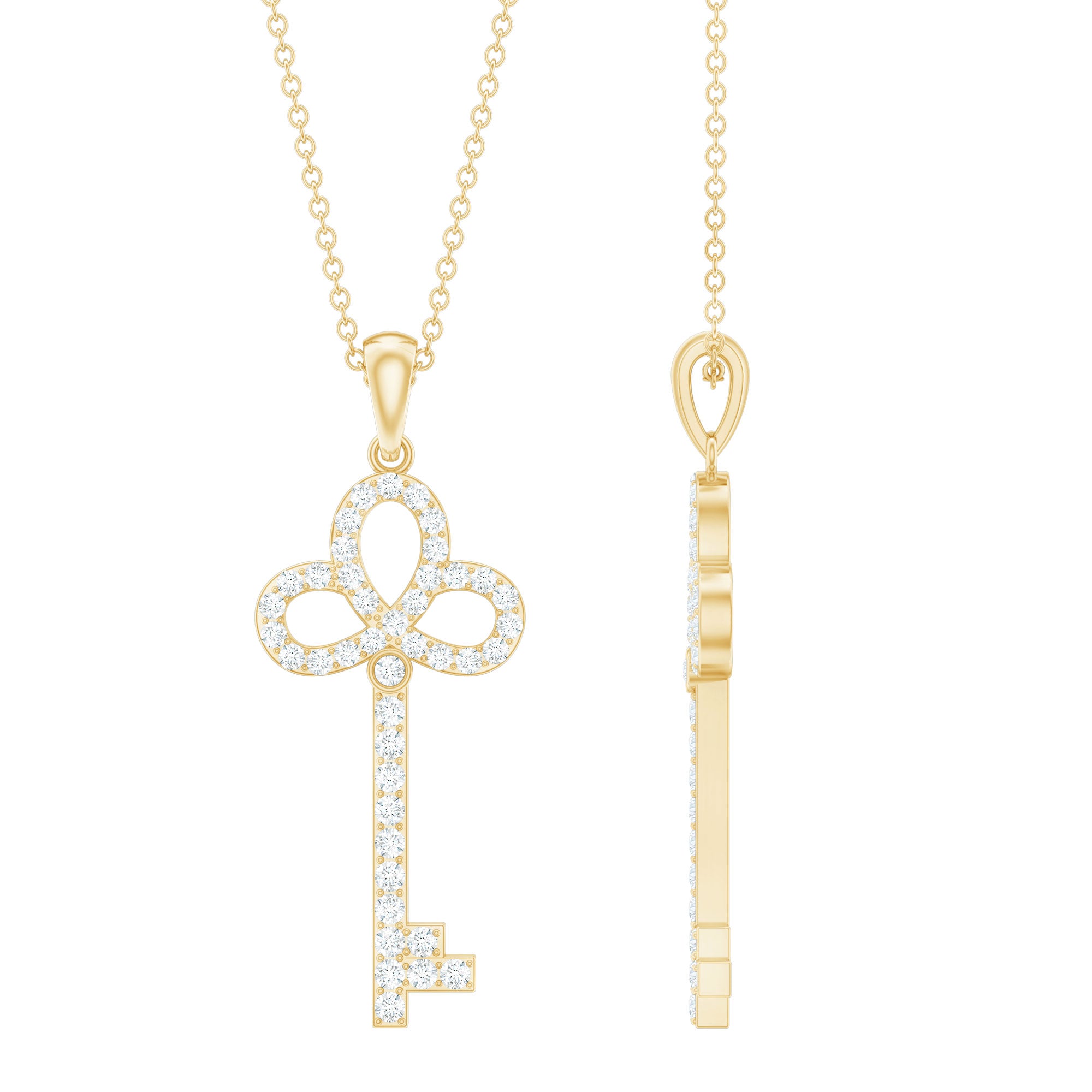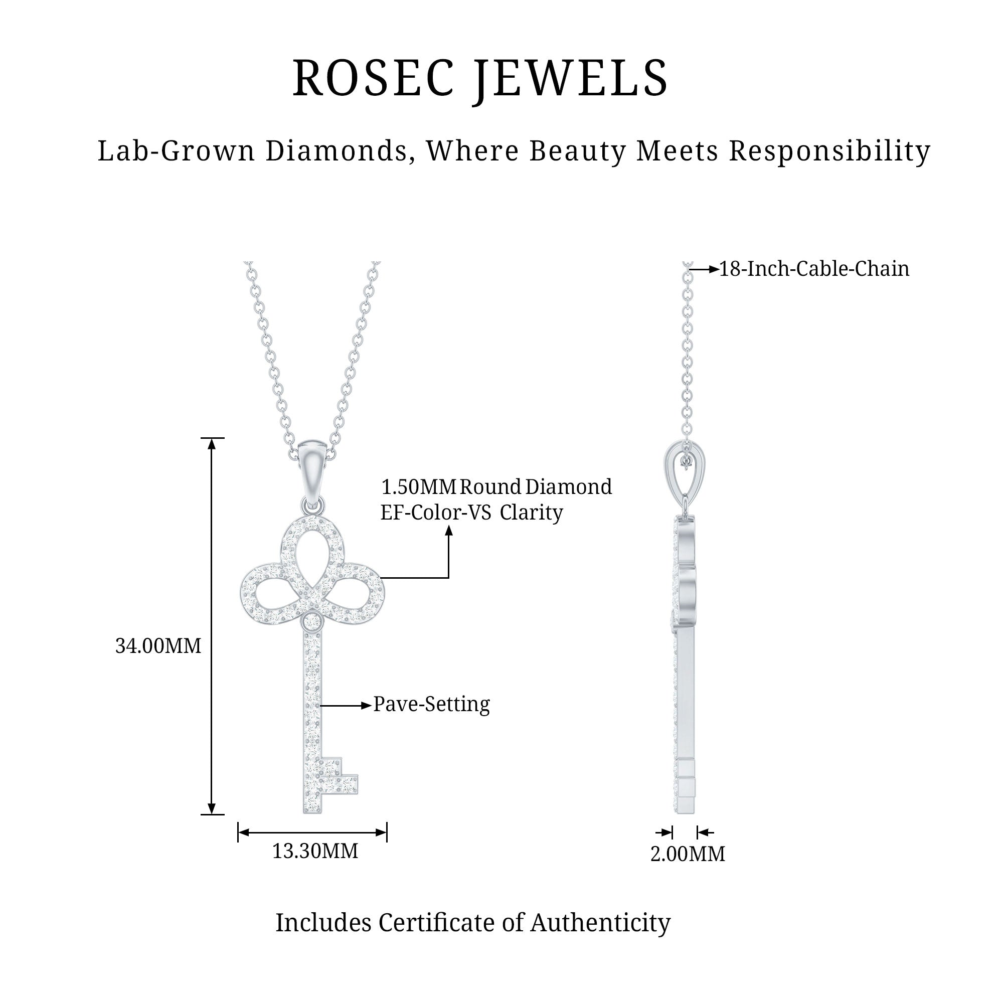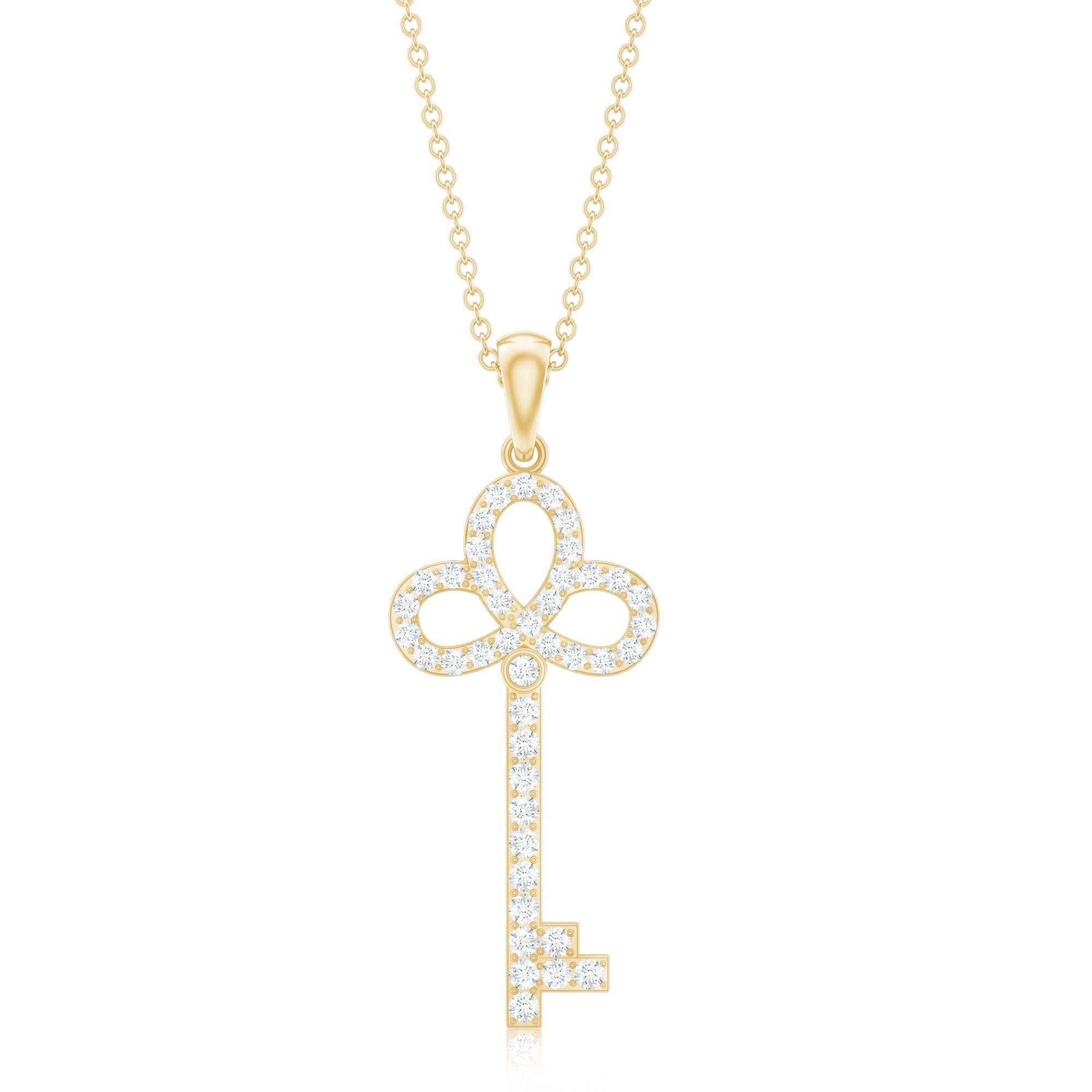 Unlock elegance with this adorable Key Pendant, a timeless piece that carries meaning and sparkle in every detail. Designed for women who love delicate jewelry with a deeper touch, this Fine Necklace features a beautifully crafted Key Shape Pendant that symbolizes new beginnings, dreams, and possibilities. The sparkling Lab Grown Diamond stones are carefully studded over the Key design to add a subtle yet stunning shine. Made with EF-VS Quality stones, each Lab Diamond reflects clarity and brilliance while being an ethical and thoughtful choice. The key design feels modern yet classic, simple enough for everyday wear, but special enough to dress up for meaningful occasions. Whether it is a gift for someone starting a new journey or a personal reminder of strength and growth, this Lab Diamond Necklace holds more than just beauty. It is easy to style and comes with a delicate chain for a complete look. This Key Charm Necklace sits perfectly at the neckline and adds just the right amount of sparkle. Beautifully packaged in a jewelry box, this Diamond Key Pendant (Lab Created) is ready to gift or keep as your new go-to piece. Elegant, meaningful, and full of charm, this Lab Grown Diamond Pendant is a symbol of what lies ahead.