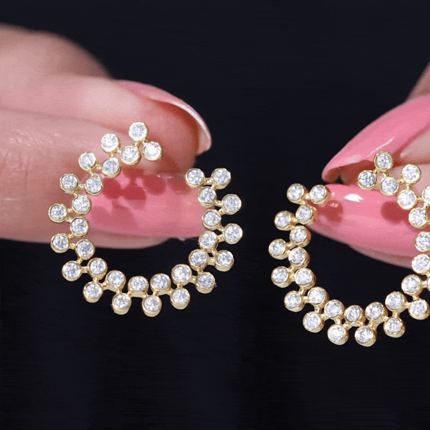 Discover the perfect balance of timeless beauty and modern flair with these exquisite Diamond Circle Earrings, crafted with care and adorned with round cut lab grown diamonds in a captivating scatter style. Each lab made diamond is bezel set to ensure maximum brilliance and perfect security. Designed for those who love understated luxury, these Circle Stud Earrings are perfect for cocktail parties, wedding celebrations, formal dinners, or adding sparkle to your everyday wardrobe. The contemporary yet classic design makes these Lab Grown Diamond Stud Earrings an ideal gift for brides-to-be, anniversaries, birthdays, or special moments that deserve something truly memorable. These Open Circle Earrings features secure screw back closures, offering both comfort and confidence with every wear. Ethically crafted using lab created diamonds, they deliver not just beauty, but also a commitment to conscious luxury, making them a thoughtful choice for the modern woman. To elevate your gifting experience, these Designer Diamond Earrings come beautifully packaged in a premium jewelry box.