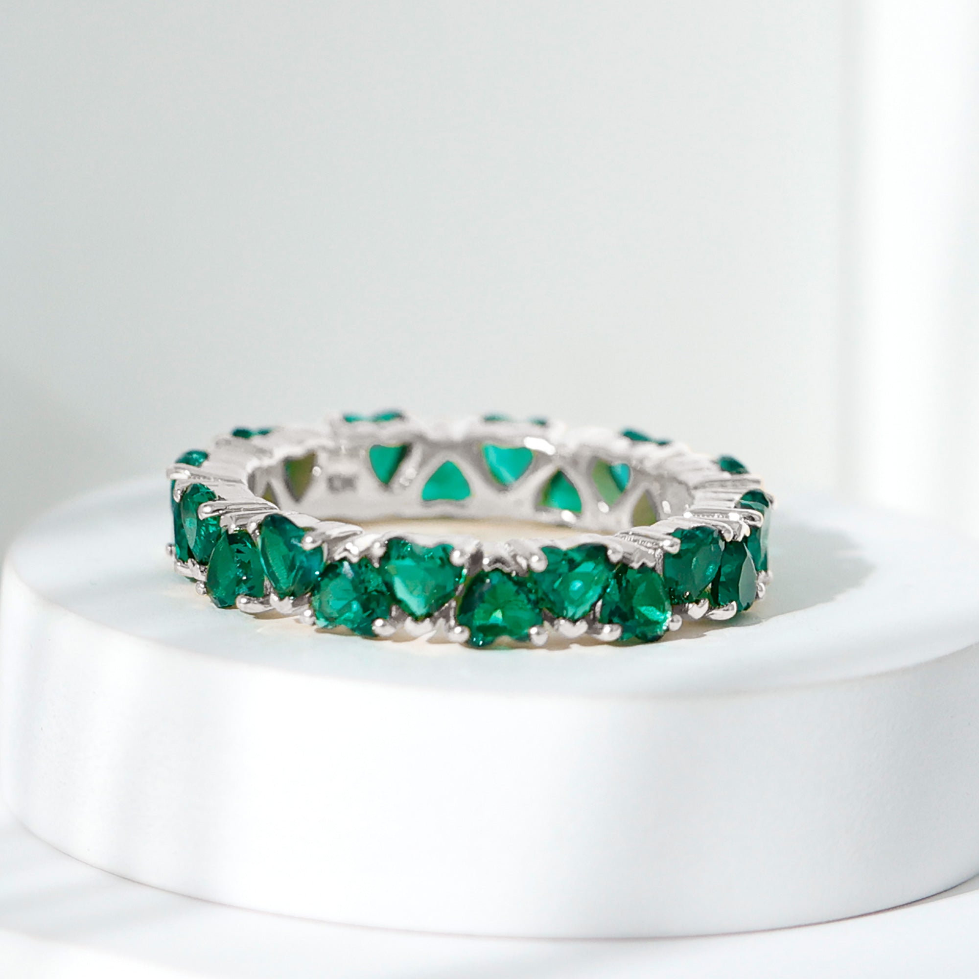 Certified Lab Created Emerald Heart Eternity Band Ring For Her