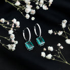 With a timeless elegance and a geometric design, these Lab Grown Emerald Earrings add a splash of color to your outfit. Made from White Gold Plated Silver, these Hoop Drop Earrings feature a stunning 7X9 MM Emerald Cut Lab Grown Emerald set in secure prong setting. To elevate their beauty, the Hinged Hoop is embellished with round brilliant cut Moissanite stones. These captivating Emerald Cut Emerald Earrings are sure to spark conversations and catch eyes, perfectly complementing your unique style in a stunning array of colors. Showcasing beautiful contrasts, these Dangle Drop Earrings are not just a fashion statement but also a celebration of beauty, adding a touch of elegance to your look. Their vivid colour and unexpected sparkle are sure to resonate with your soul. The distinctive look and charm of these Emerald Dangle Earrings create a glamorous and dazzling effect. Embracing charm and sophistication, these Hinged Hoop Earrings make a striking statement for any special occasion. The premium jewelry pouch packaging ensures that the Green Emerald Earrings remain safe during shipping and delivery, making them ideal for special occasions such as Birthdays, Womens Day, Mothers Day, Valentines Day, Graduation, and Thanksgiving.