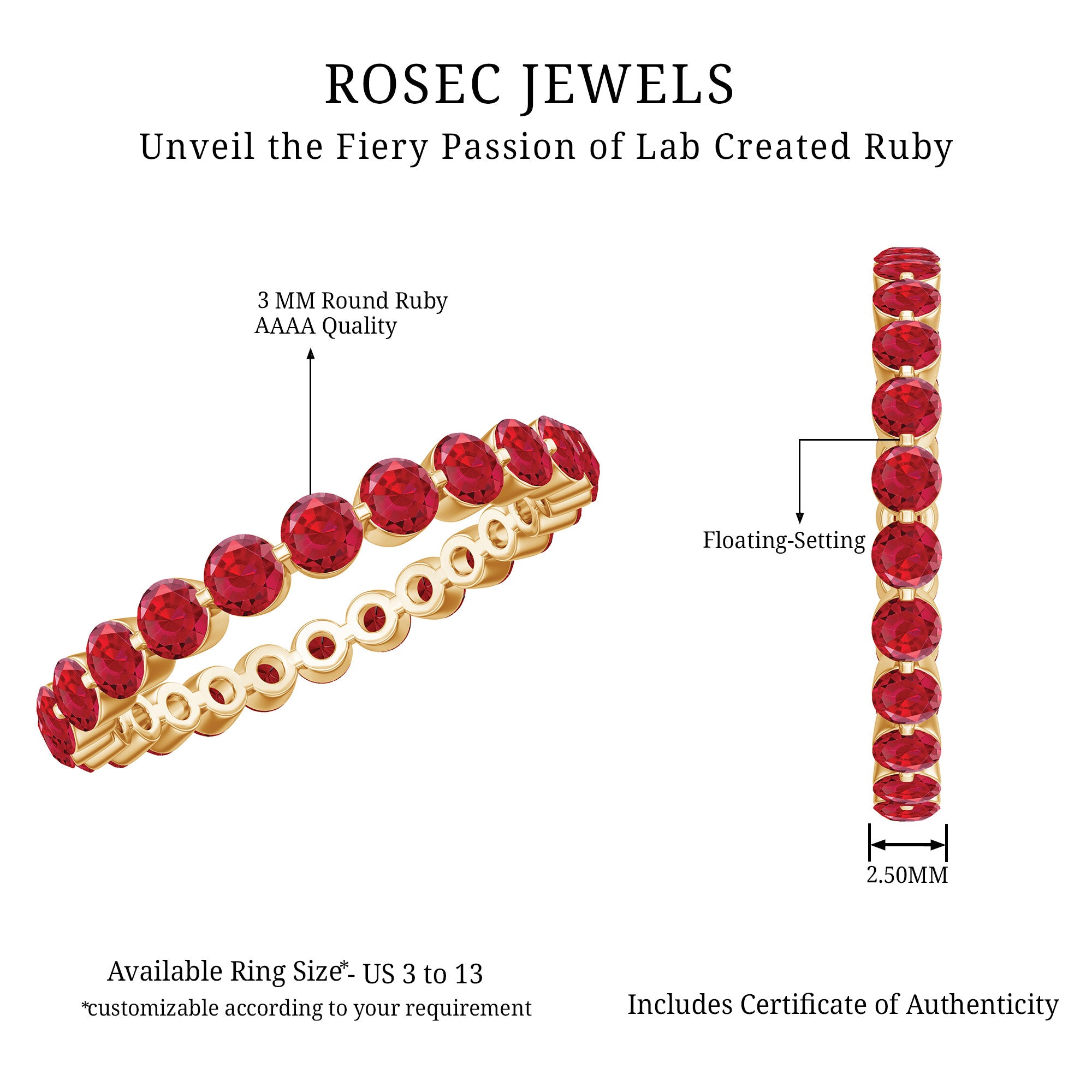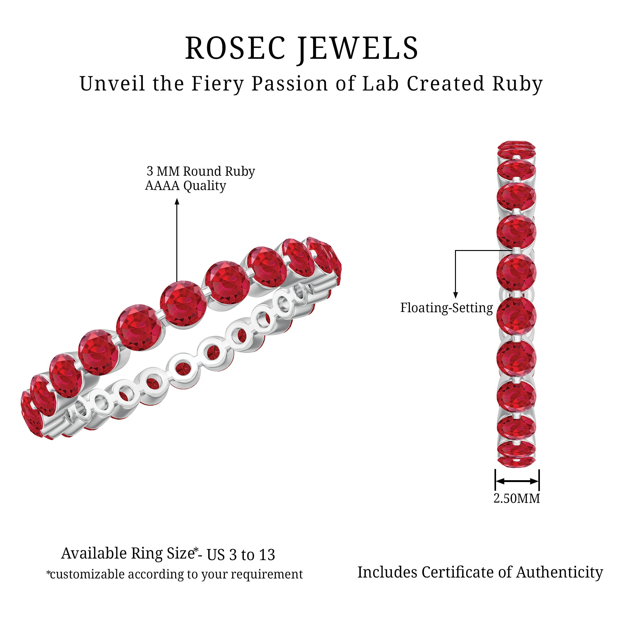 Make your loved ones special day even more memorable with this stunning Full Eternity Ring. Adorned with Round Cut Lab Created Ruby in a unique Floating Setting, this ring is crafted from Solid Gold for a luxurious touch. Give the gift of eternal joy and happiness with this beautiful eternity ring.